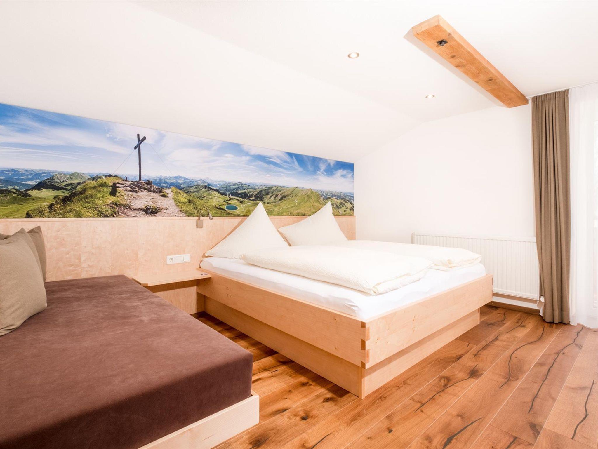 Diese großzügigen Doppelzimmer (ca. 25 m²) liegen in sonniger Lage und verfügen alle über einen eigenen Balkon. Sie sind ideal, um durchzuatmen und abzuschalten. Sie bieten Platz für zwei Personen und sind dank einer zusätzlichen Schlafcouch auch bestens als Dreibettzimmer für zwei Erwachsene und ein Kind bis zwölf Jahre geeignet. Zur Ausstattung zählen ein Bad mit Dusche und WC, ein Haartrockner, ein TV-Gerät, ein Safe, Sitzgelegenheiten, eine Garderobe und genügend Stauraum. Die Einrichtung ist individuell und mit Liebe zum Detail gestaltet. Sie spiegelt die Handschrift des Hausherrn wider, denn die Möbel wurden von ihm persönlich gefertigt. Kein Zimmer gleicht dem anderen – jedes hat seinen eigenen Charakter. Insgesamt stehen fünf dieser Zimmer zur Verfügung, die sich auf das erste bis dritte Obergeschoss verteilen. Bitte beachten Sie, dass es keinen Aufzug im Haus gibt.
