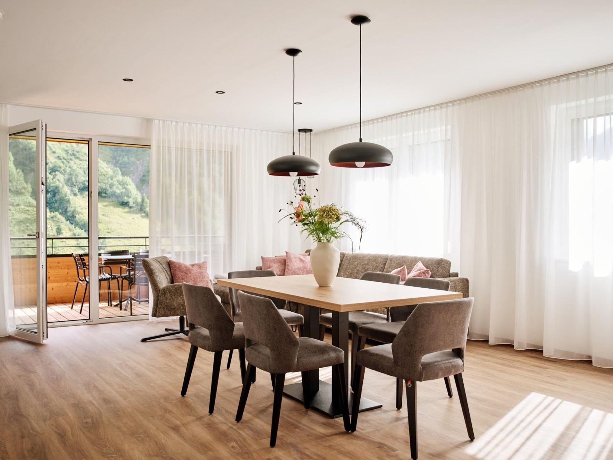 Komfortable, geräumige Wohnungen mit Terrasse und einem grandiosen Blick in die Bergwelt rund um Damüls.