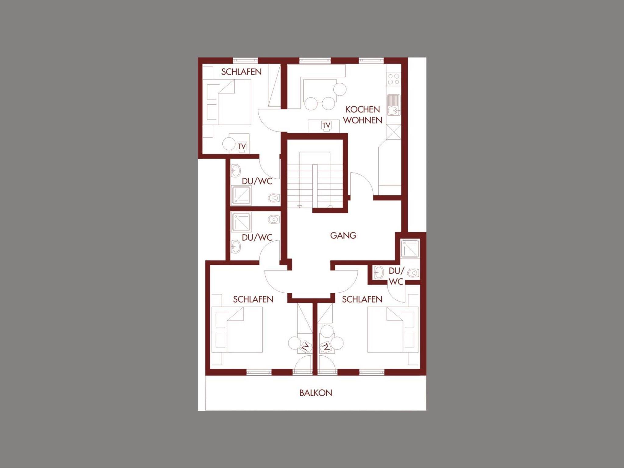 6-Personenwohnung mit Balkon, 70 m², Zustellbett für 1 Person möglich