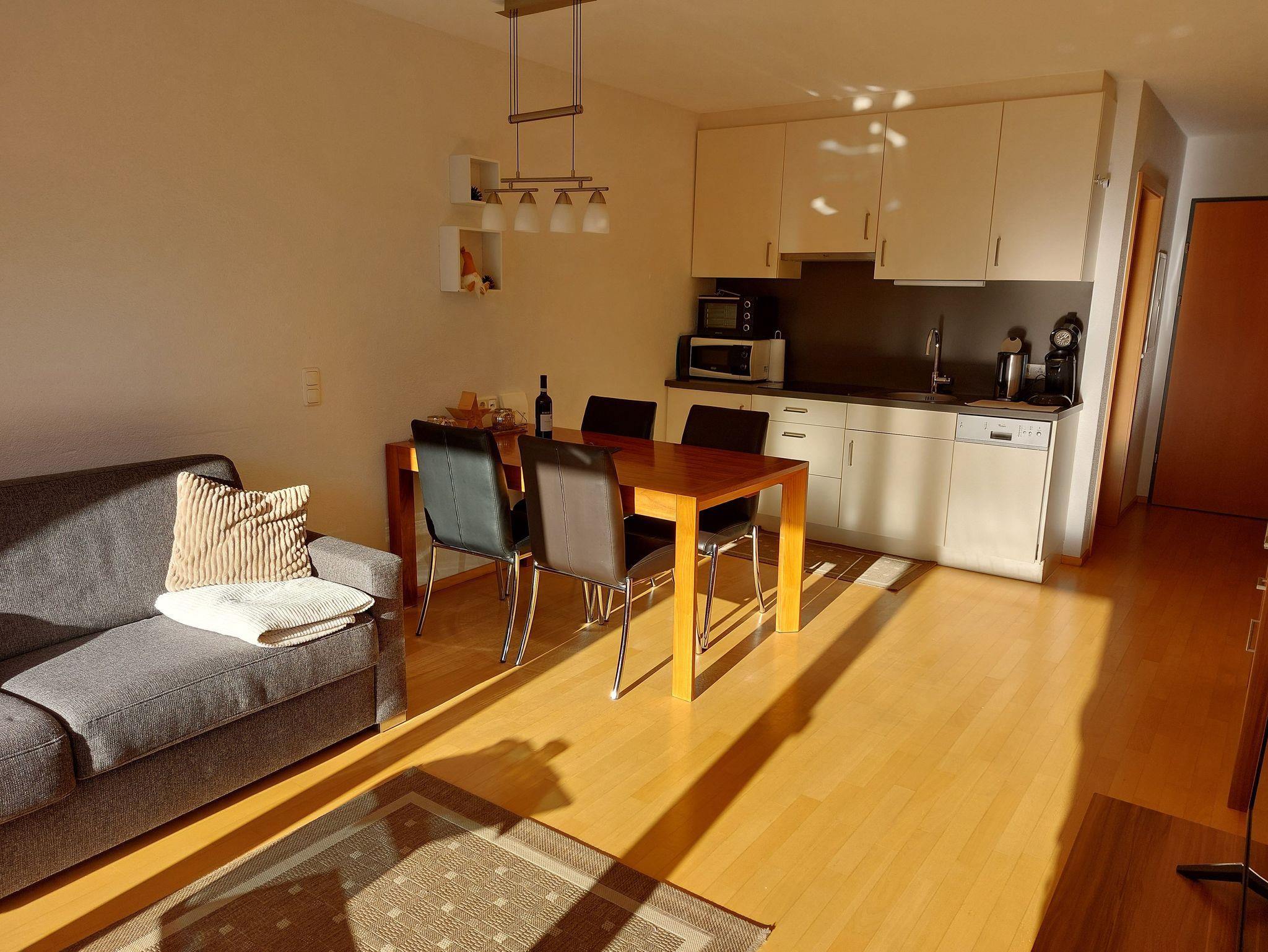 Die Küche ist voll ausgestattet mit allem was Sie brauchen: genügend Geschirr, Geschirrspüler, kleiner Backofen, Kaffeemaschine, Wasserkocher, Toaster etc. - alles da. Zusätzlich Flat-TV und selbstverständlich Internet mit Free-WLAN. Die überdachte und windgeschützte Terrasse ist mit Stühlen, Tisch und zwei Liegebetten ausgestattet. Waschmaschine und Trockner stehen im Skiraum zur Verfügung (€ 1,-- Münzeinwurf).