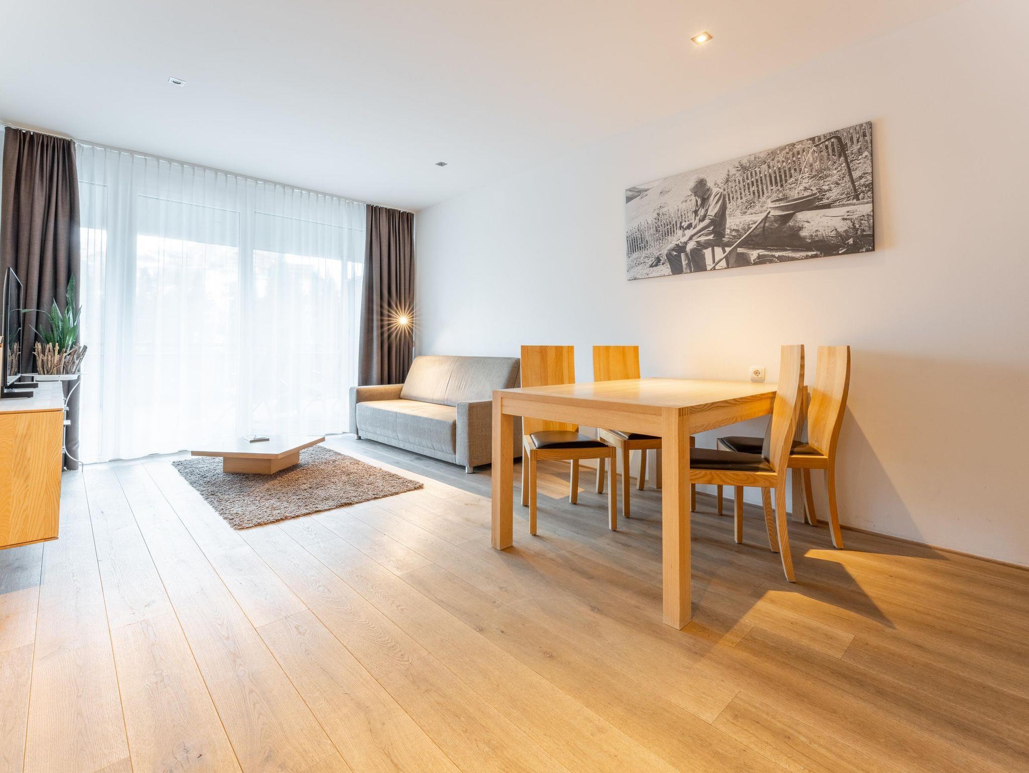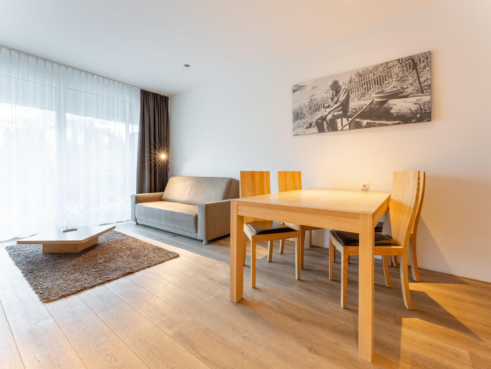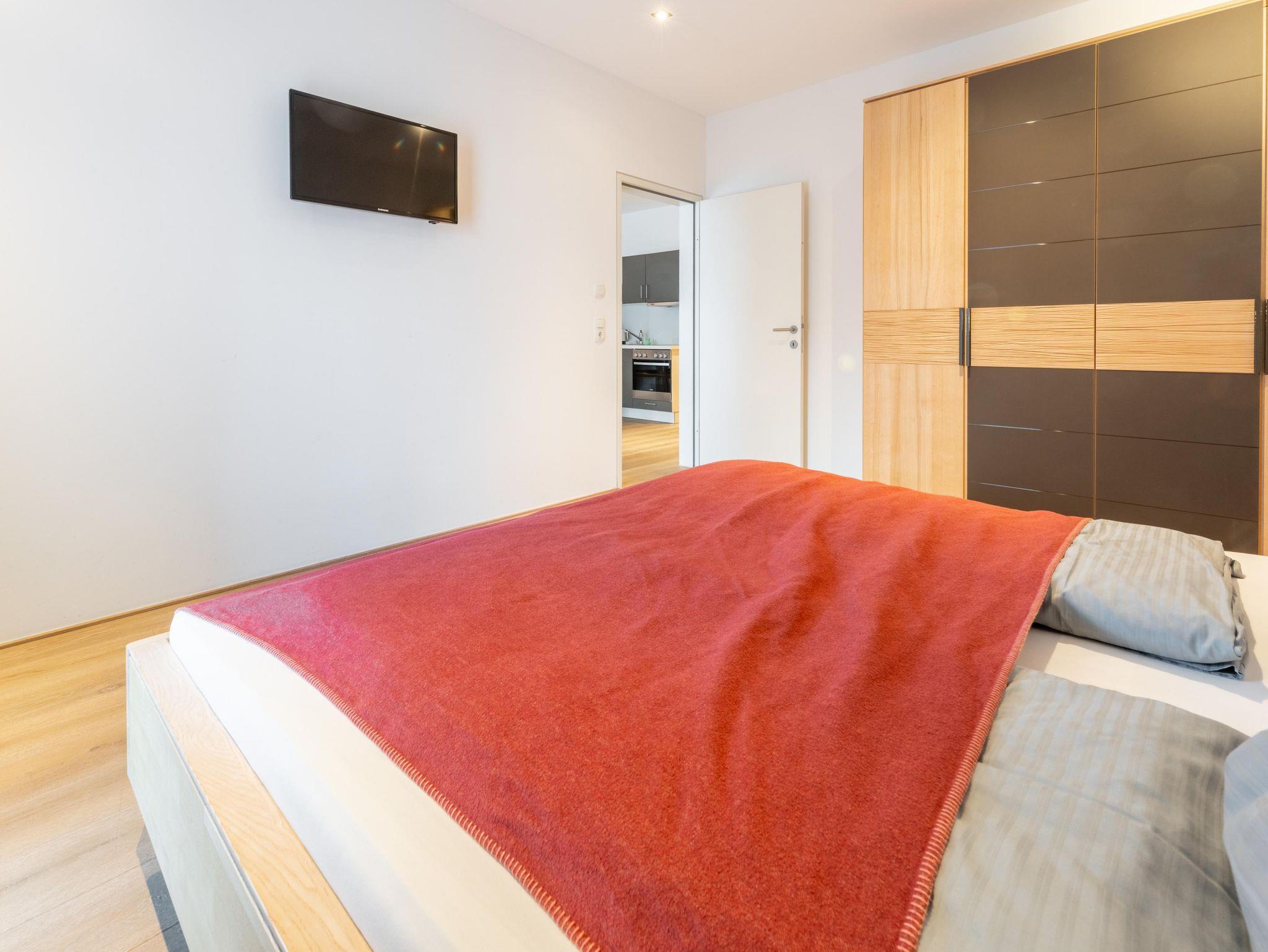 Dieses moderne und geräumige Apartment verfügt über eine große Terrasse mit Bergblick und zwei Schalffzimmer. Das Wohnzimmer ist mit komfortablen Sofas und einem Flachbild-Sat-TV ausgestattet. Außerdem bietet das Apartment kostenfreies WLAN sowie eine komplett ausgestattete Küchenzeile und einen Essbereich. Eine tägliche Reinigung und Bademäntel werden auf Anfrage gegen Aufpreis angeboten. Das Appartement steht Ihnen ohne Verpflegung zur Verfügung.Frühstück von unserem reichhaltigen Frühstücksbuffet ist zum Aufpreis von €21,-- buchbar. Die Endreinigungsgebühr von 60,--€ ist im Preis inkludiert und wird vor Ort verrechnet!
