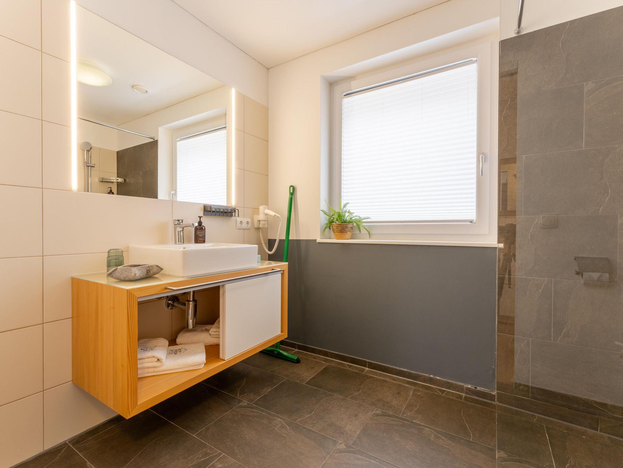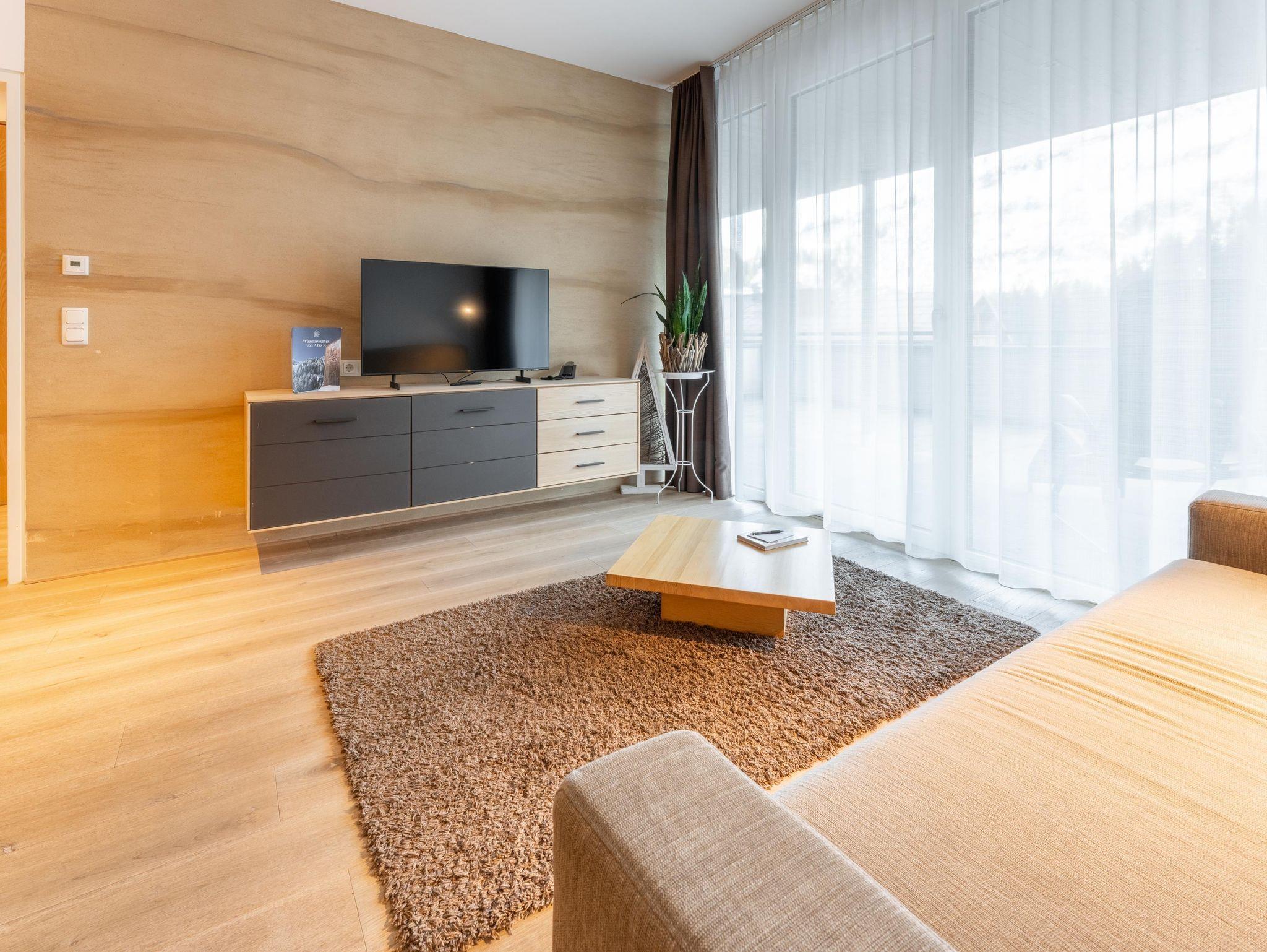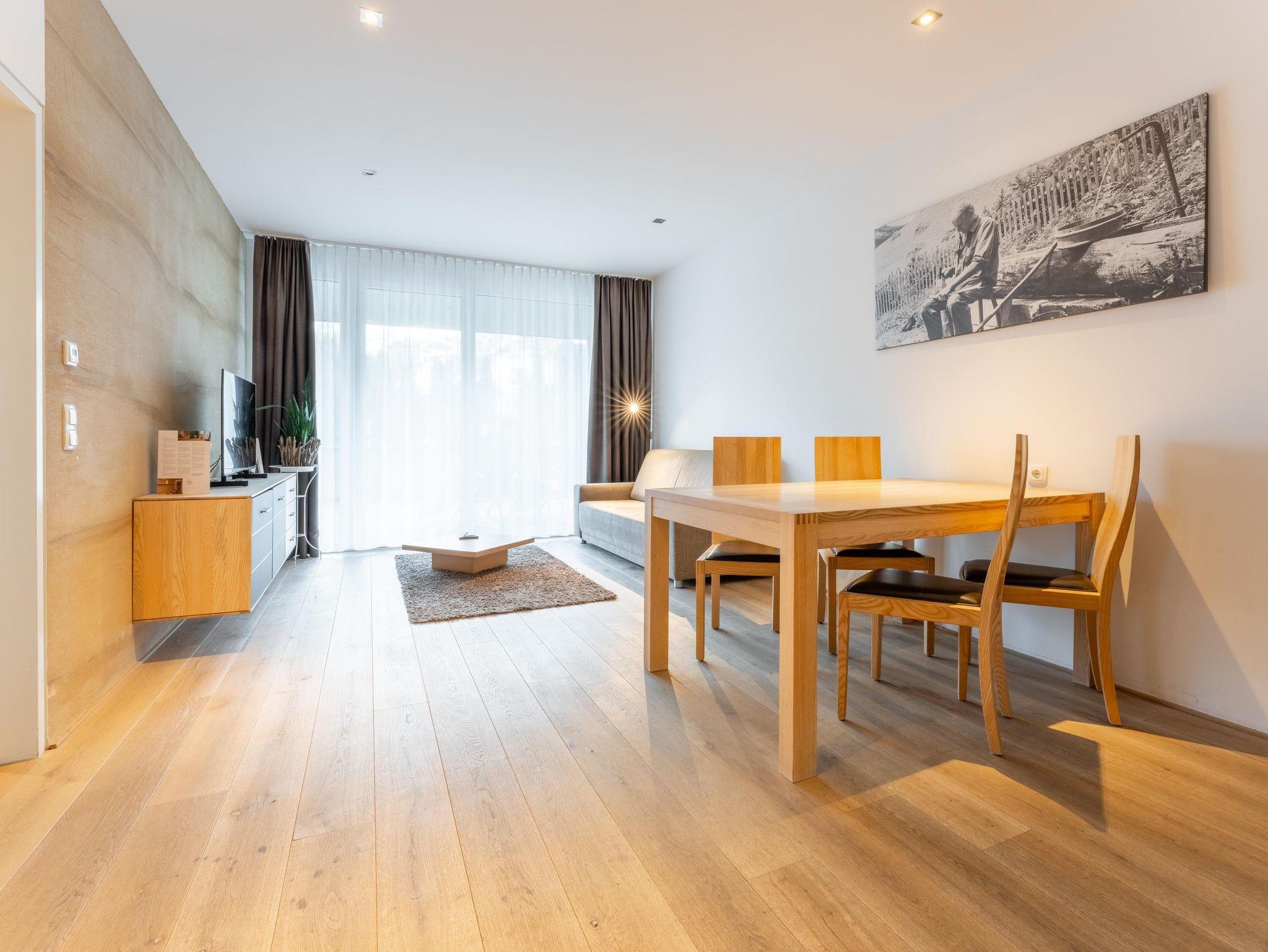 Dieses moderne und geräumige Apartment verfügt über eine große Terrasse mit Bergblick und zwei Schalffzimmer. Das Wohnzimmer ist mit komfortablen Sofas und einem Flachbild-Sat-TV ausgestattet. Außerdem bietet das Apartment kostenfreies WLAN sowie eine komplett ausgestattete Küchenzeile und einen Essbereich. Eine tägliche Reinigung und Bademäntel werden auf Anfrage gegen Aufpreis angeboten. Das Appartement steht Ihnen ohne Verpflegung zur Verfügung.Frühstück von unserem reichhaltigen Frühstücksbuffet ist zum Aufpreis von €21,-- buchbar. Die Endreinigungsgebühr von 60,--€ ist im Preis inkludiert und wird vor Ort verrechnet!
