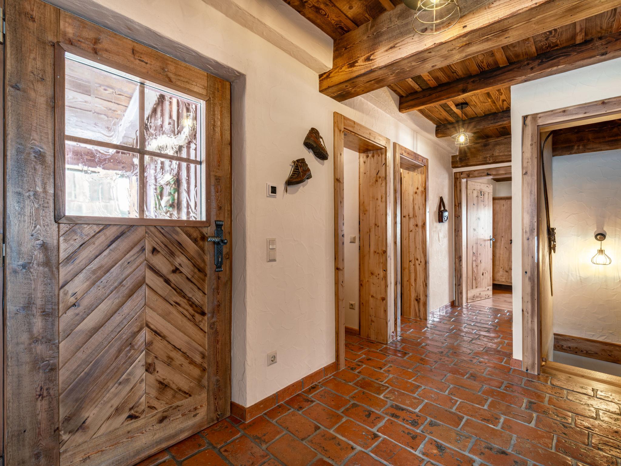 "Heregger Hütte", 5-room chalet 150 m2 on 2 levels. Object suitable for 6 adults + 4 children. Bright, renovated in 2024, very cosy and wooden furniture furnishings: small living/dining room with 1 double sofabed, dining nook and tiled stove. 2 double bedrooms. 1 small children's room with 2 x 2 bunk beds. Kitchen-/living room (4 hot plates, mini-oven, dishwasher, kettle, freezer, electric coffee machine) with Scandinavian wood stove, dining nook, satellite TV and international TV channels (flat screen). Exit to the balcony. Sep. WC. Underfloor heating. On the lower ground floor: 2 showers, double hand-basin, Sauna. Electric heating, floor heating. Wooden floors. Comfortable furnishings in the country house style. Balcony, large terrace 100 m2. Terrace furniture, balcony furniture, barbecue (portable). Very beautiful panoramic view of the mountains. Facilities: washing machine, sauna, logs (free). Internet (WiFi, free). Garage on the property (2 cars). Please note: non-smoking house. Maximum 1 pet/ dog allowed.