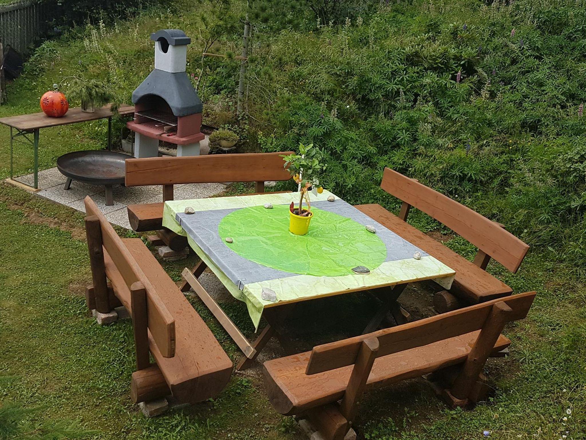 • Ein großer Grillplatz mit 4 großen Bänken zum Sitzen (Platz für bis zu 16 Personen)