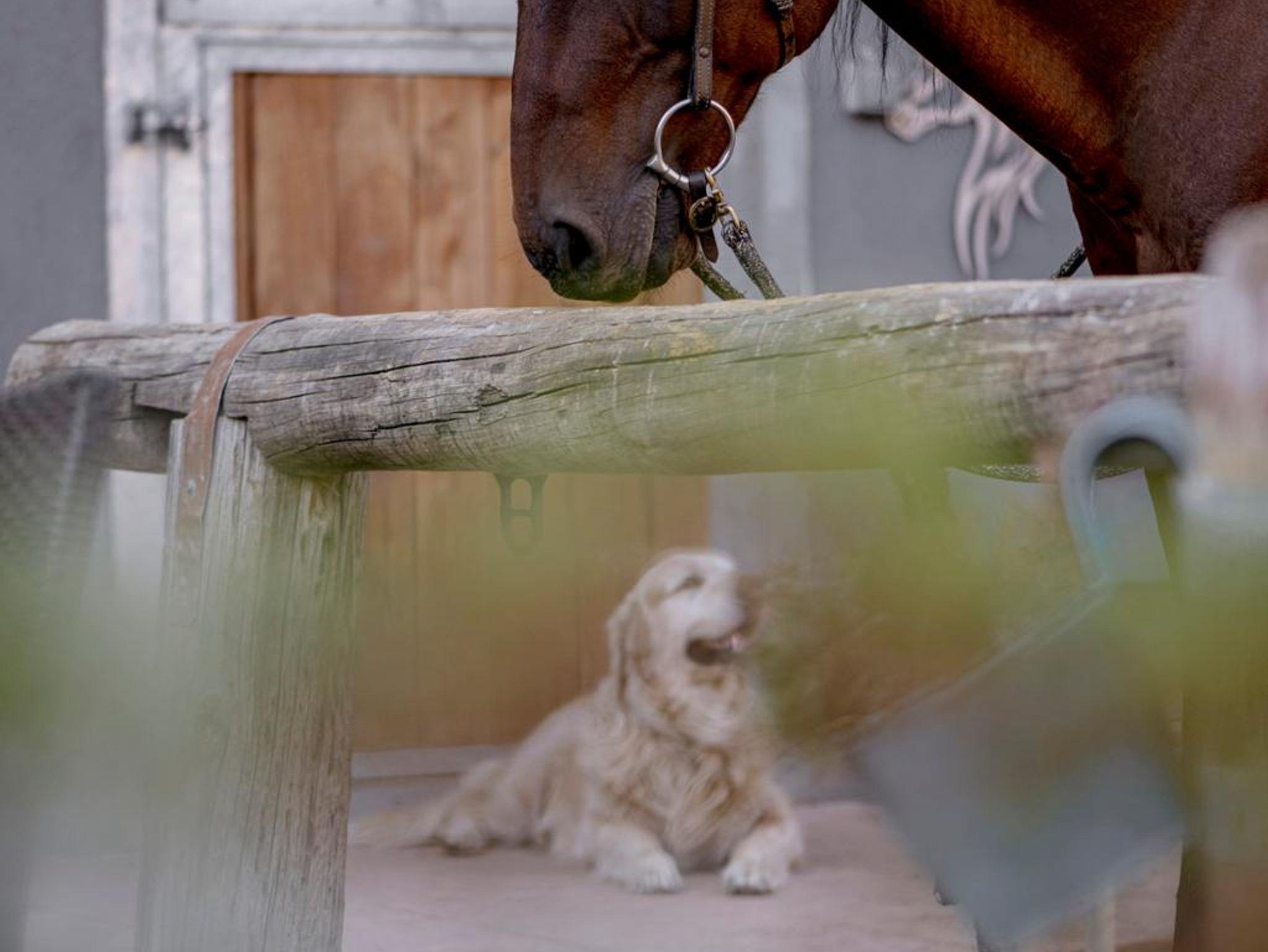 Haustiere sind auf Anfrage gegen Gebühr gestattet. Hunde pro Tag ohne Futter EUR 10,--; Pferde pro Tag in der Box, Heu, Koppel, Paddock nach Bedarf, Benützung der Reitanlage EUR 20,--