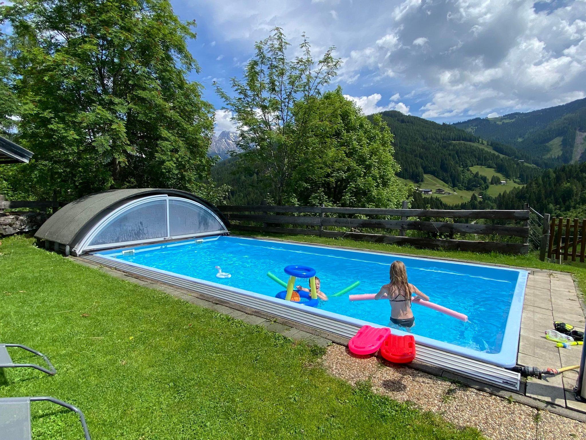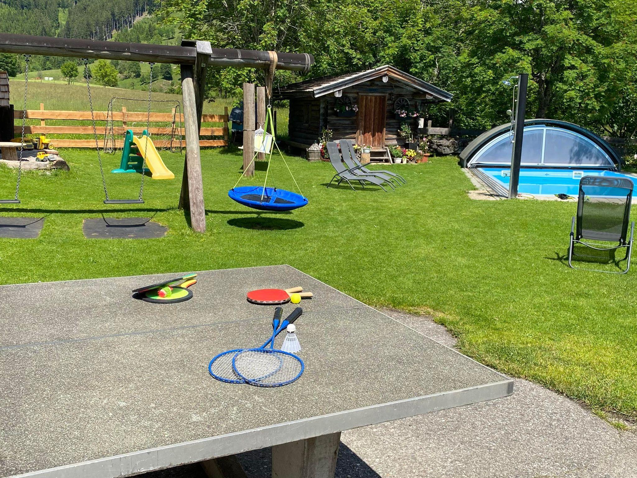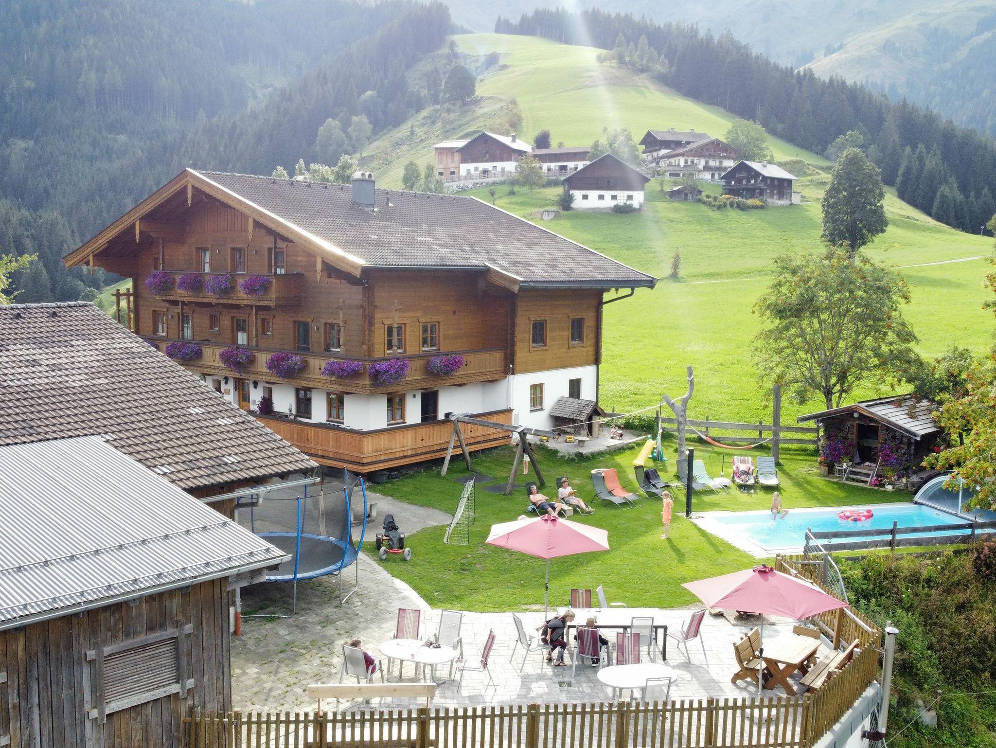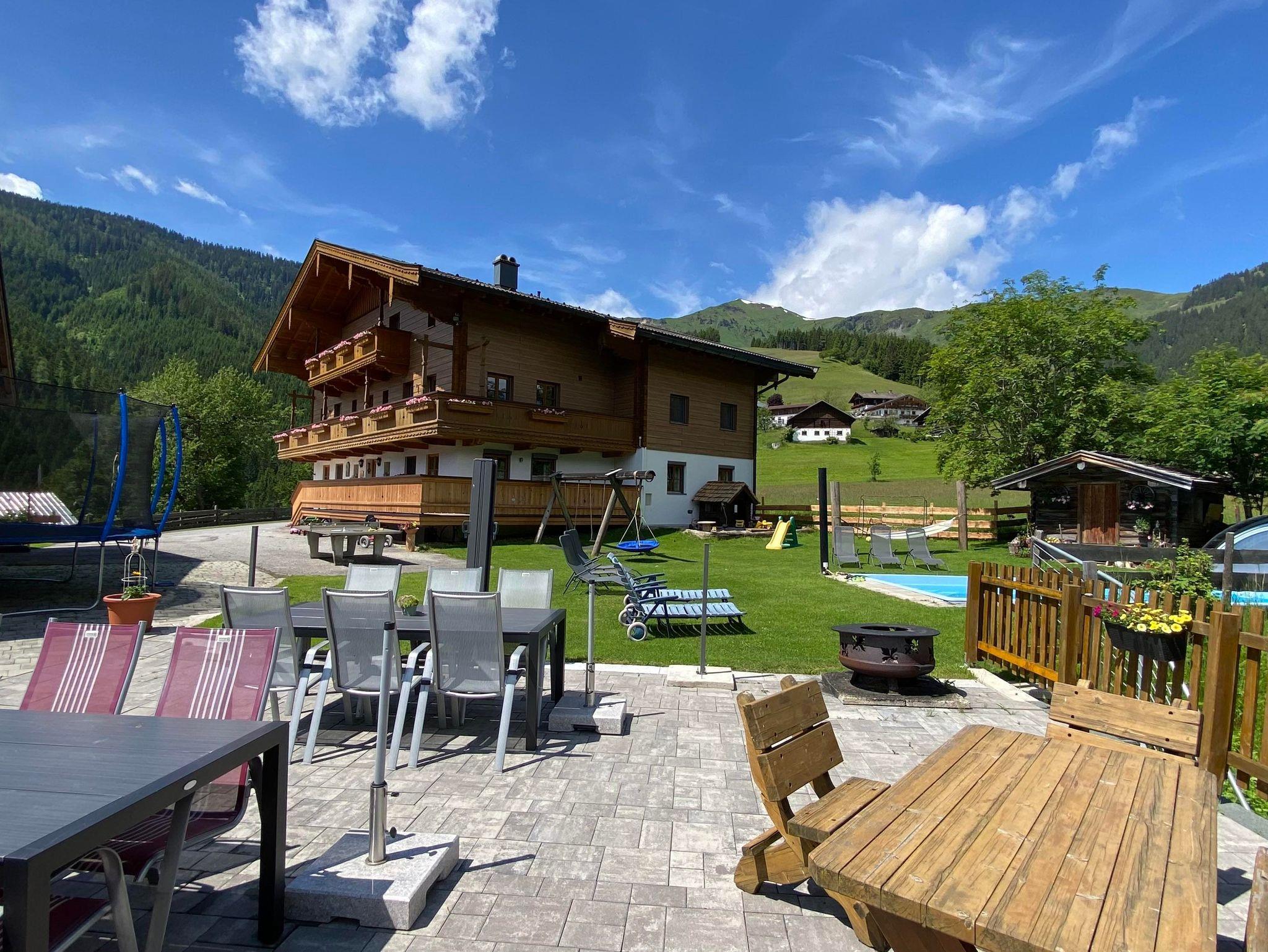 Familienfreundlicher Biobauernhof auf herrlichem Aussichtsplateau in ruhiger und sonniger Lage. Den Alltag vergessen, die Natur genießen und die Seele baumeln lassen. Unsere Tiere als gute Freunde erleben, mit uns wandern, am Abend grillen und viel Spaß beim Spielen haben. Es erwartet Sie: Sonnenterasse, Liegewiese,Hängematte, Grillecke, Tischtennis, beheizbarer Schuhraum, Rodelmöglichkeit, Kinderspielplatz u. -wiese, Gartenhäuschen, Schwimmbecken überdacht(30 m²). Tiere am Hof/Zweitbauernhof/Weide: Katzen,Hühner,Hasen,Hund,Mutterkühe,Kälber,Pferd. Eigene Trinkwasserquelle die 1 Mal Jährlich kontrolliert wird. Komfortabel ausgestattete Wohnungen. Unser Hit: Hochkönig Card, Almwanderungen vom Hochkönig Tourismus und Brötchenservice. Das Mitbringen von Hunden ist nur gegen Anfrage und einen Aufpreis erlaubt. (20 Euro/Tag und Hund ohne Verpflegung)