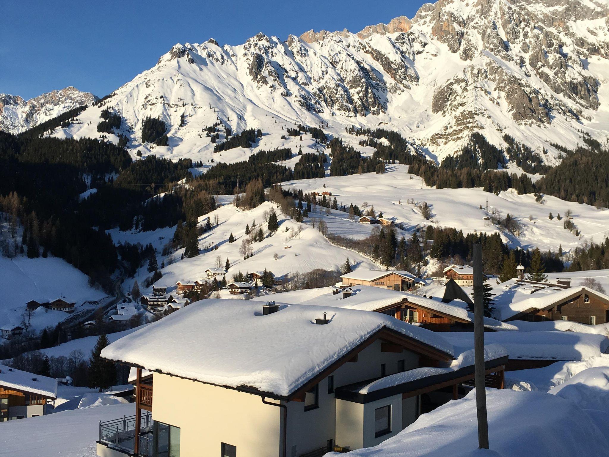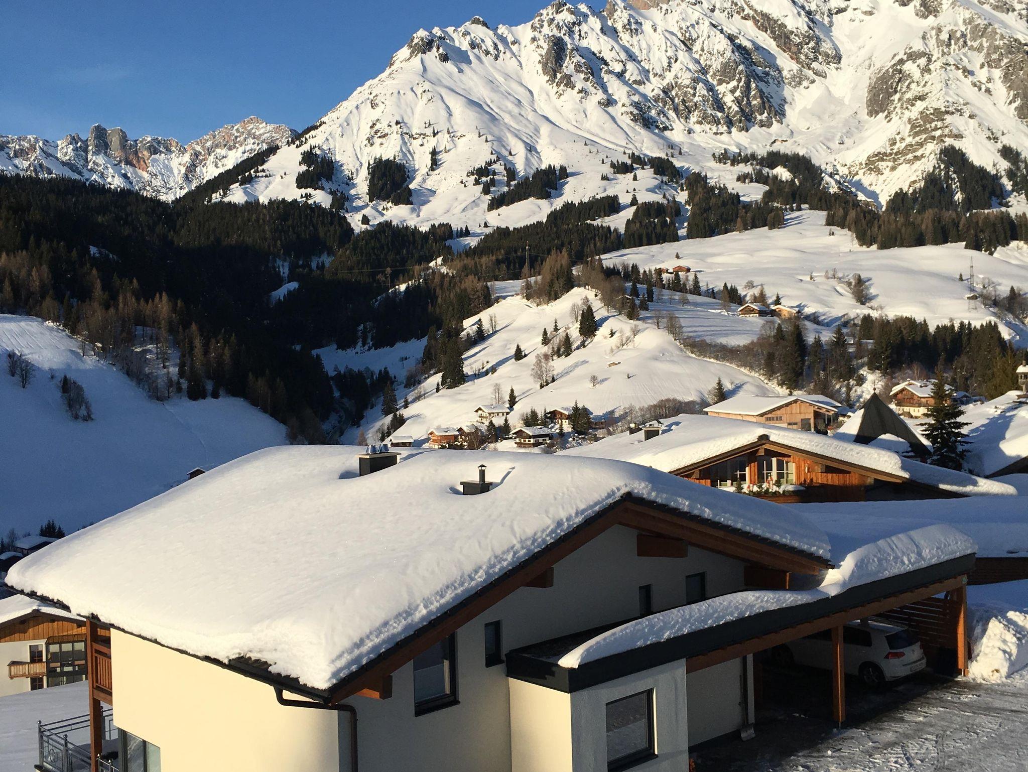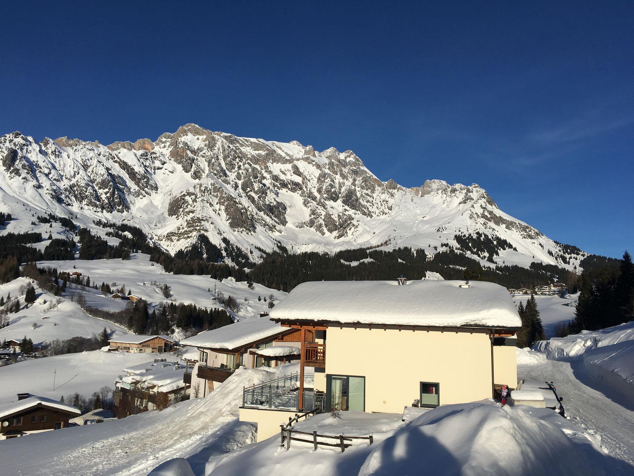 Unser Haus mit Blick auf das überwältigende Hochkönigmassivs liegt ca. 10 Gehminuten vom Ortszentrum entfernt in sonniger Lage direkt an der Skipiste und unmittelbar neben dem Babylift.