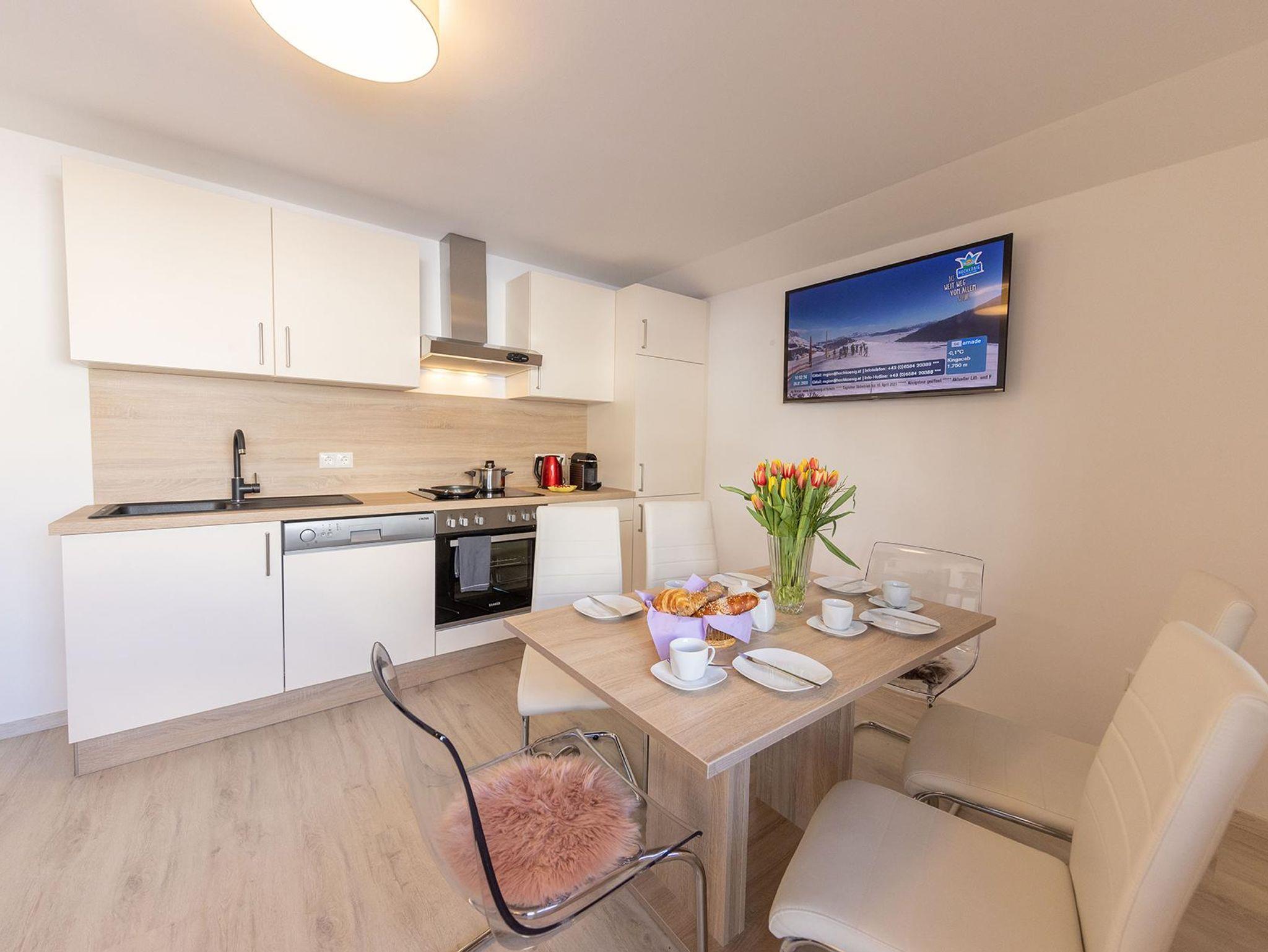 2 Schlafzimmer, voll ausgestattete Wohnküche, Bad und WC getrennt, Balkon, WLAN, Kabel-TV, Parkplatz