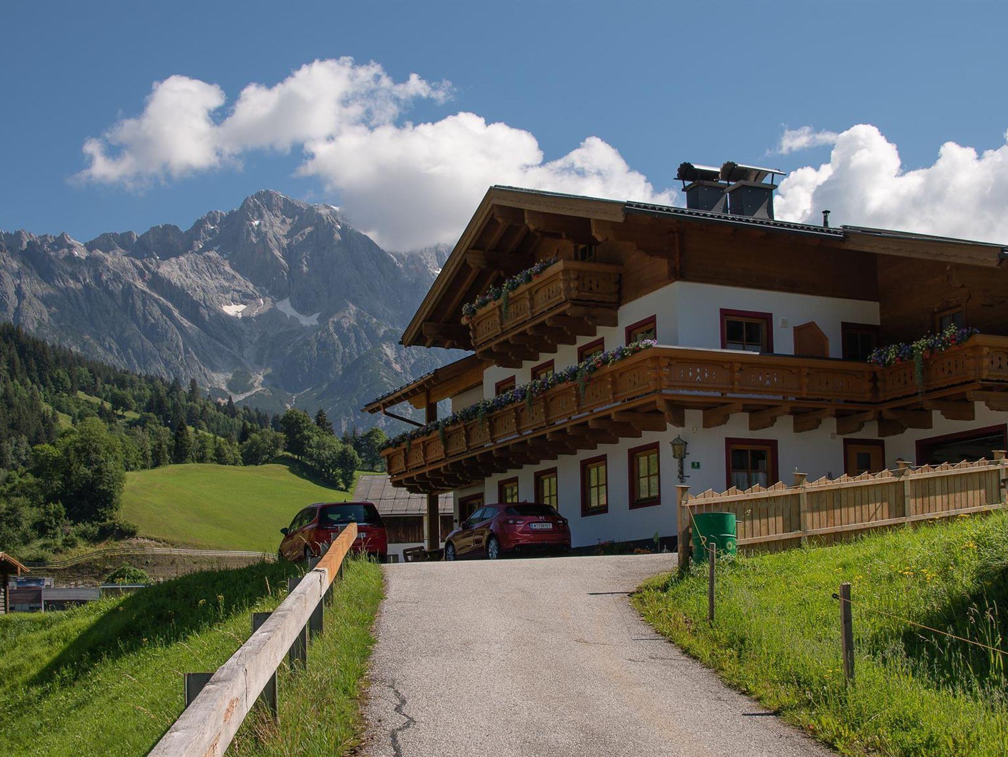 Unser Haus liegt ruhig und sonnig mit Blick auf das Dorf und den Hochkönig. Wir vermieten zwei Appartements mit komplett ausgestatteter Küche (Kühlschrank), Dusche/WC, Kabel-TV. Liegewiese, Parkplatz. Im Sommer Ausgangspunkt für zahlreiche Wanderungen; im Winter direkter Einstieg in das Hochkönig's Winterreich.