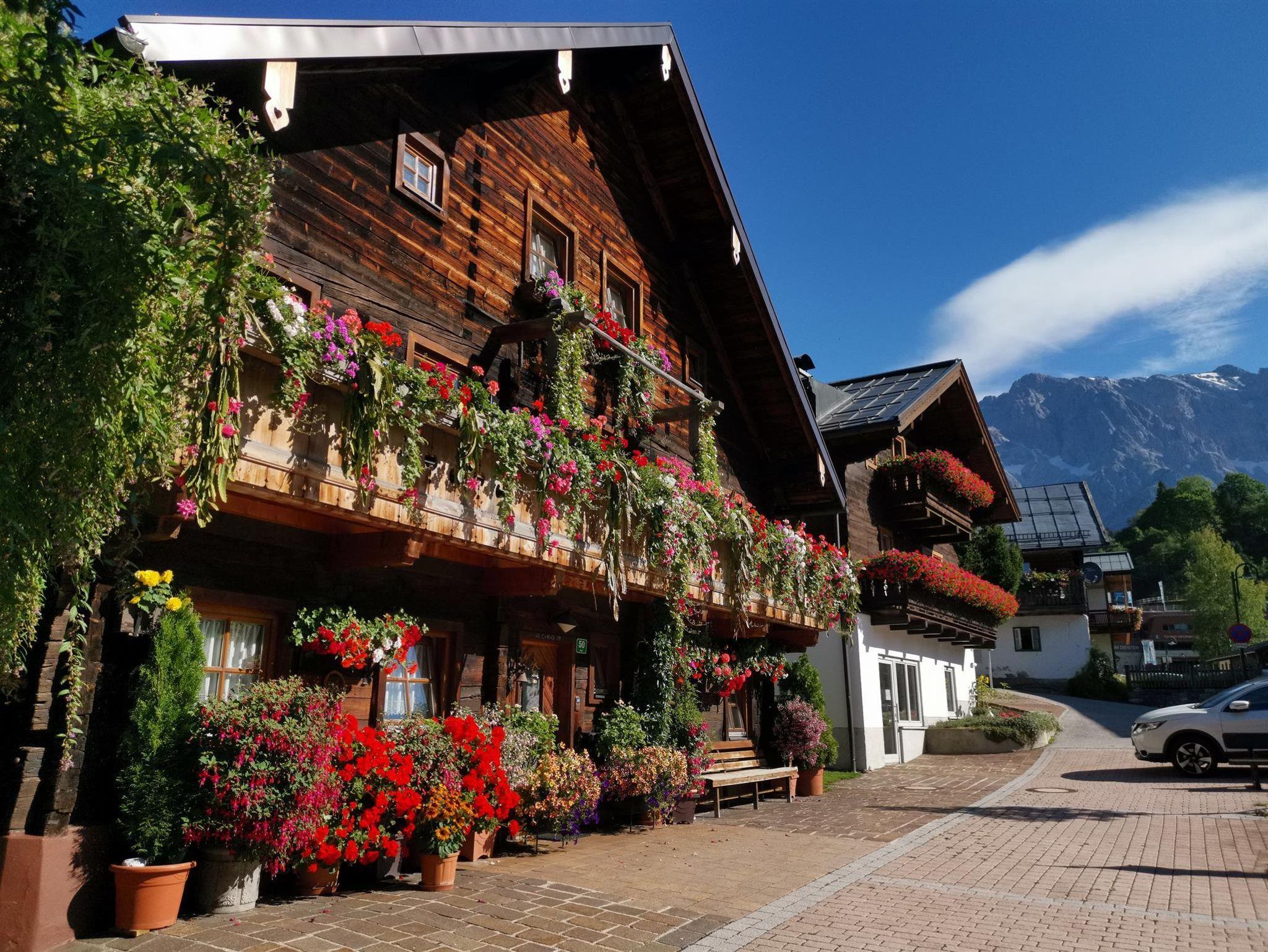 Ihr Urlaub in ruhiger und dennoch zentraler Lage, direkt im Herzen des Dorfes Dienten! Lassen Sie Ihr Auto getrost stehen und entspannen Sie sich in unserem charmanten Blumenhaus am idyllischen Dorfplatz. Der Bäcker ist gleich um die Ecke, und ein großer, gut sortierter Supermarkt sowie das Skizentrum sind bequem zu Fuß erreichbar. Wir bieten Ihnen zwei Ferienwohnungen abseits der Straße, die Ruhe und zentrale Lage perfekt vereinen.