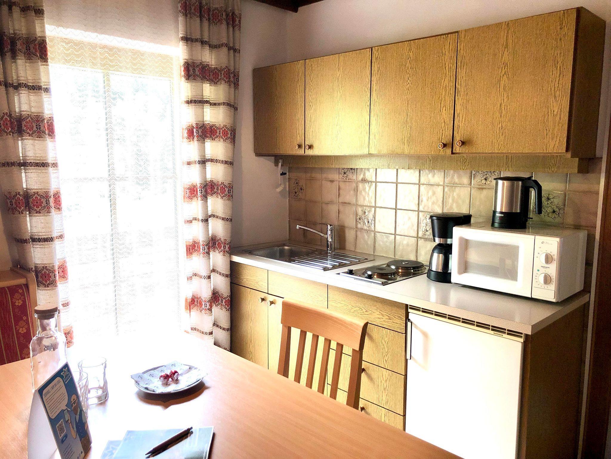 Kleiner Bauernhof , zentral gelegen , 2 Ferienwohnungen mit Wohnküche, 1-2 Schlafzimmer, 2 E-Platten ( kein Backofen ) Mikro , Kaffeemaschine Geschirrspüler , Radio , Kabel TV und Balkon. Sowie 1 Doppel- und 1 Dreibettzimmer mit Dusche/WC , TV , Radio , Kühlschrank und Balkon, Schuhtrockner . Wander bzw. Schibushaltestelle direkt vorm Haus . Skiabfahrt bis zum Haus.