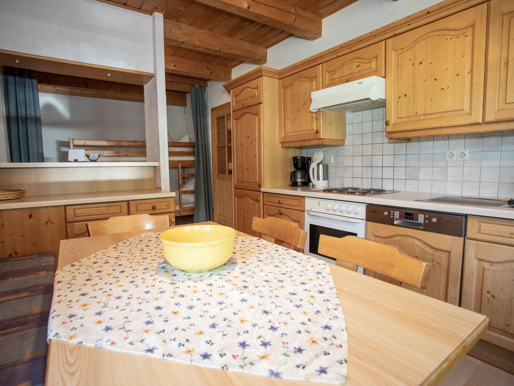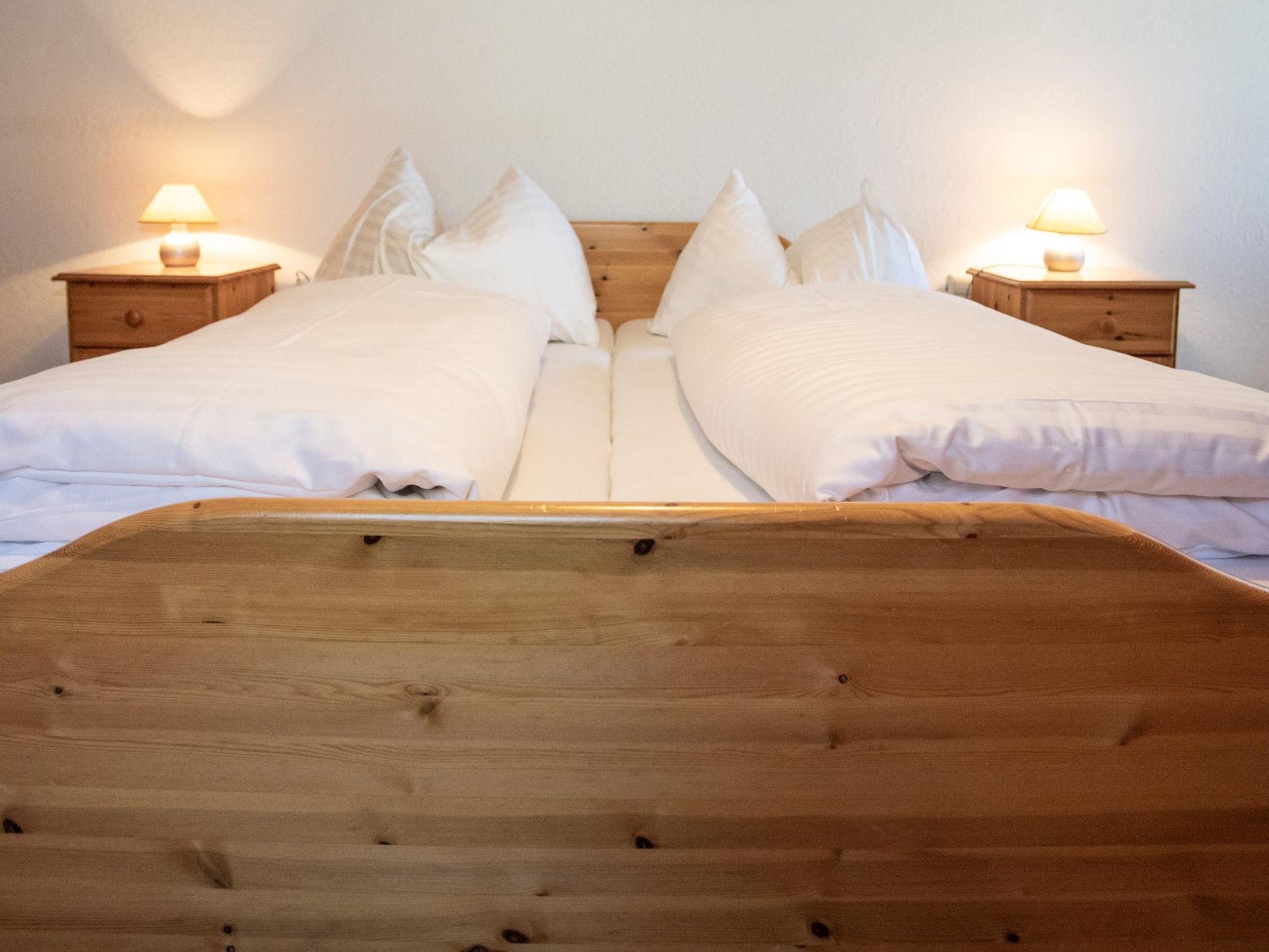 großzügiges Appartement mit zwei Schlafzimmern und Schlafnische im Küchenbereich (1 Schlafzimmer mit Doppelbett und Stockbett, 1 Schlafzimmer mit Doppelbett, 1 Stockbett in Schlafnische), Bad, separates WC, voll ausgestattete Küche sowie Terrasse mit direktem Gartenzugang
