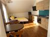 • Wohnschlafraum mit komplett eingerichteter Küchenzeile, Kühlschrank mit kleinem Gefrierfach, Filterkaffeemaschine, Wasserkocher, Geschirrspüler, Backrohr, Ceranfeld, Mikrowelle, Esstisch mit Stühlen, Doppelbett, SAT-TV, Safe, WLAN, Schreibtisch