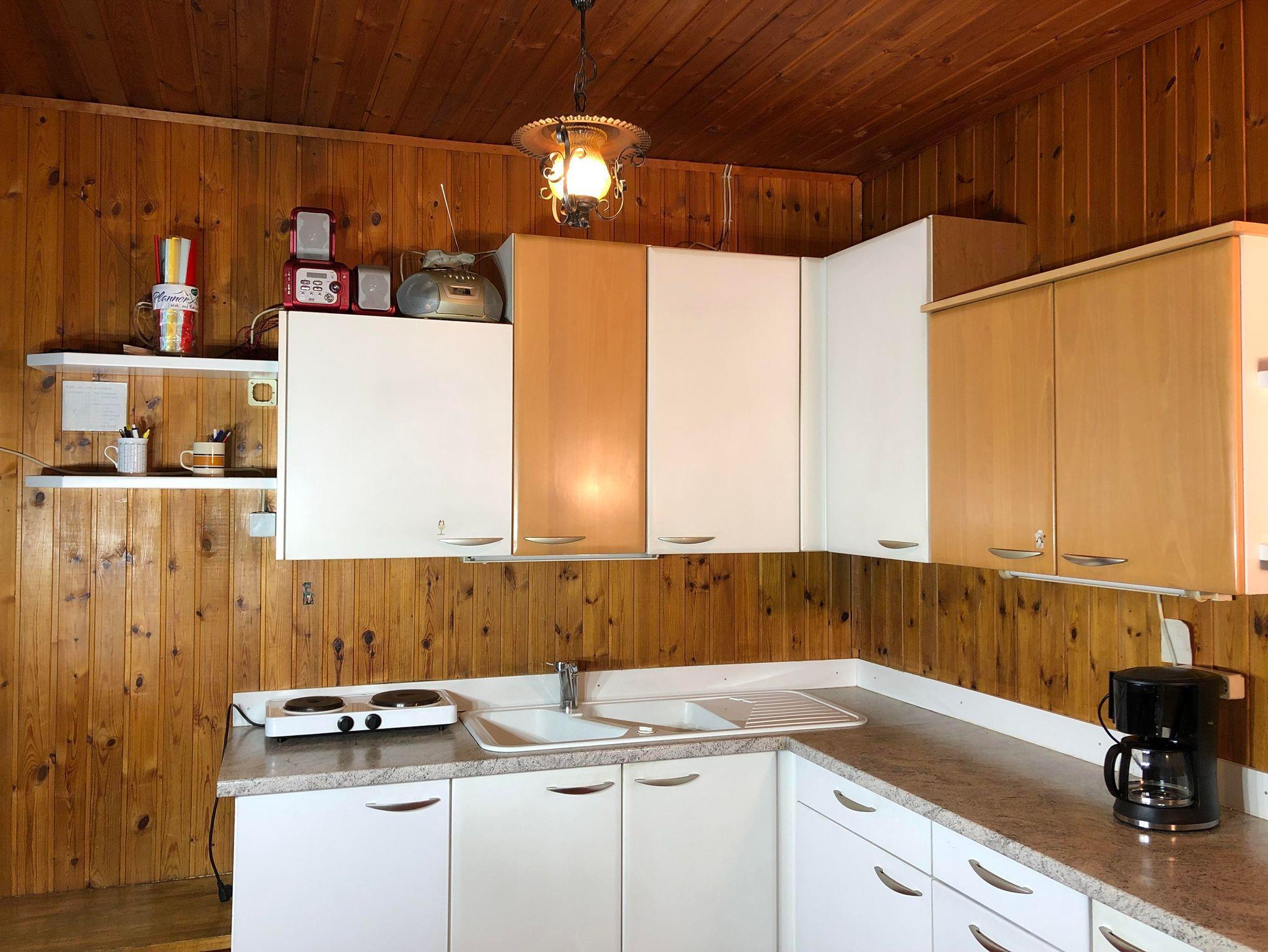 • voll ausgestattete Küche (Tischherd, Doppelkochplatte, Kühlschrank mit Tiefkühlfächern, Wasserkocher, Filter-Kaffeemaschine, 2-Schlitz-Toaster, Plattengrill, Geschirr- und Küchenausstattung)