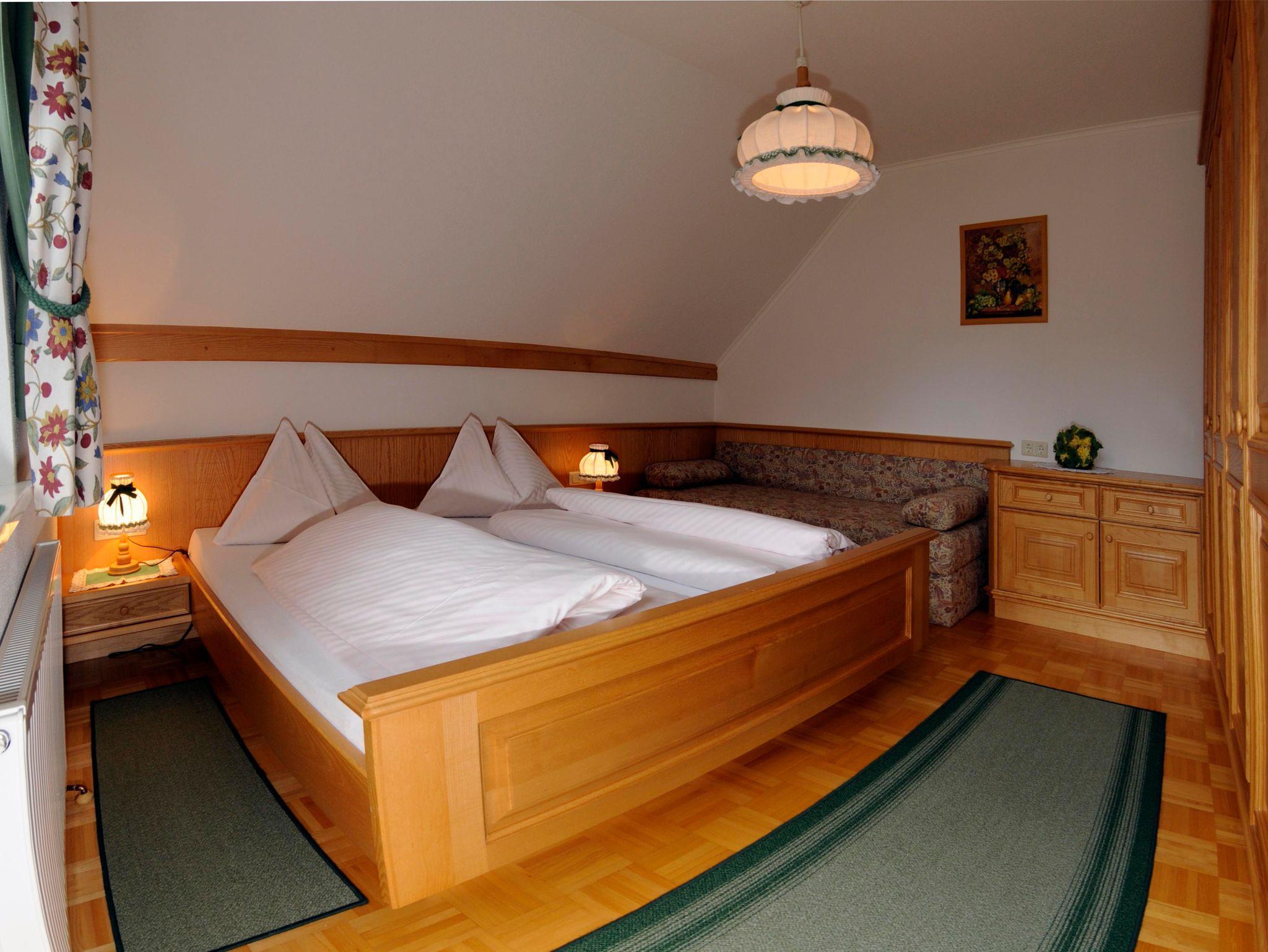 Das Appartmenthaus mit exclusiver Vollholz-Ausstattung bietet sowohl schöne Komfortzimmer als auch 3 eigene Ferienwohnungen mit Küche, Essecke, Wohnzimmer, Schlafzimmer und großzügigem Bad und WC - ideal für ungestörtes Familienleben. Die Appartements können zusätzlich noch um je ein Kinderzimmer im Dachgeschoß mit Fließwasser und WC erweitert werden. Täglich Brötchendienst vom örtlichen Bäcker. Wer nicht selbst kochen will, kann unsere Appartements auch mit Frühstück bzw. Halbpension buchen. Kinderermäßigung auf Anfrage!