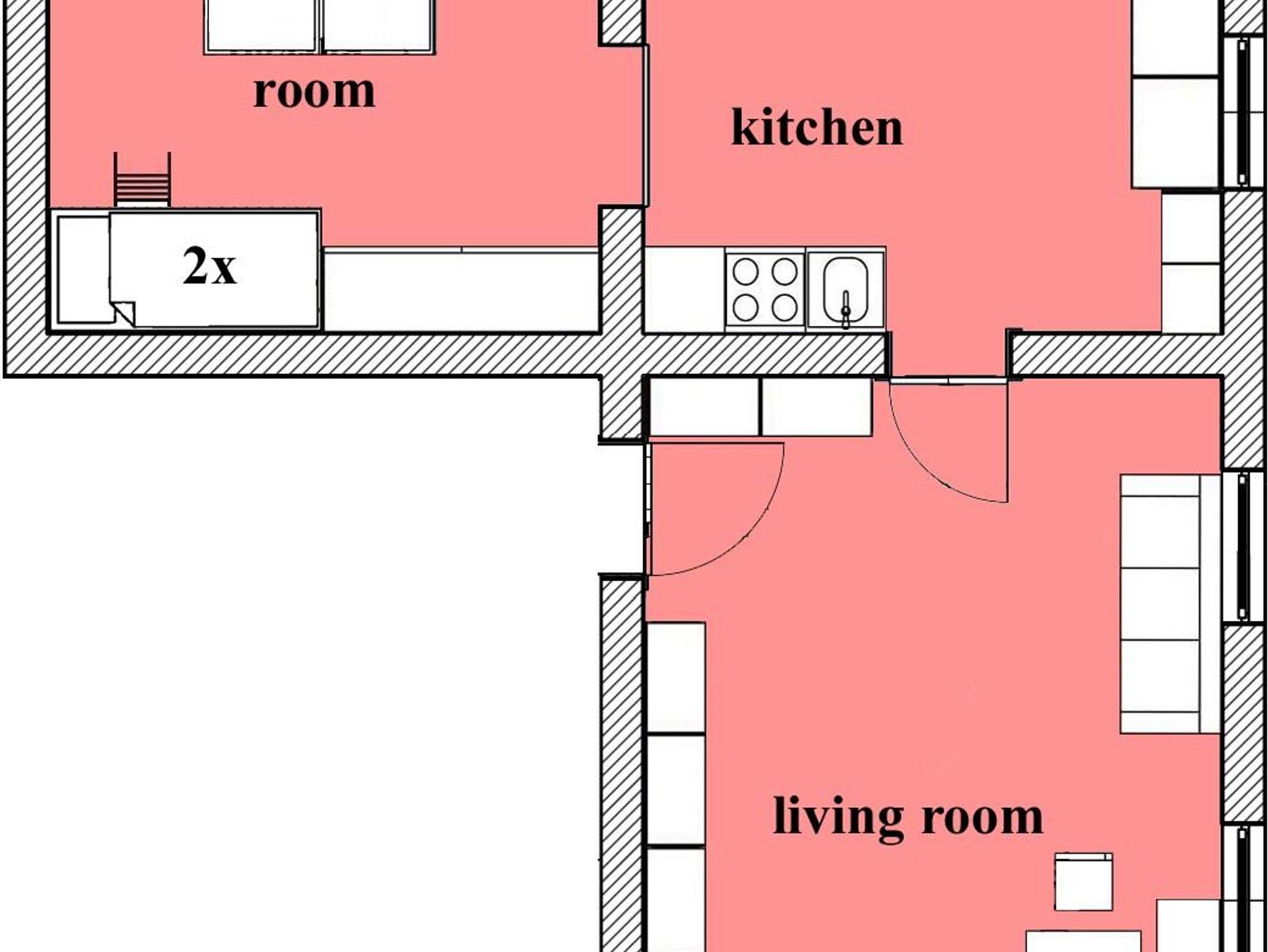 ~ 55 m2 für max. 4-6 Personen. Eine große geräumige Wohnung; große Küche mit Küchenblock mit 4-Plattenherd mit Backrohr, Mikrowelle, Kühlschrank, Geschirrspüler und Kaffeemaschine. Im Wohnraum befindet sich eine gemütliche Sitzecke, Doppelausziehcouch und Sat-TV. Ein separates 4-Bettschlafzimmer (1 Doppelbett, 1 Stockbett), Bad mit Dusche und Waschbecken und separaten WC.