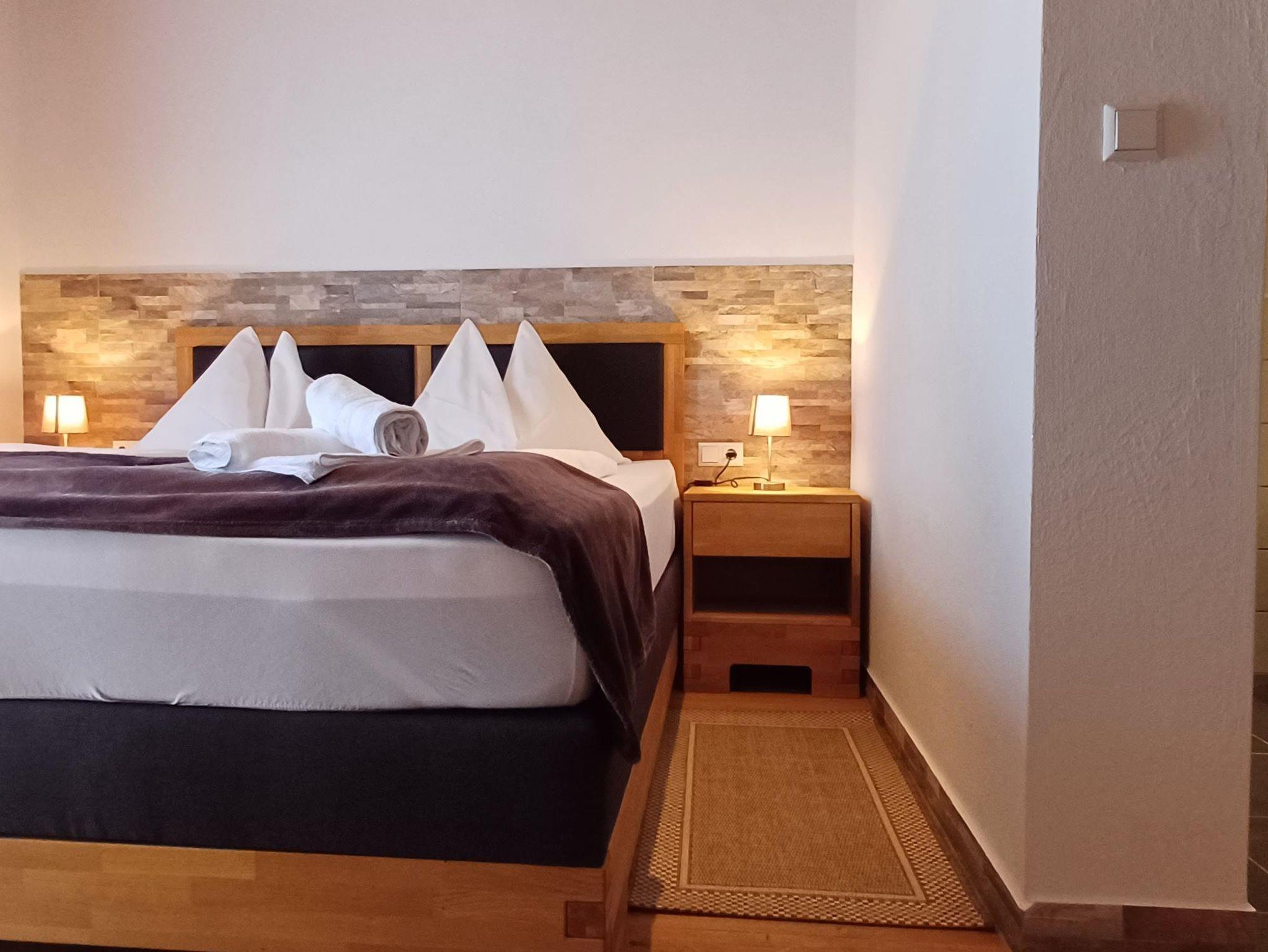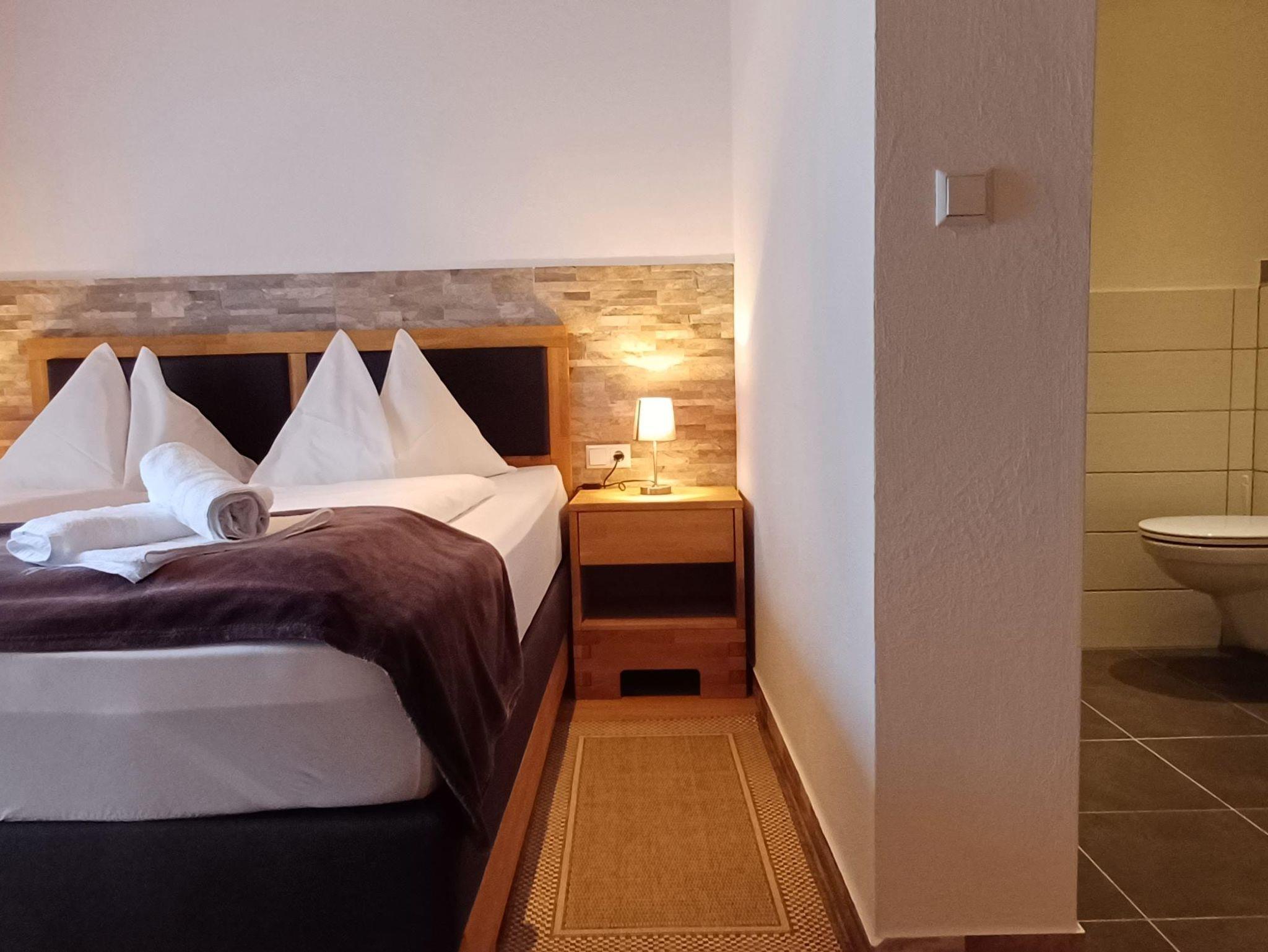 Jedes Zimmer verfügt über ein Badezimmer mit Dusche, WC und Föhn, eine gemütliche Sitzecke, einen Kühlschrank, einen Balkon sowie WLAN und Sat-TV. Nutzen Sie auch unseren Sauna- und Whirlpoolbereich für zusätzliche Entspannung.