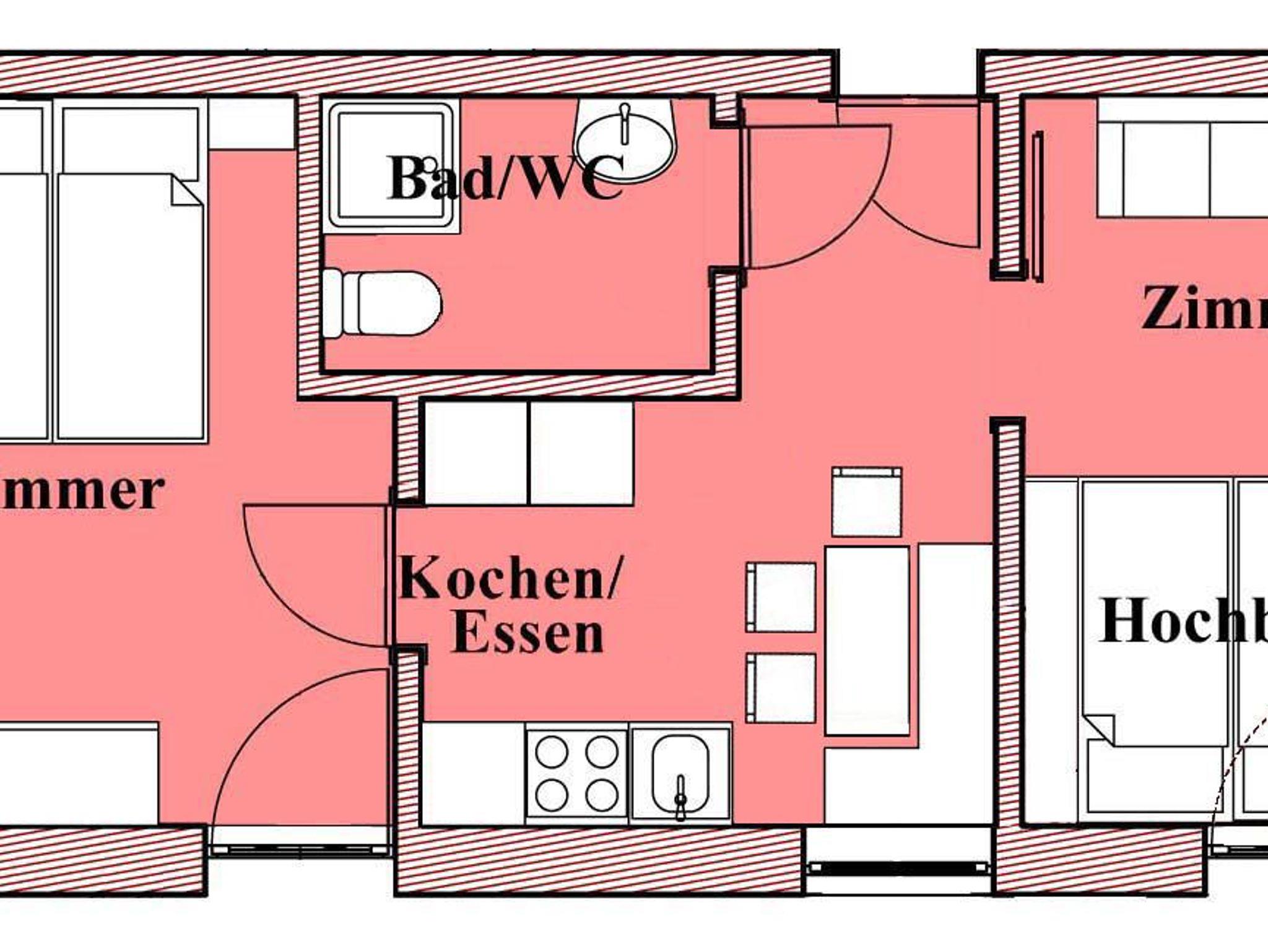 ~ 42 m2 für max. 4 Personen. Eine große geräumige Wohnung; große Wohnküche mit Küchenblock mit 4-Plattenherd und Backrohr, Kühlschrank, Geschirrspüler, Mikrowelle und Kaffeemaschine. Gemütliche Sitzecke und Sat-TV in der Wohnküche. Zwei separate Zweibettschlafzimmer, Bad mit Dusche, Waschbecken und WC. Wohnung hat zwei Balkonzugänge.