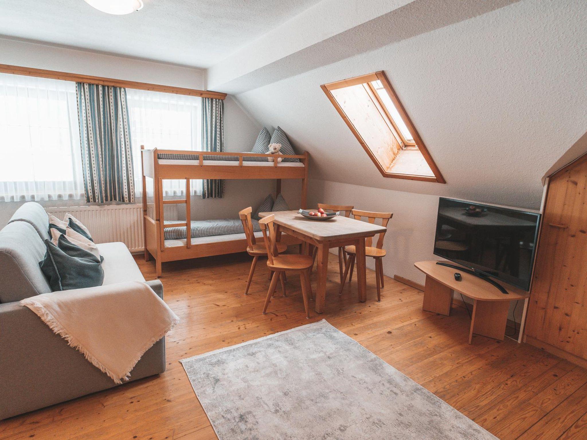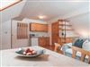 Appartement Nummer 1 verfügt über einen Balkon und einer Eckbank.
