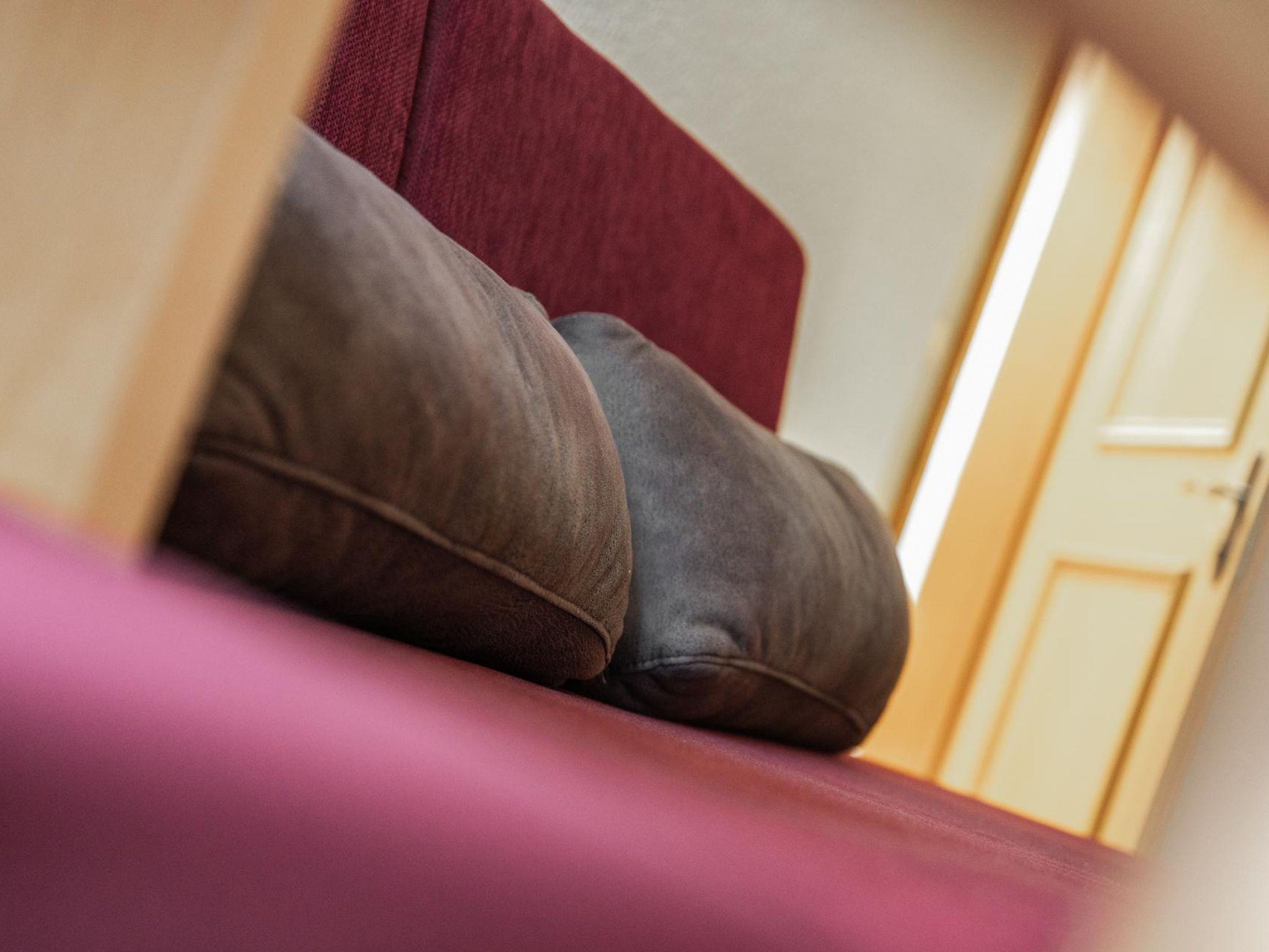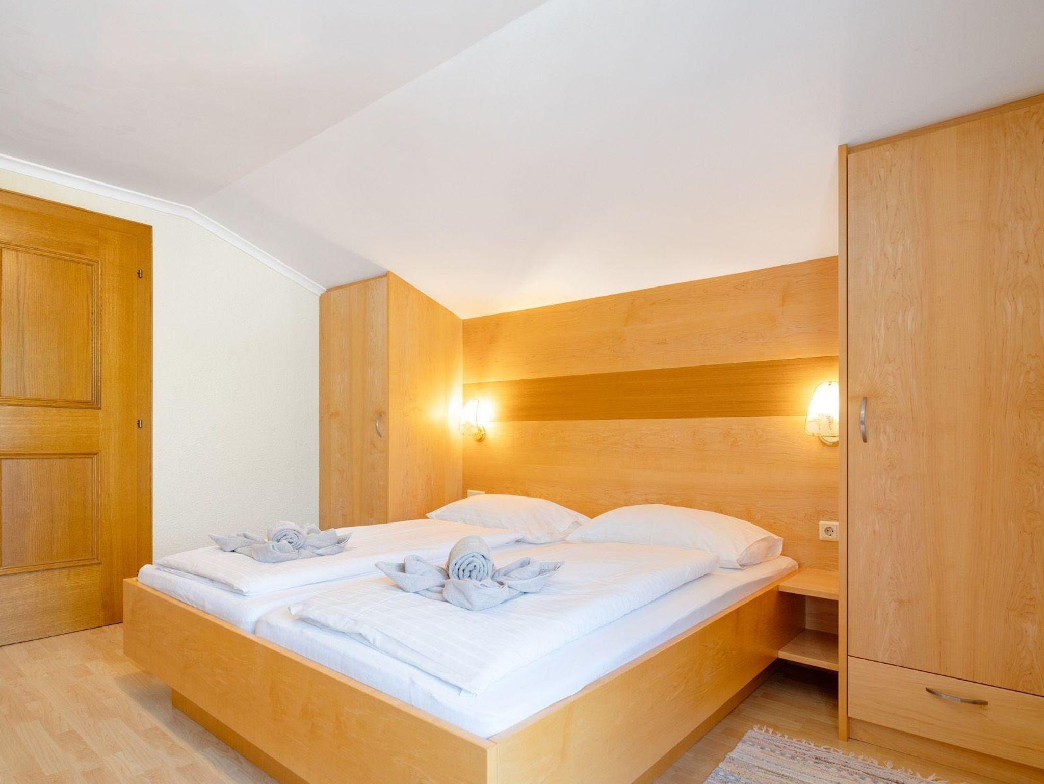 für 2-3 Personen, Sofa für 3. Person – Bett 180 cm lang, 90 cm breit, Sitzgelegenheit, Doppelbett, Bad mit Dusche und WC, 2. Stock, Südwestbalkon zur Sonnenseite mit traumhaften Garten- und Bergblick