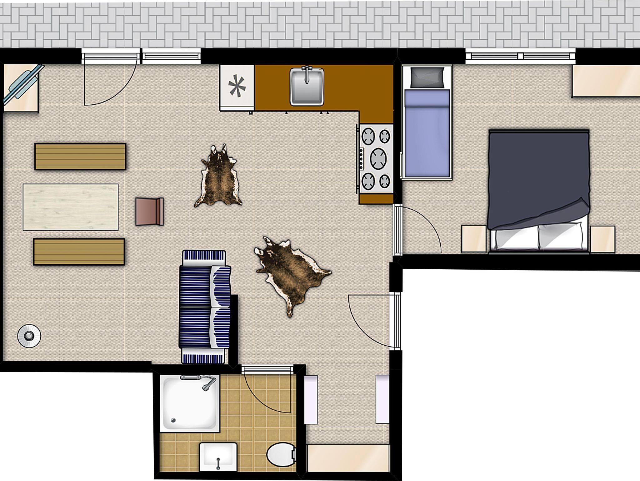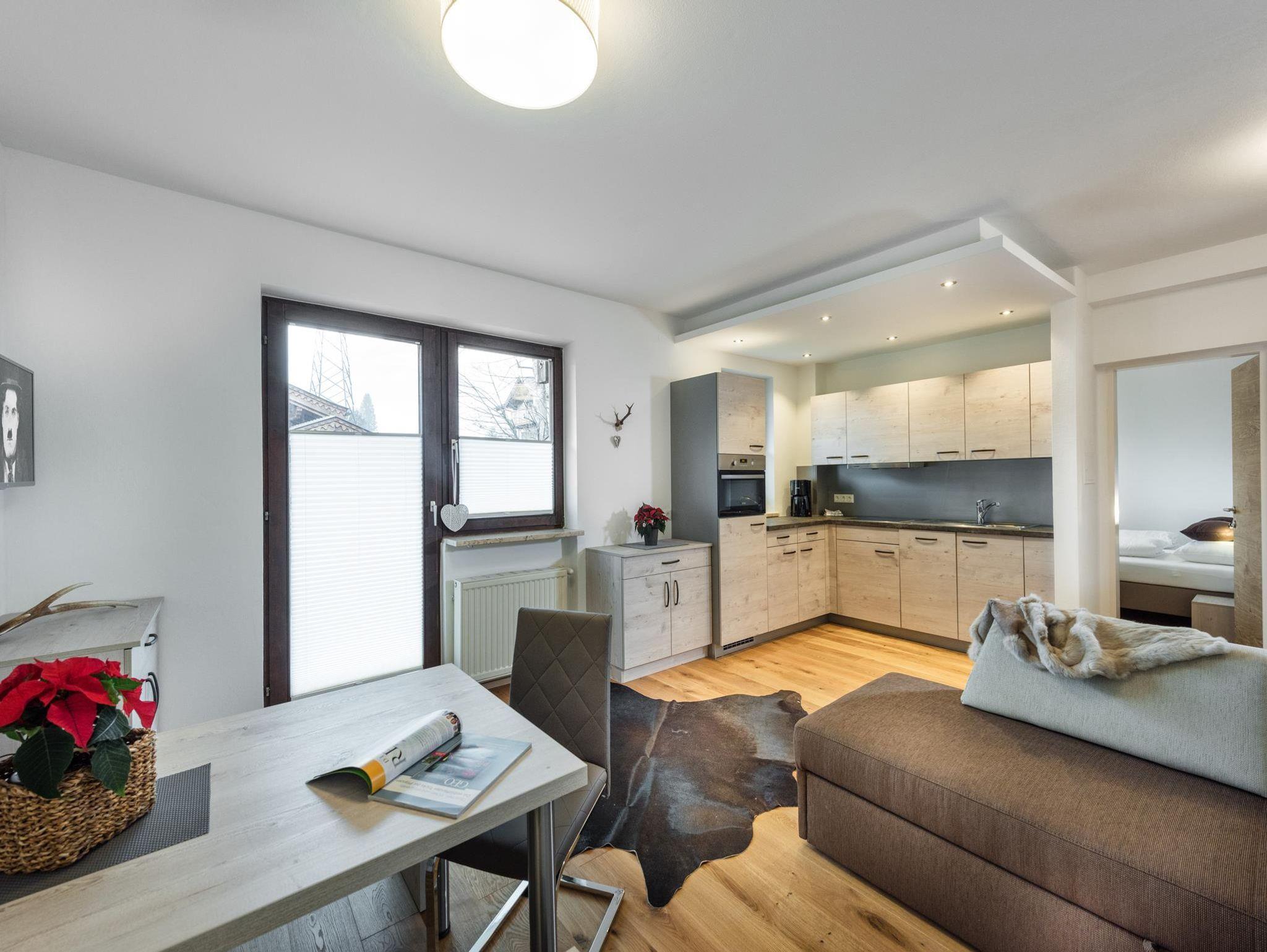 Gemütliches Appartement mit 50 qm Wohnfläche mit einem Schlafzimmer (3-bettig), Wohnschlafzimmer, Bad/WC und Küche sowie ausgedehnter Terrasse. Mit Holzdielenboden und hochwertiger Ausstattung. High-Speed-W-LAN und Flat-Screen-TV mit Internetanbindung.