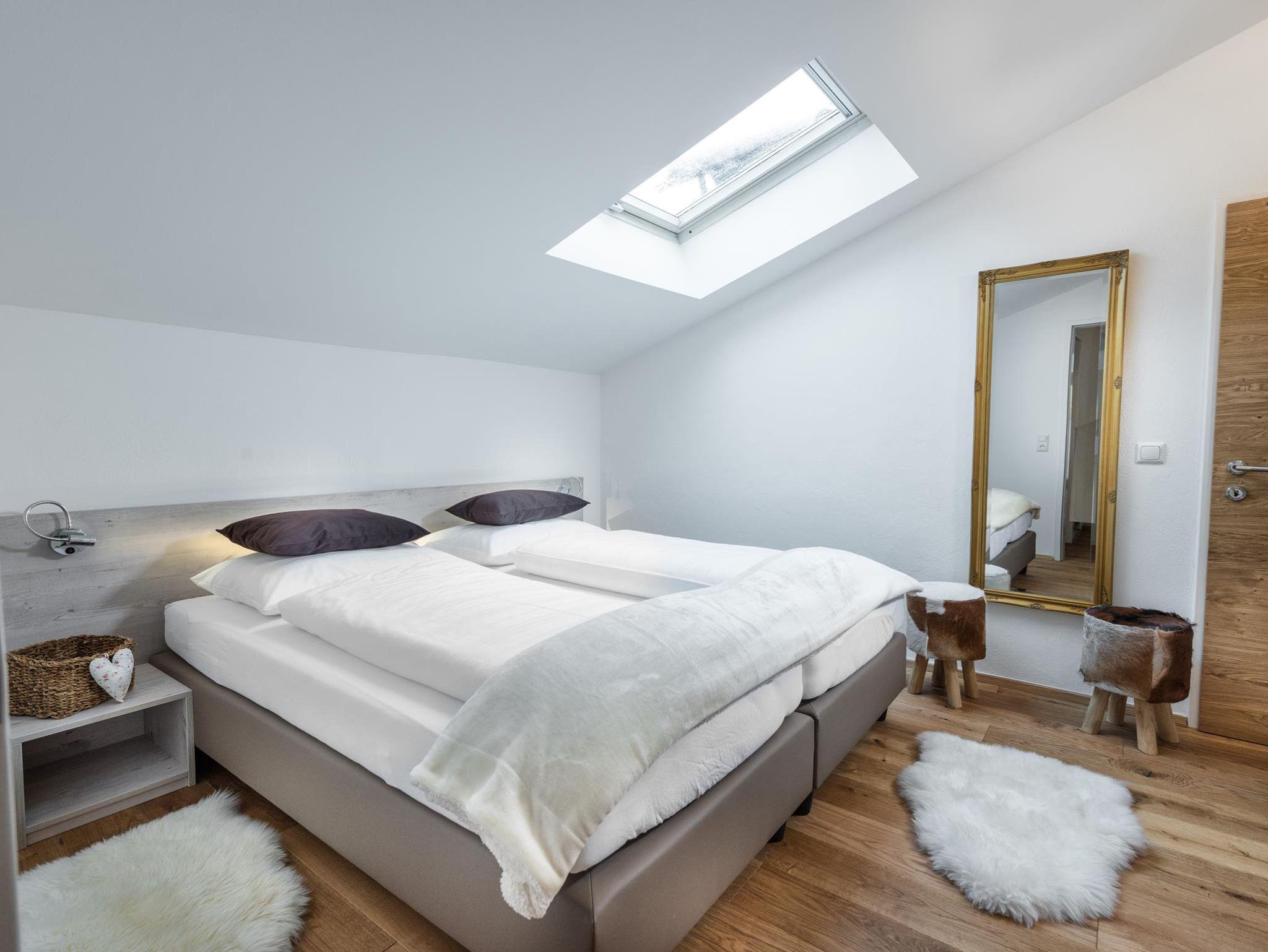 Sie können zwischen 2 Ferienwohnungen mit Balkon und 3 Ferienwohnungen mit Terrasse wählen. Die beiden kleineren Wohnungen sind ca. 50 qm groß und setzen sich folgendermaßen zusammen: Eingangsbereich, Bad/WC mit Dusche, Schlafzimmer für maximal 2 bzw. 3 Personen, Küche mit Esszimmerbereich sowie einem Wohnzimmer mit Schlafmöglichkeit für bis zu 2 zusätzlichen Personen.