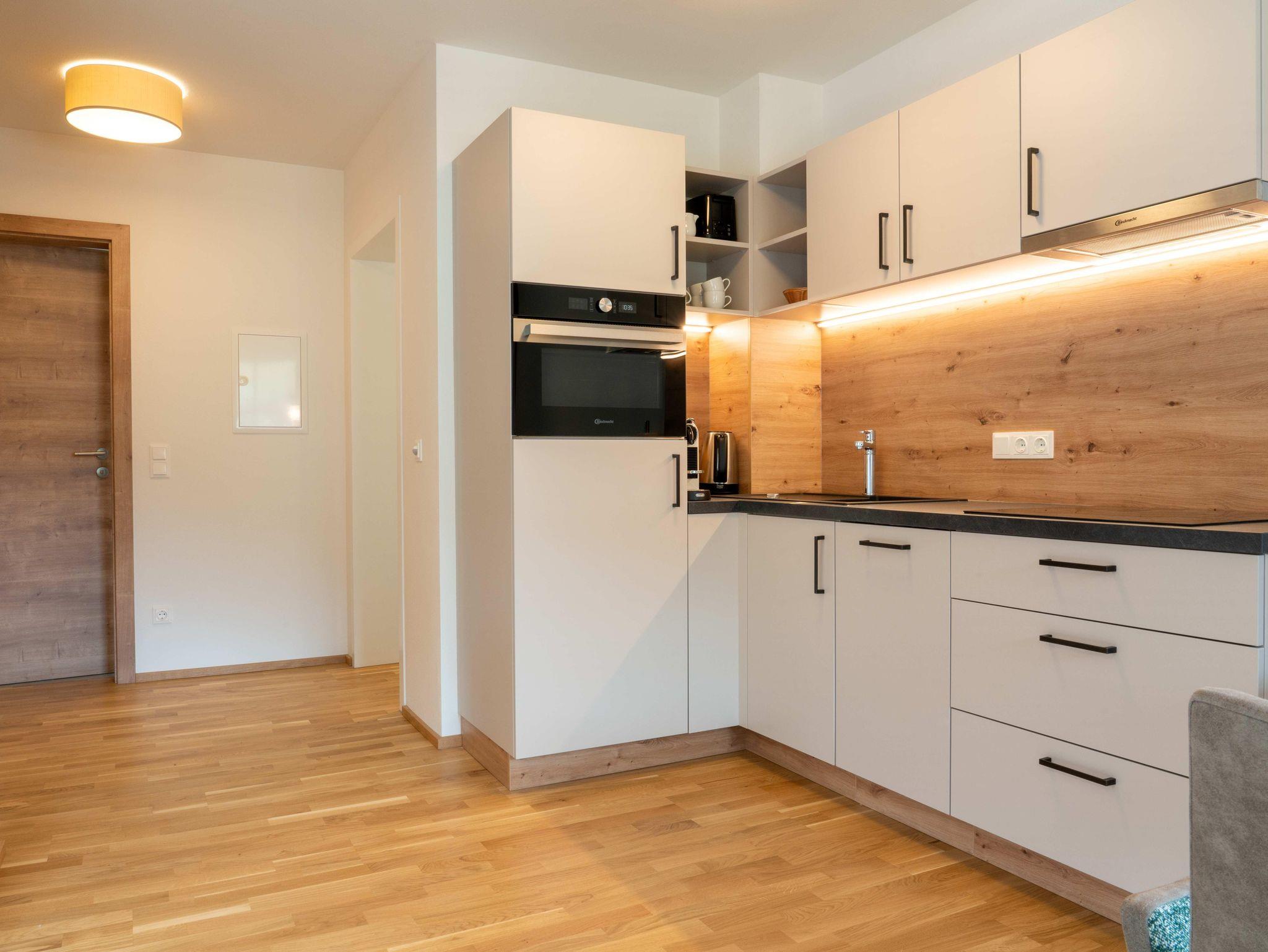 • nagelneuen, topausgestatteten Ferienwohnungen für 1 – 6 Personen mit Wohnküche inkl. „Kitchen-Kit“, 1-2 Schlafzimmern mit hochwertigen „Voglauer“ Betten inkl. Bettwäsche, 1-2 Badezimmern inkl. Handtücher und Haarfön sowie modernen Annehmlichkeiten wie Smart-TV in jedem Zimmer, WLAN, Geschirrspüler, Kühlschrank mit Gefrierfach, Backofen mit Mikrowellenfunktion u.v.m.