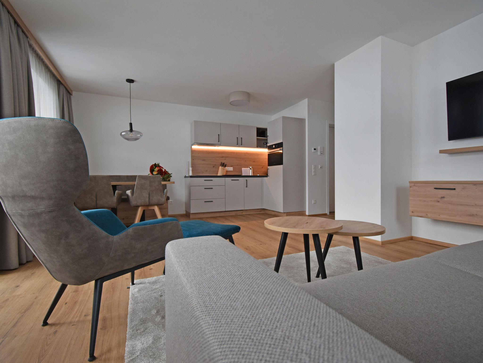 • nagelneuen, topausgestatteten Ferienwohnungen für 1 – 6 Personen mit Wohnküche inkl. „Kitchen-Kit“, 1-2 Schlafzimmern mit hochwertigen „Voglauer“ Betten inkl. Bettwäsche, 1-2 Badezimmern inkl. Handtücher und Haarfön sowie modernen Annehmlichkeiten wie Smart-TV in jedem Zimmer, WLAN, Geschirrspüler, Kühlschrank mit Gefrierfach, Backofen mit Mikrowellenfunktion u.v.m.