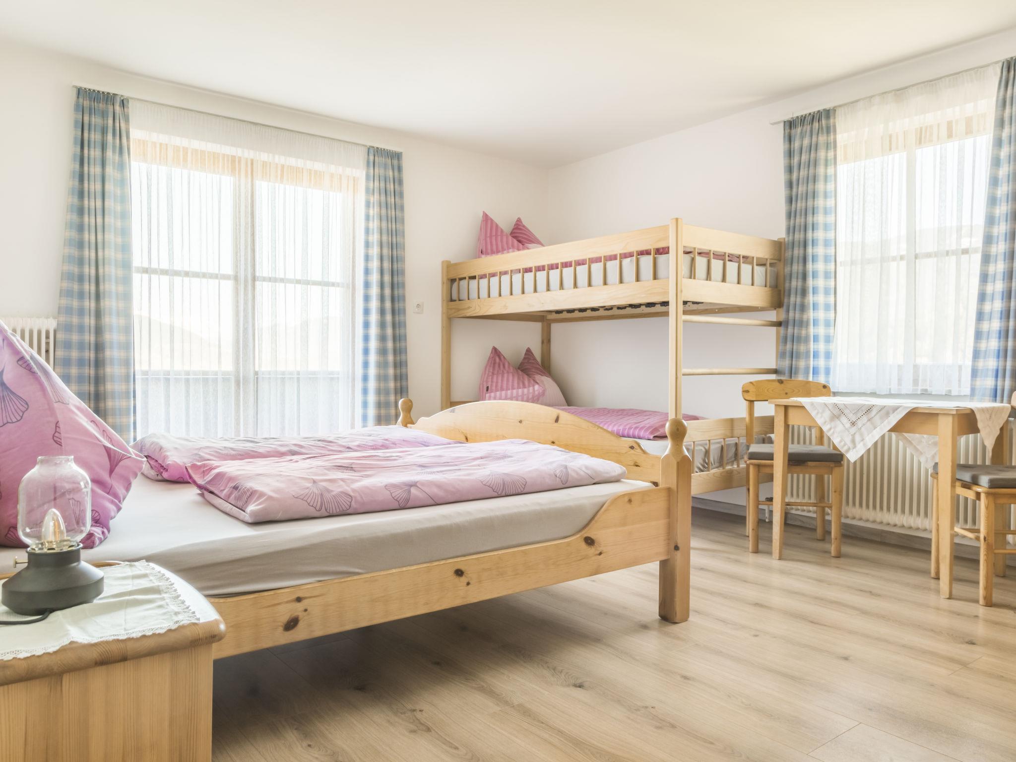 "Eisenhut", 3-room apartment 65 m2 on 1st floor. Cosy and wooden furniture furnishings: 1 room with 2 beds. 1 room with 1 x 2 bunk beds, 1 double bed and hand-basin. Exit to the balcony. Kitchen-/living room (4 hot plates, oven, dishwasher, kettle, microwave, electric coffee machine) with dining nook and satellite TV (flat screen). Shower, sep. WC. Wood heating. Facilities: baby cot. Please note: non-smokers only. Final cleaning from 2 weeks stay additional 200 EUR, to be paid on site! 50412-000078-2020
