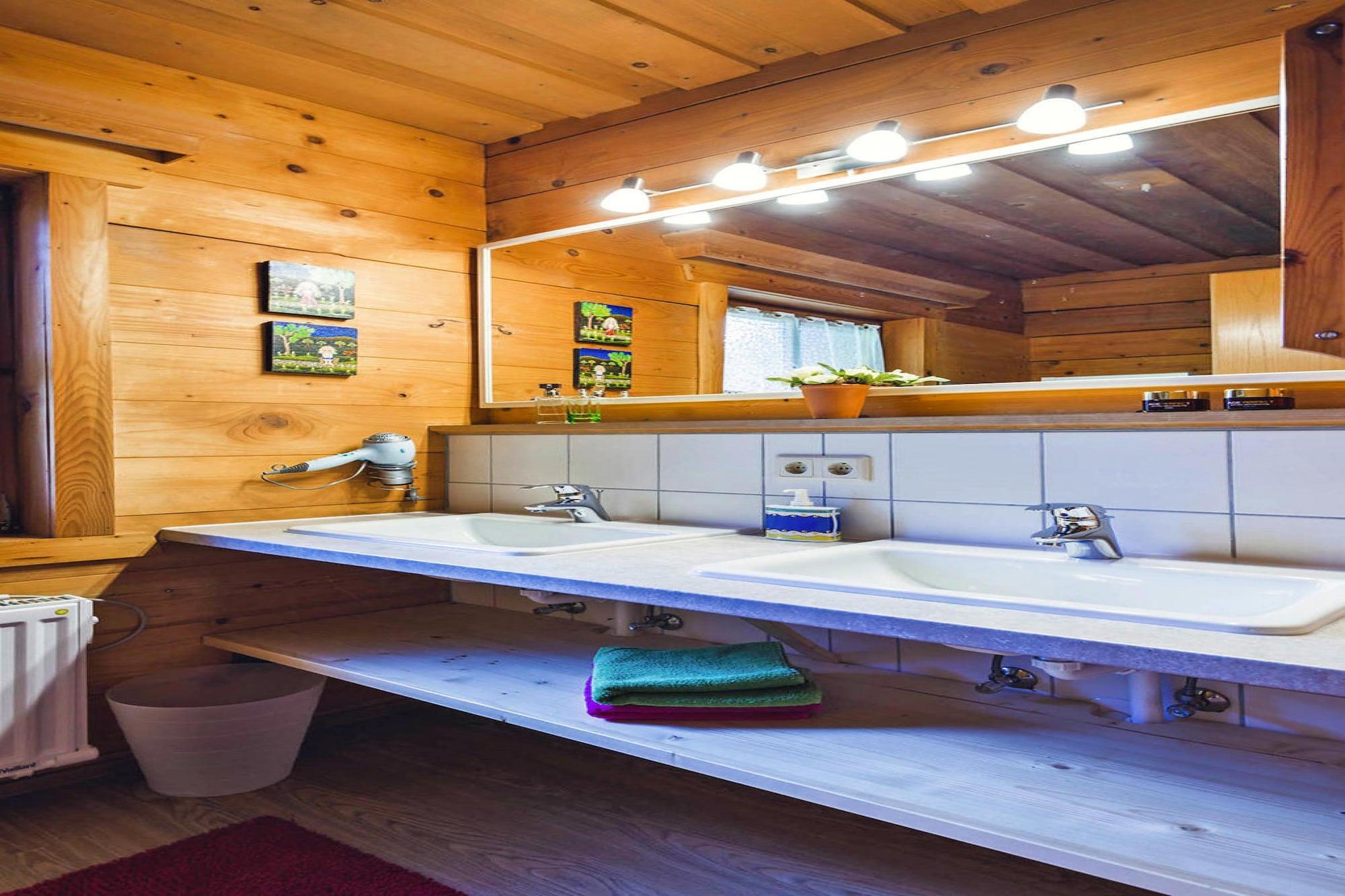 To meget hyggelige træhytter lige i udkanten af skoven over landsbyen, i en rolig og solrig beliggenhed på en bakke, med en fantastisk panoramaudsigt (862 m over havets overflade). Især fra den store træbalkon med havemøbler og liggestole kan du nyde en imponerende udsigt over den majestætiske Hochkönig. Vandreture og mountainbiketure er mulige fra hoveddøren. Den eventyrlige badesø Eben byder på en forfriskende forfriskning på varme dage med en stor vandrutsjebane, børnebassin, legeplads, rummeligt område til solbadning og restaurant. En vidunderlig feriesæson midt i en imponerende bjergverden venter dig. Detaljer: WLAN Aktiviteter i nærheden: Vandreentusiaster har mere end 80 km afmærkede vandrestier i Eben, som også fører til alpine enge og snackbarer. I alt byder regionen på mere end 500 km afmærkede stier og stigninger i alle sværhedsgrader. Der er også mere end 100 km cykel- og mountainbikestier: hvad enten du slapper af med familien i dalen eller sporty over bjergene - alt er muligt Mobilitet: Ikke egnet til personer med nedsat mobilitet