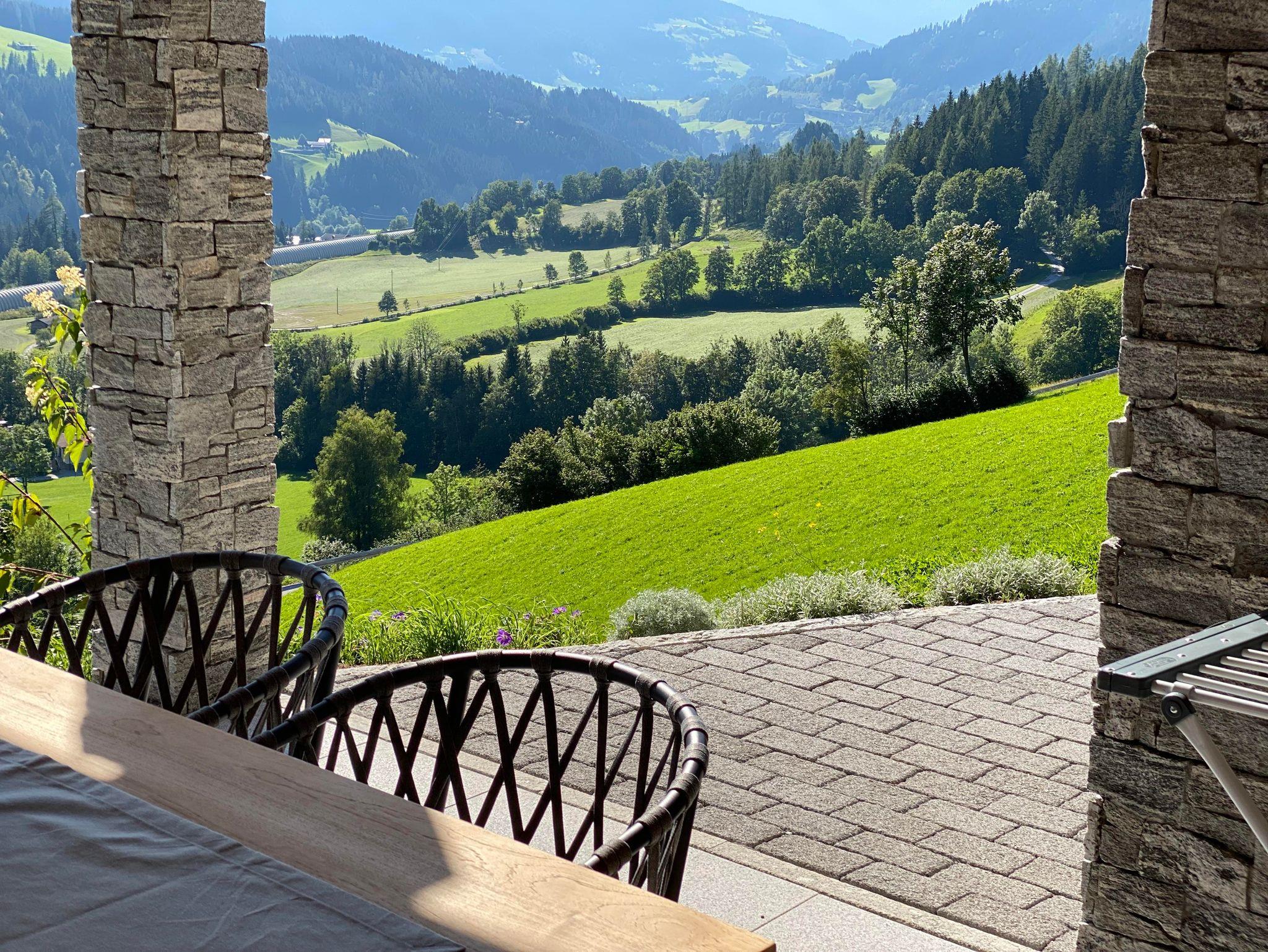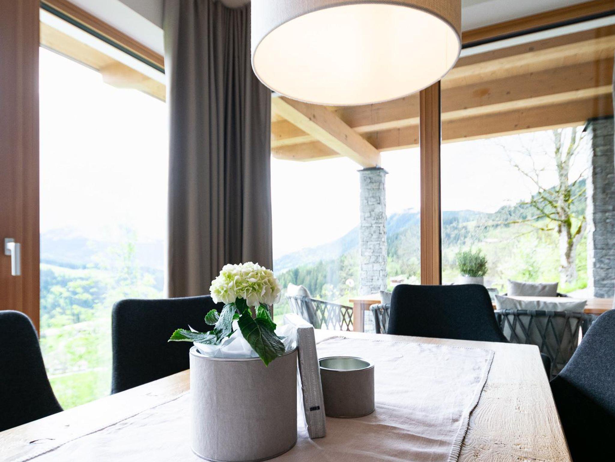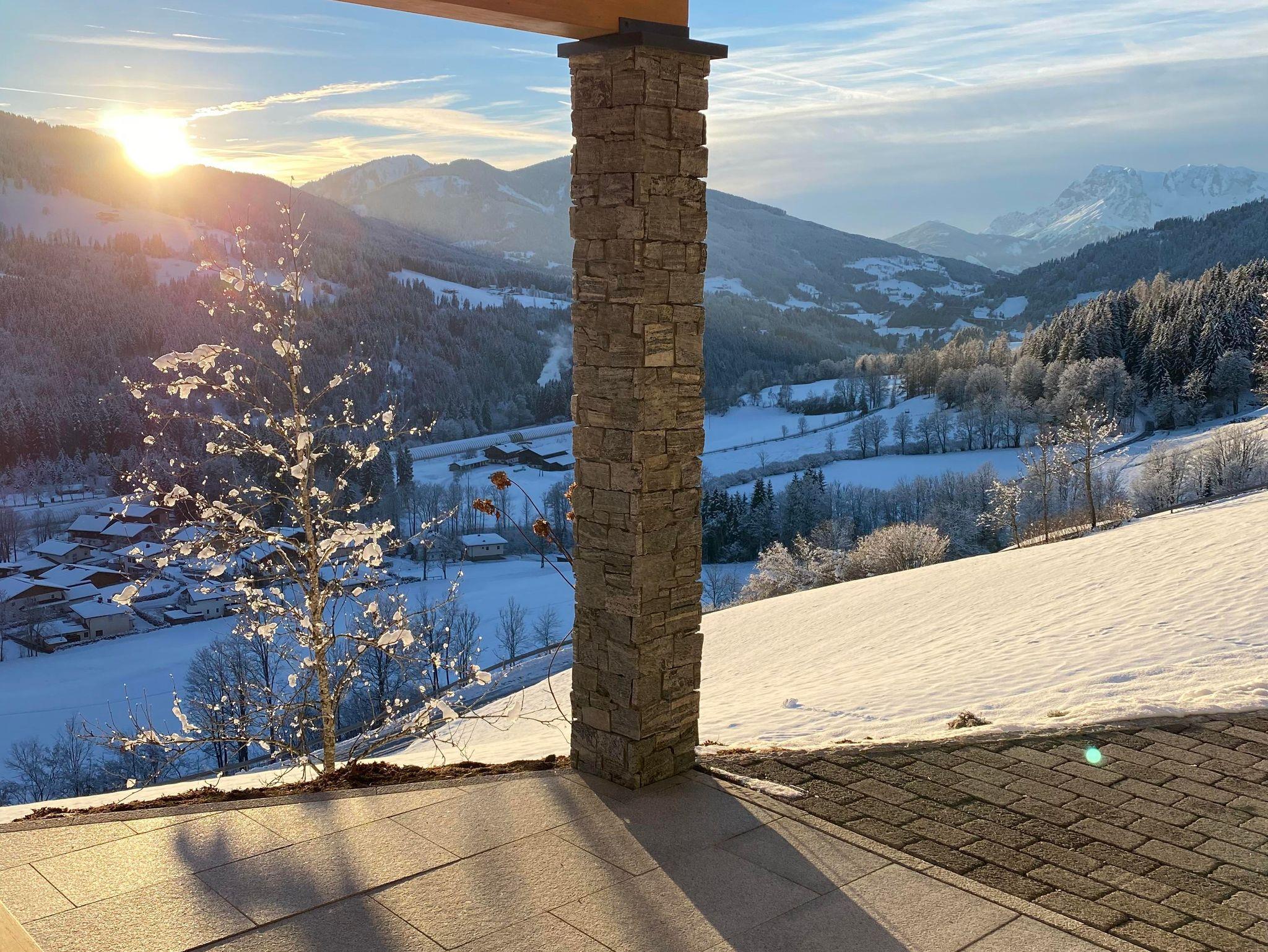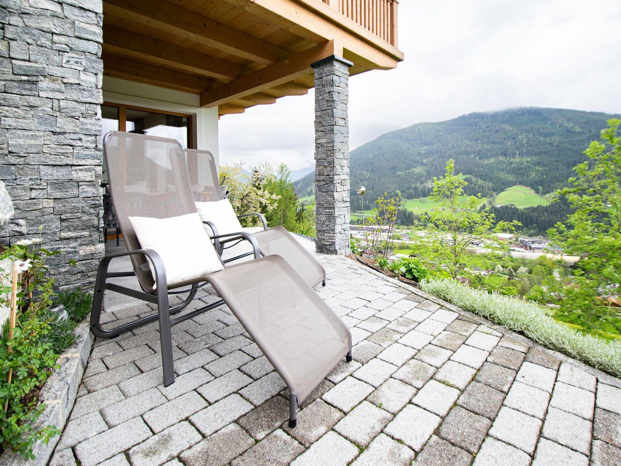 Nach einem aktiven Tag wartet Ihre private Terrasse mit einem einmaligen Blick auf den Hochkönig auf Sie. Machen Sie es sich gemütlich und genießen Sie die letzten Sonnenstrahlen des Tages – ein Sonnenuntergang zum Träumen.