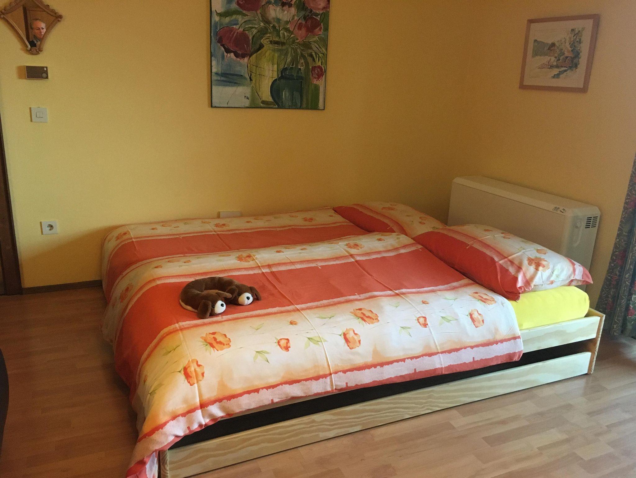 ein Wohn-Schlafzimmer, extra Couch (vollwertiges Doppelbett mit 2 Matratzen),