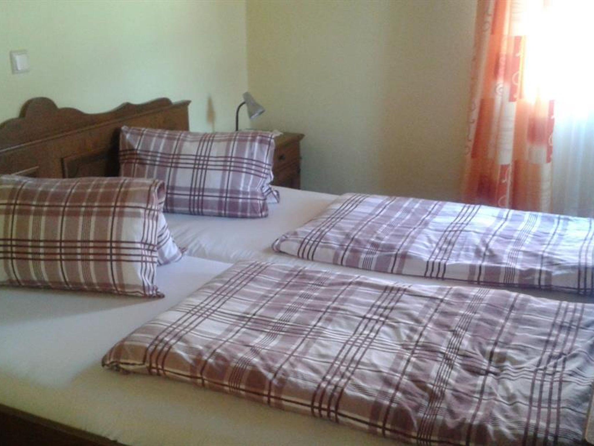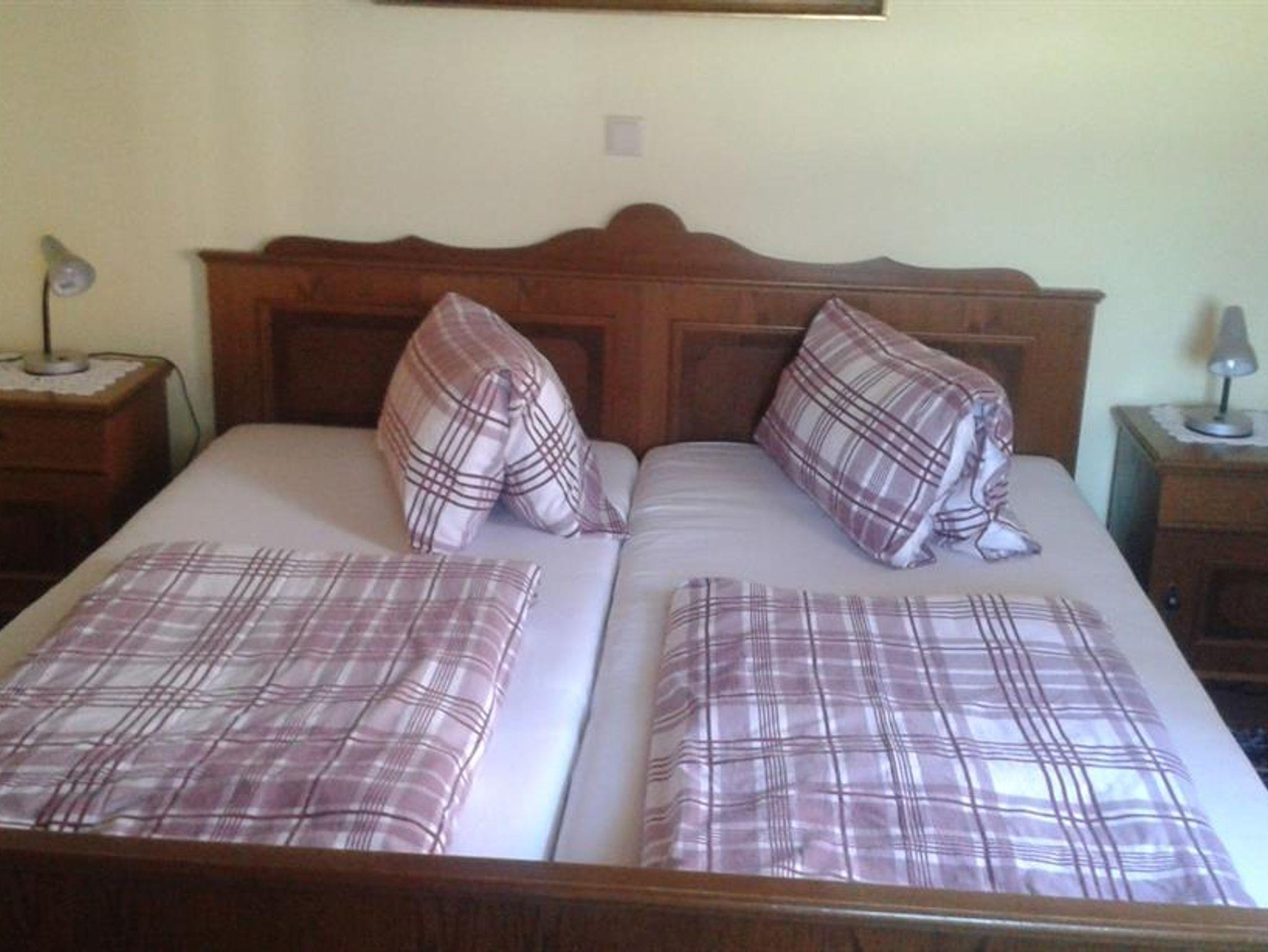 Das Komfortzimmer (Zimmer 1) ist eine kleine Ferienwohnung im Erdgeschoß (2 Räume) gelegen, ausgestattet mit Kochnische u. Geschirr, Kabel-TV, Couch, Parkettböden, Dusche und WC und getrenntem Schlafzimmer. Auch ein Kinderbett findet noch Platz.