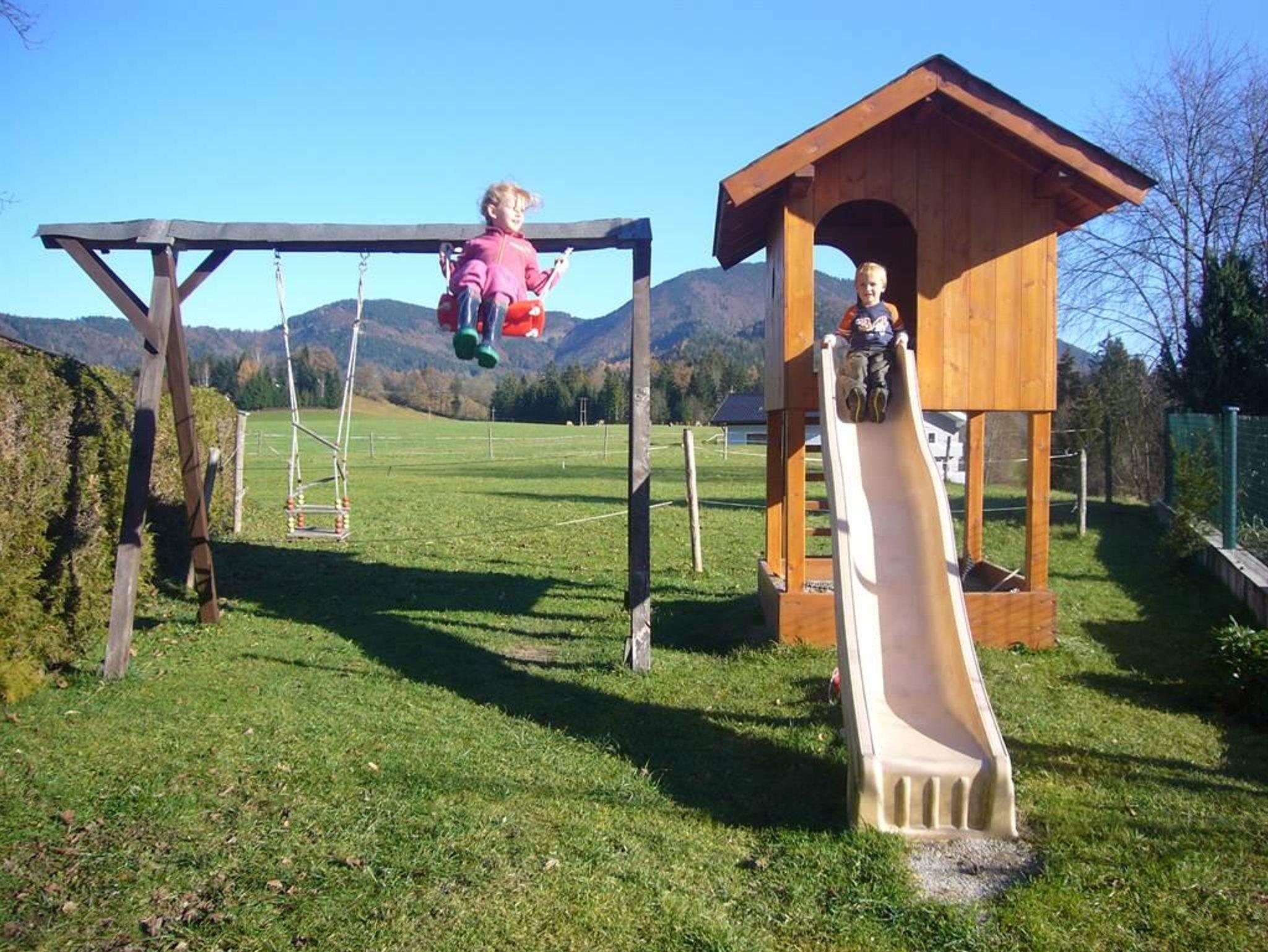 Für die Kinder gibt es eine Spielwiese u. verschiedene Geräte zum austoben.