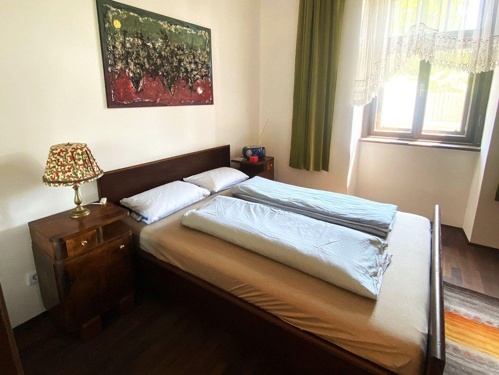 1. Schlafzimmer Doppelbett mit 160 cm Breite mit Kasten, Fliegengitter und frischer Bettwäsche