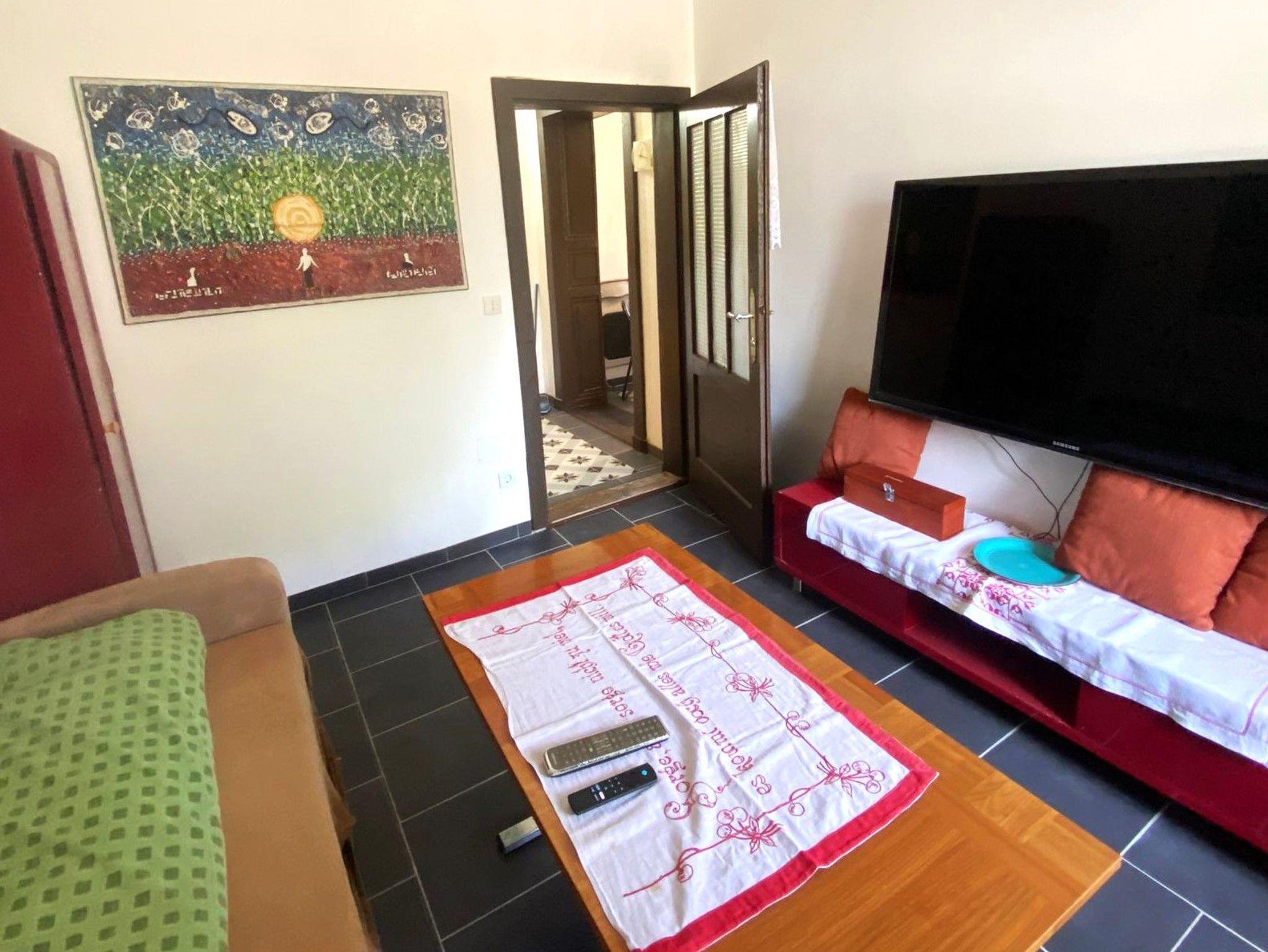 2. Wohnschlafzimmer Schlafsofa 180 cm Breite ausziehbar für 2 Erwachsene Personen, HD Fernseher, Fliegengitter und frischer Bettwäsche