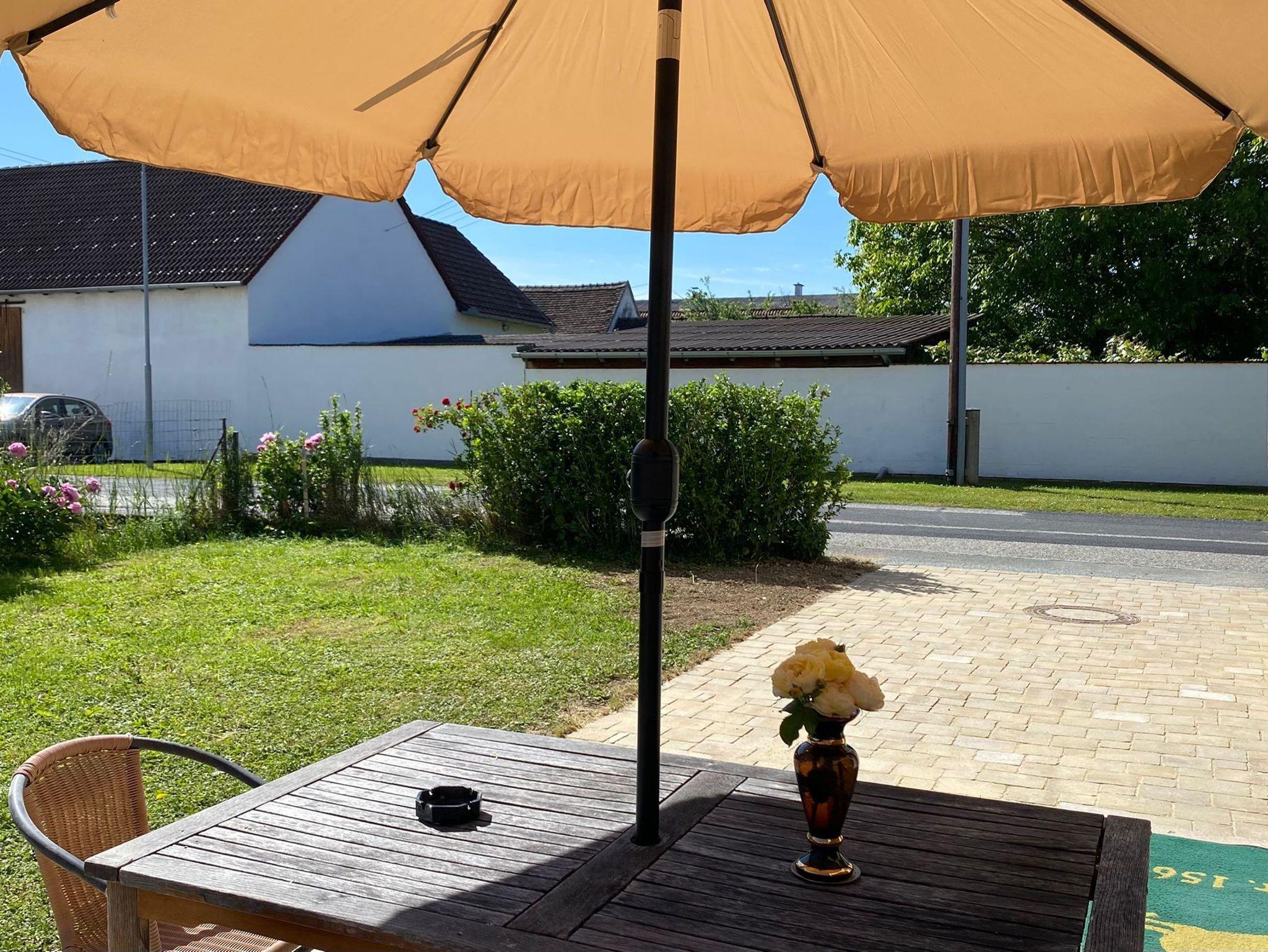 Die Ferienwohnung hat eine eigene Zufahrt, einen eigenen Eingang und einen Autoabstellplatz am Grundstück. Vor dem Eingang der Ferienwohnung können Sie im Schatten ruhen oder in der Wiese picknicken. Auch ein kleines Plantschbecken mit Sonnenschirm wird bei Bedarf bereitstehen.