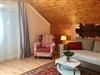 Stueetage: (entre) På 1. etage: (Stue(dobbeltsovesofa, Fjernsyn, hyggepejs, balkon), køkken-alrum(spisebord, komfur(Komfur med fire kogeplader), ovn, combi-mikroovn, opvaskemaskine , fryser, køle-fryseskab), soveværelse(dobbeltseng), soveværelse(2x enkeltseng), badeværelse(badekar med bruser, toilet)) vaskemaskine, varme, terrasse, have(deles med andre gæster), havemøbler, grill, parkering, bordtennisbord, cykler til rådighed(på anmodning)