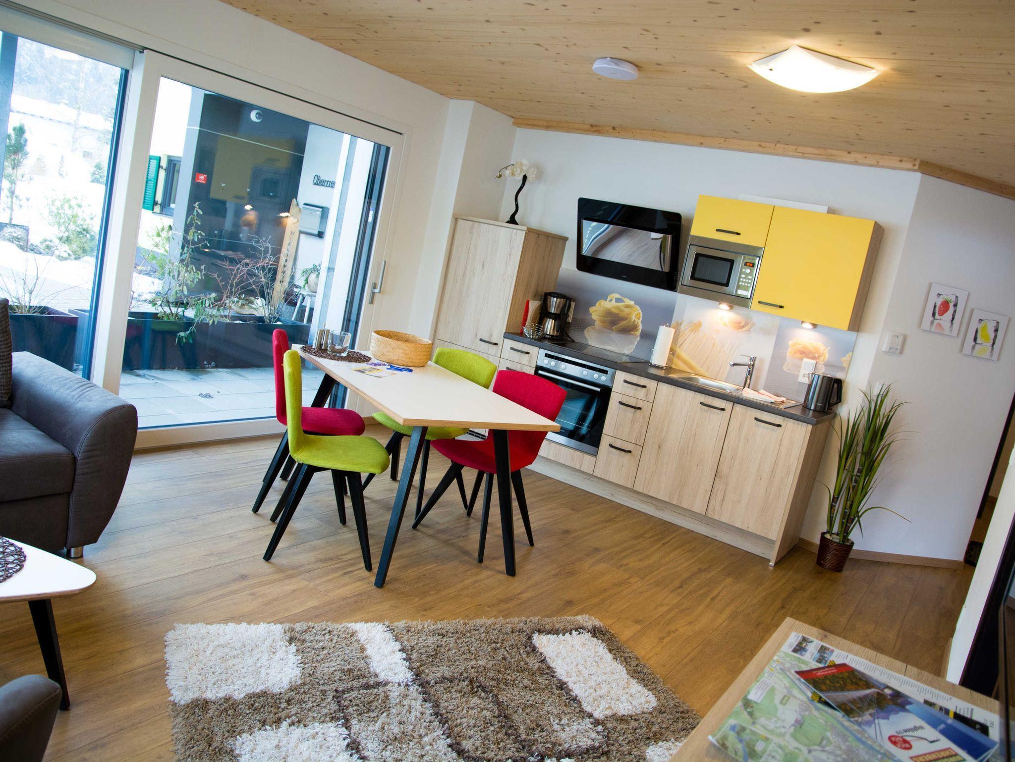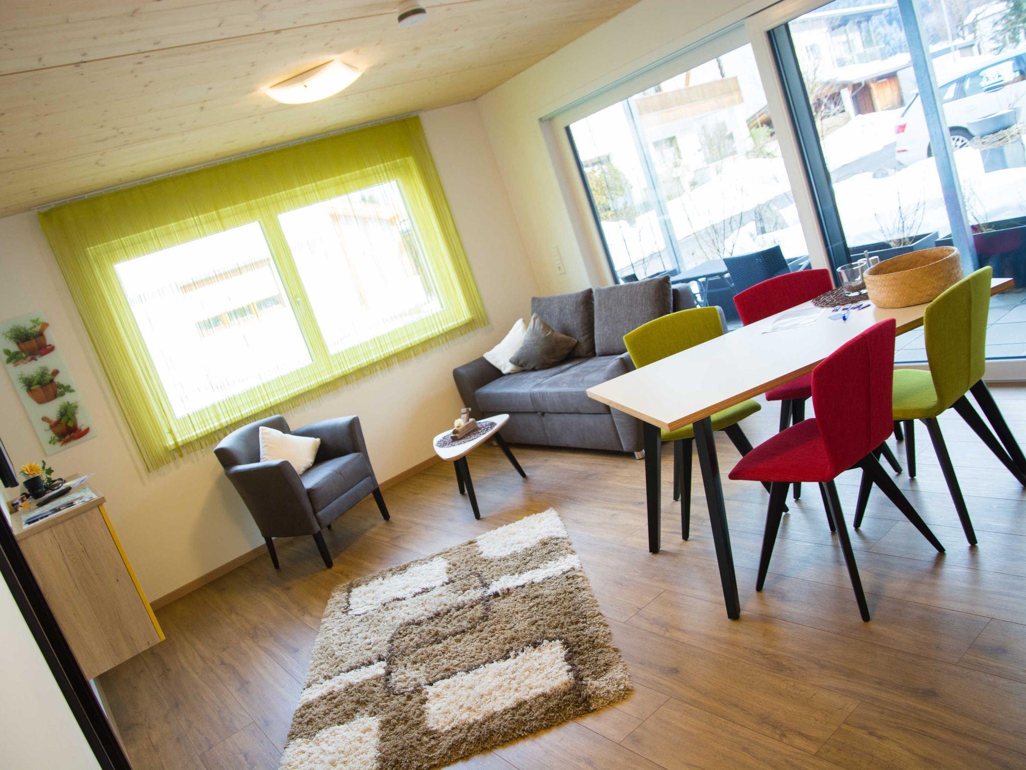 Die Apartments sind mit Holzmöbeln eingerichtet und verfügen über ein Schlafsofa, eine Küche mit einem Geschirrspüler, ein Bad mit einer Dusche und einer Badewanne sowie eine Terrasse mit Bergblick.
