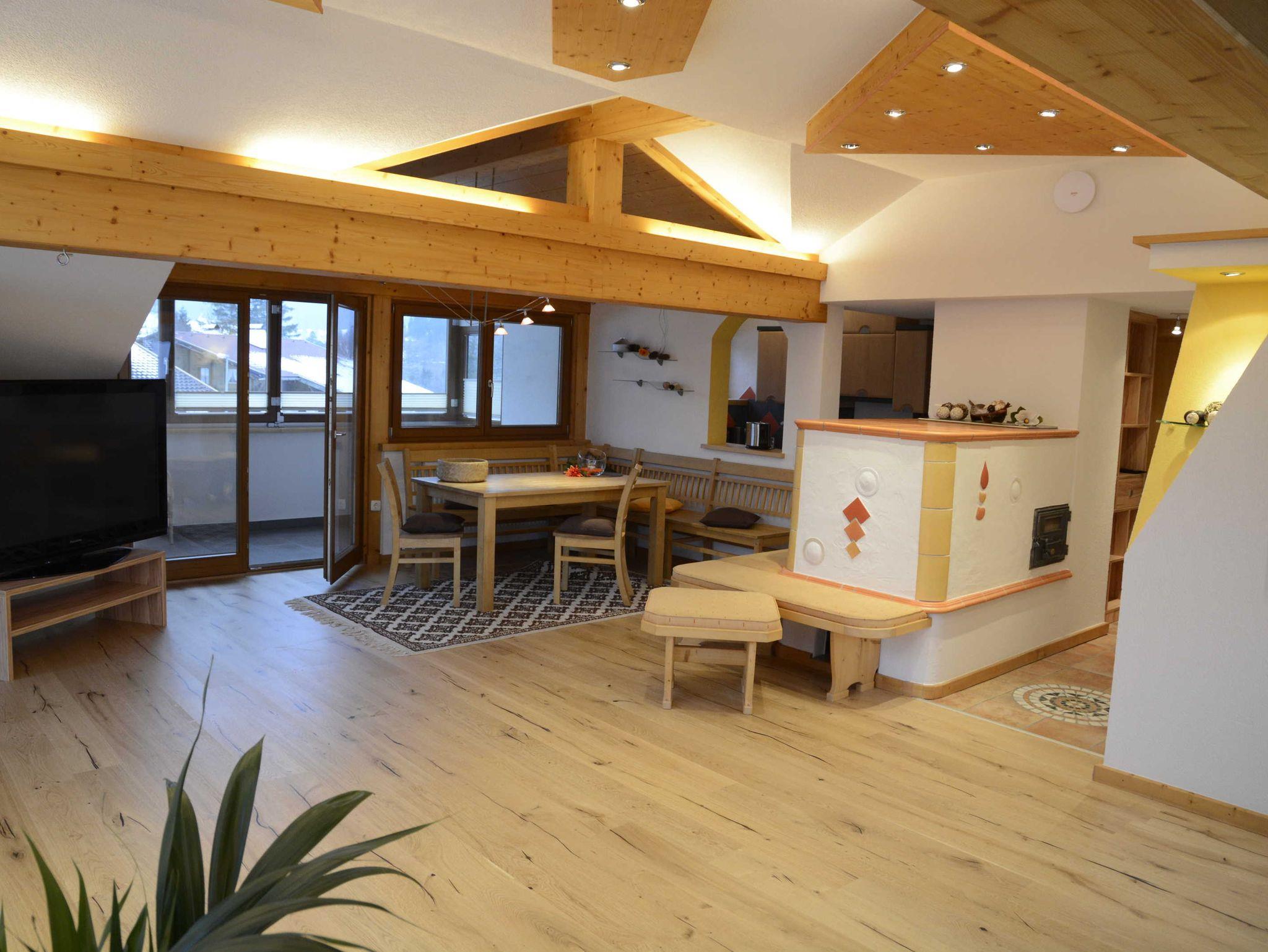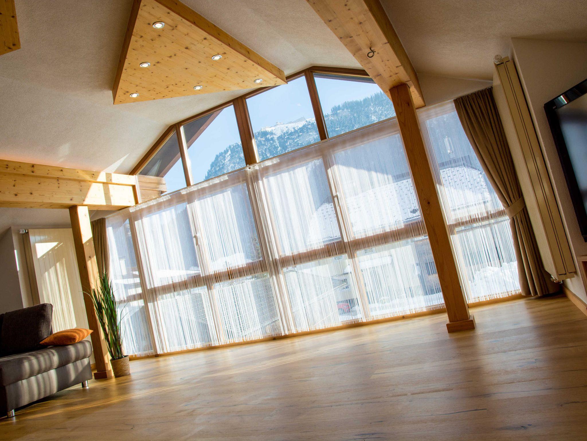 Unser Panoramaapart befindet sich im Dachgeschoß, ist ca. 90 m2 groß und bietet Platz für 1 bis 4 Personen. Ein Babybett kann natürlich jederzeit dazugestellt werden. Eine überdachte Loggia ermöglicht Ihnen einen herrlichen Bergblick. Über ein Panoramafenster genießen Sie den Ausblick auf Burg und Bergwelt.