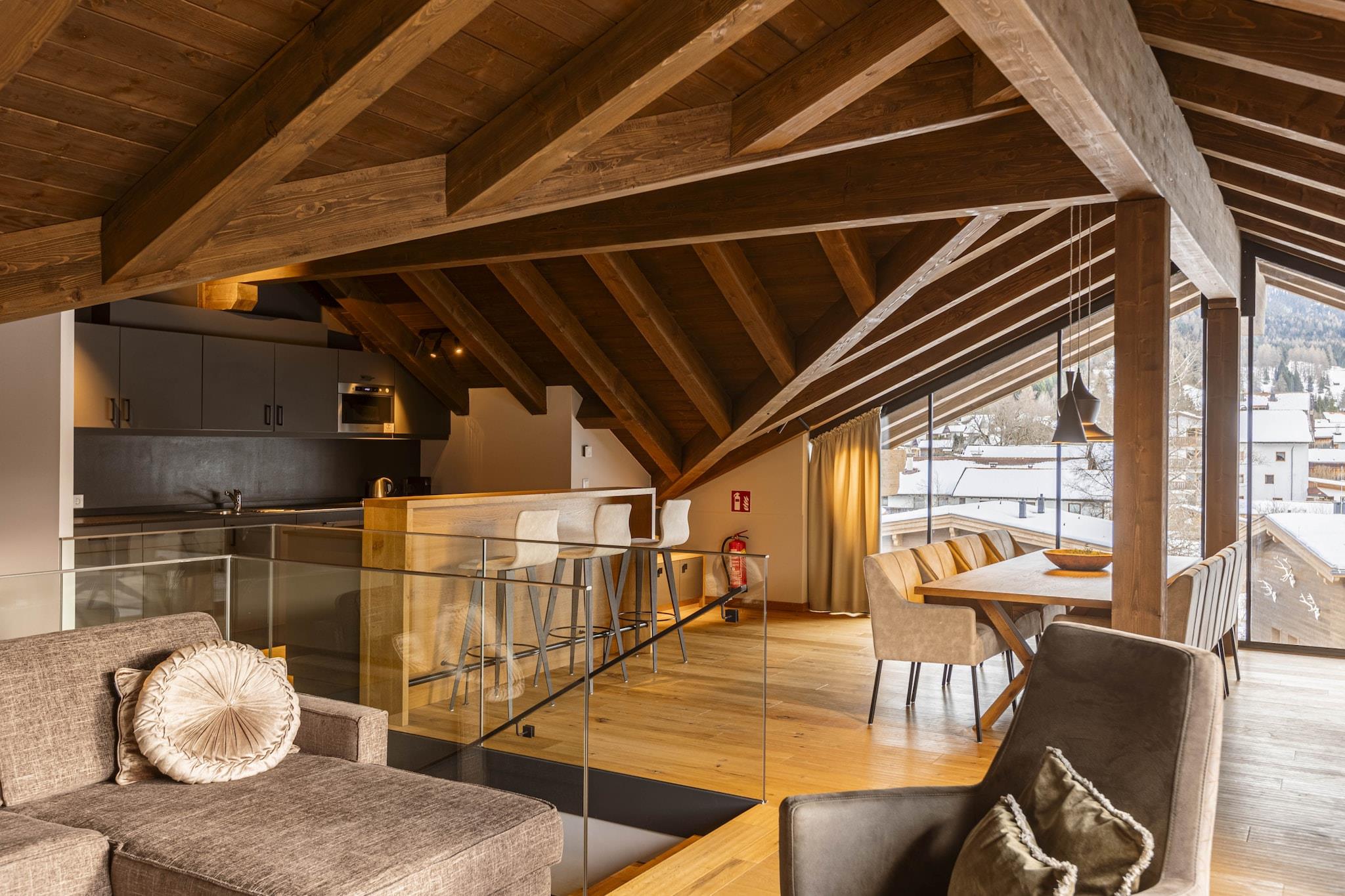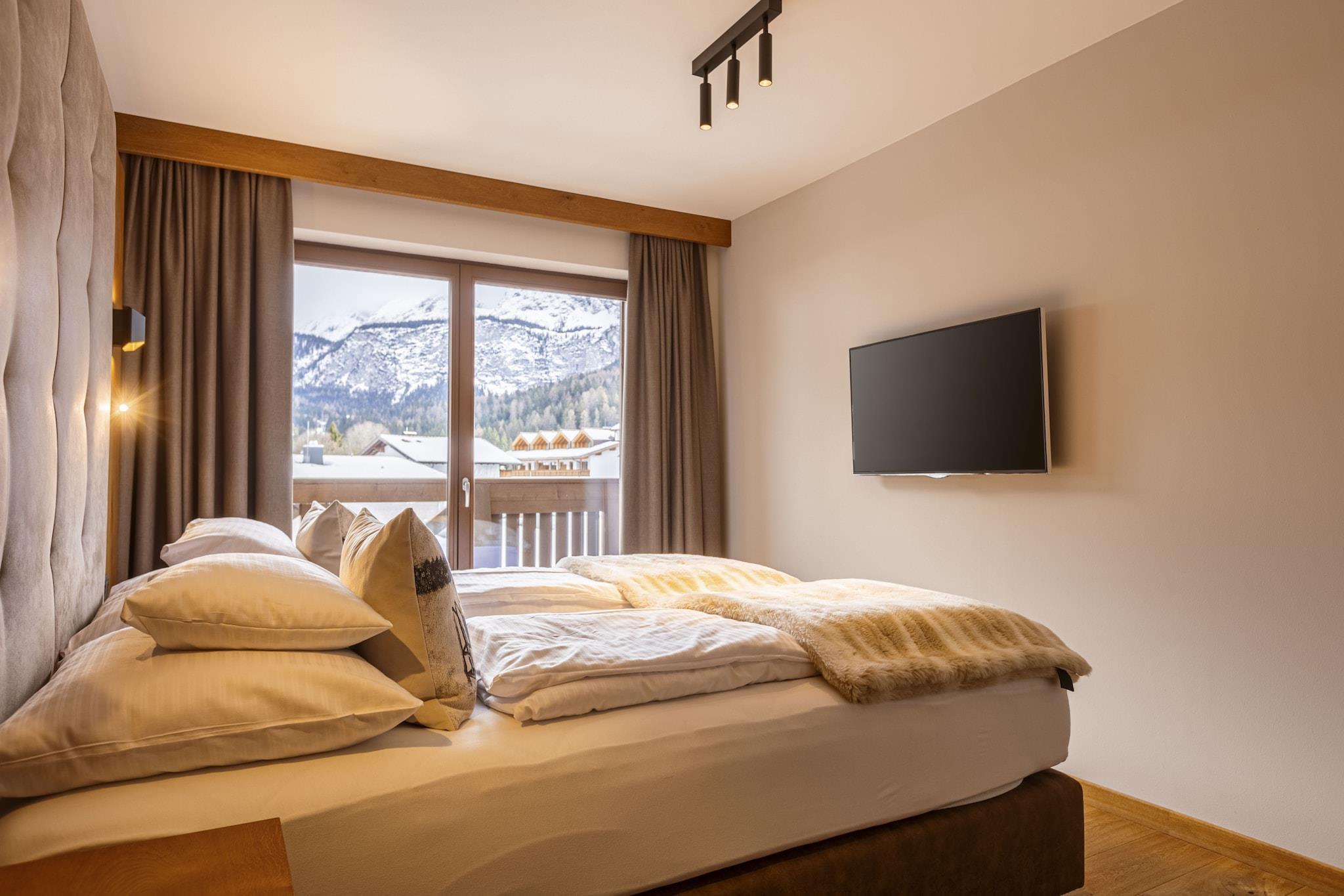 Denne penthouse tilbyder den ideelle indkvartering til din ferie, inklusive morgenmad. Den 134 til 159 m² store penthouse kan komfortabelt rumme 2 til 8 personer. Lejligheden har 3 soveværelser, 2 badeværelser med enten bruser eller badekar og toilet (der medfølger hårtørrer), tekøkken og balkon eller loggia. Du vil nyde en afslappende søvn i komfortable dobbeltsenge, og opholdsområdet byder på en dobbelt sovesofa, der kan rumme yderligere 2 personer. Køkkenet i opholds-/spiseområdet er fuldt udstyret, hvilket betyder, at det omfatter bestik og køkkengrej, en keramisk kogeplade, mikroovn, køleskab med fryser, opvaskemaskine, elkedel og en Nespresso-kaffemaskine. Et lille startsæt med en opvasketablet, opvaskemiddel (20 ml), svamp, affaldsposer, rengøringsklud og viskestykke vil blive leveret ved din ankomst. Der er gratis trådløs internetadgang overalt på Bergresort Zugspitze Ehrwald. Alle billeder er eksempelbilleder, da hver lejlighed er individuelt indrettet. Resortet har også et wellness-område med en opvarmet udendørs pool, saunaer (biosauna, finsk sauna, infrarød sauna), et dampbad og et fitnessrum. Restauranten er tilgængelig for dine behov for spisning. "Zugspitz Arena Bayern-Tirol Card"-gæstekortet er inkluderet, og gratis underjordisk parkering er tilgængelig for din bekvemmelighed.