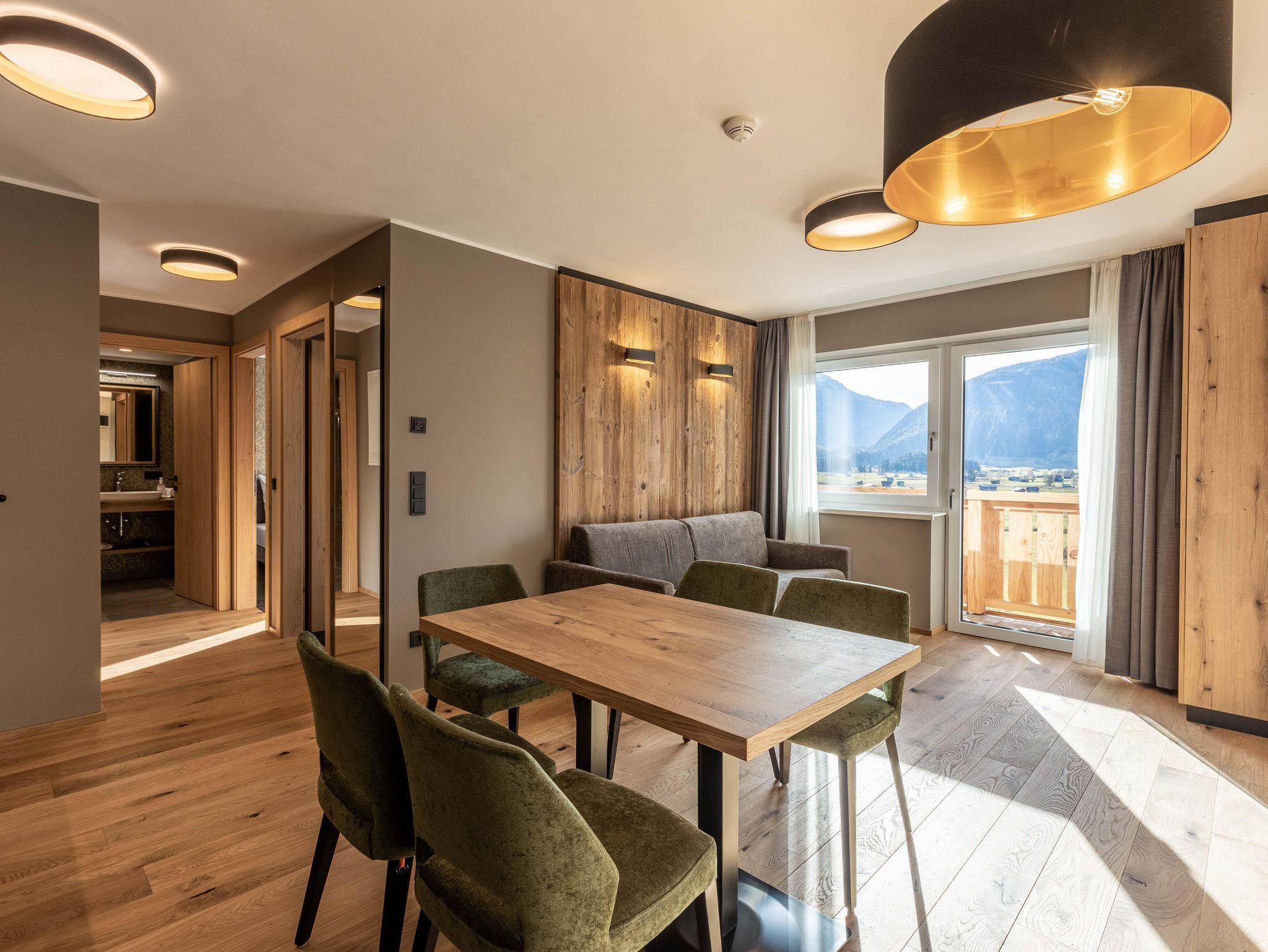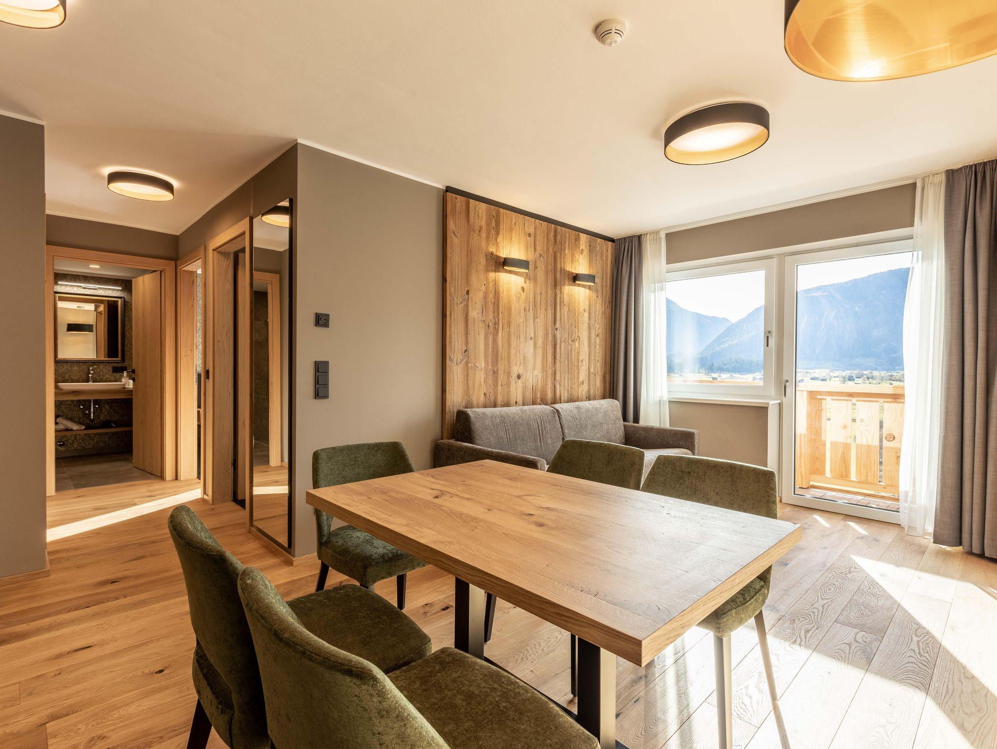Zugspitz Residences liegt im Herzen von Ehrwald, direkt neben dem Golfplatz und in unmittelbarer Nähe des weit bekannten Ehrwalder Schigebiets. Dieser einzigartige, familienfreundliche Topspot garantiert ganzjährig Sport- und Freizeiterlebnisse der besonderen Art. Die bequem vom Haus aus zu erreichende Zugspitz Arena mit 56 Bergbahnen bietet auf 142 Pistenkilometern abwechslungsreiches Skivergnügen in allen Schwierigkeitsgraden! Des Weiteren sind eine problemlose Anbindung (Flughafen Innsbruck, 75 km - Flughafen München (DE), 147 km - Flughafen Salzburg, 196 km - Flughafen Zürich (CH), 200 km) und diverse Ausflugsziele (Bayrische Königsschlösser, Seefeld, Ötzi Dorf, Swarovski Kristallwelten, Innsbruck uvm.) gegeben. Parkmöglichkeiten sind rund um die Residenz vorhanden. Für Körper und Seele besteht im Erdgeschoß ein exklusiver Wellnessbereich mit Indoor-Infinity-Pool, finnischer Sauna, Bio-Sauna sowie Infrarotkabine, Regenerationsdusche und einem Ruheraum für totale Entspannung. Der Außenbereich animiert im Sommer zum Relaxen in der Sonne und im Winter ist dort Erfrischung nach einem ausgiebigen Saunagang möglich.