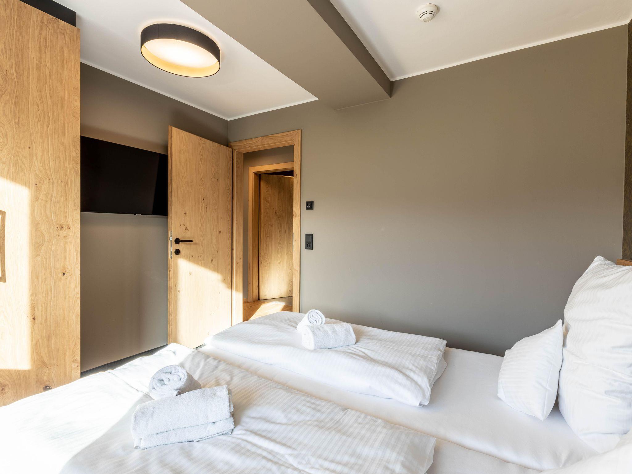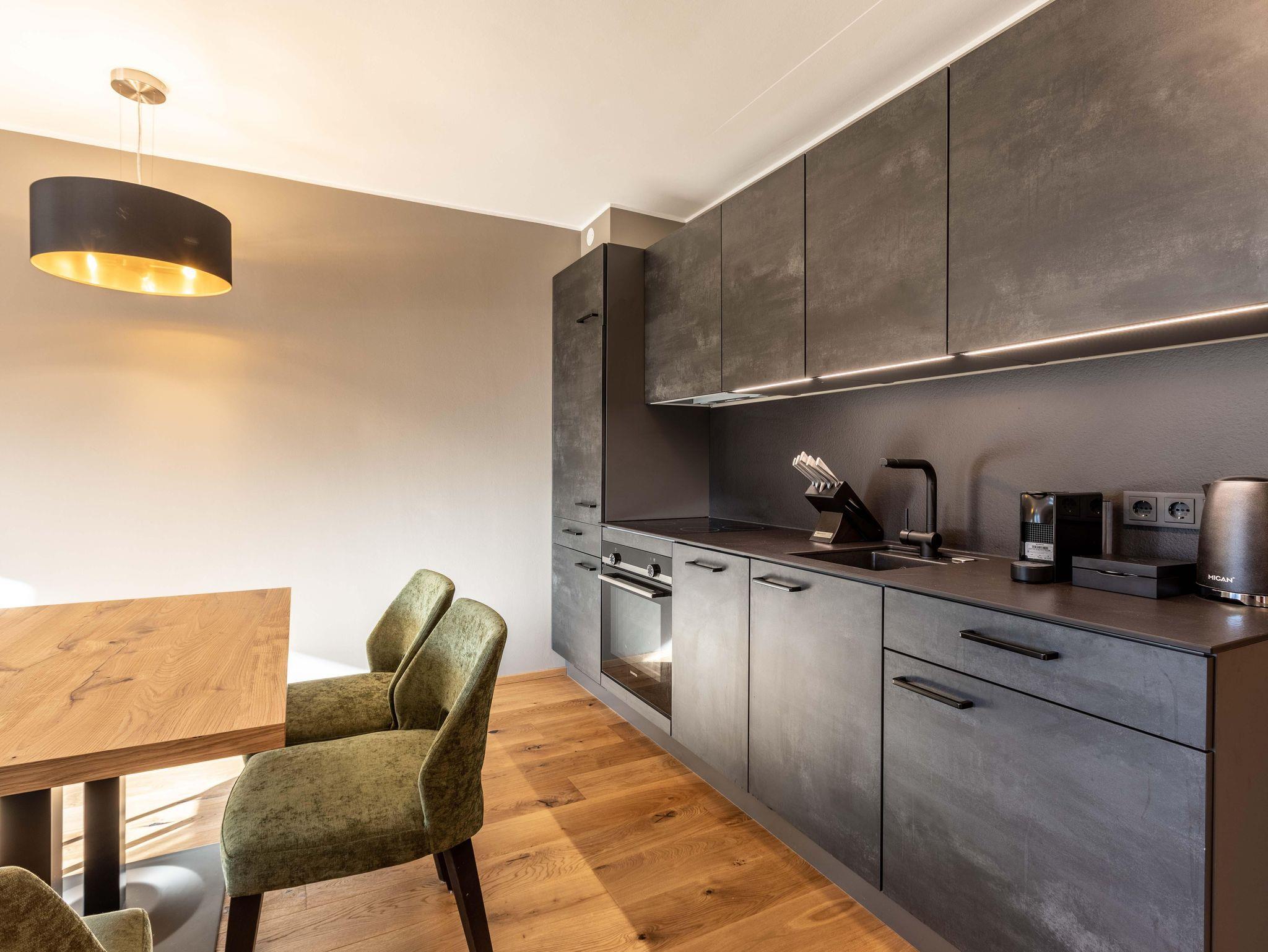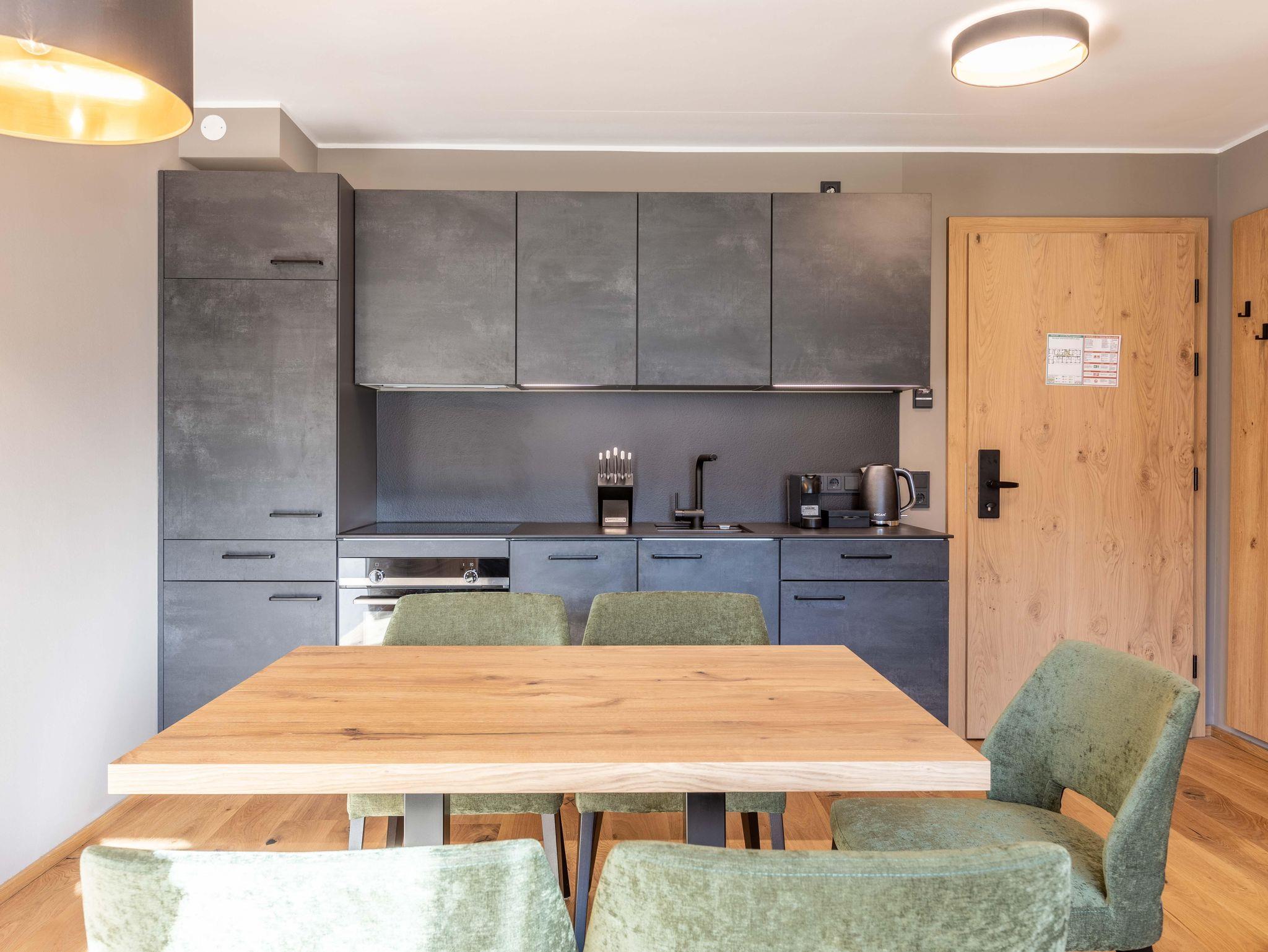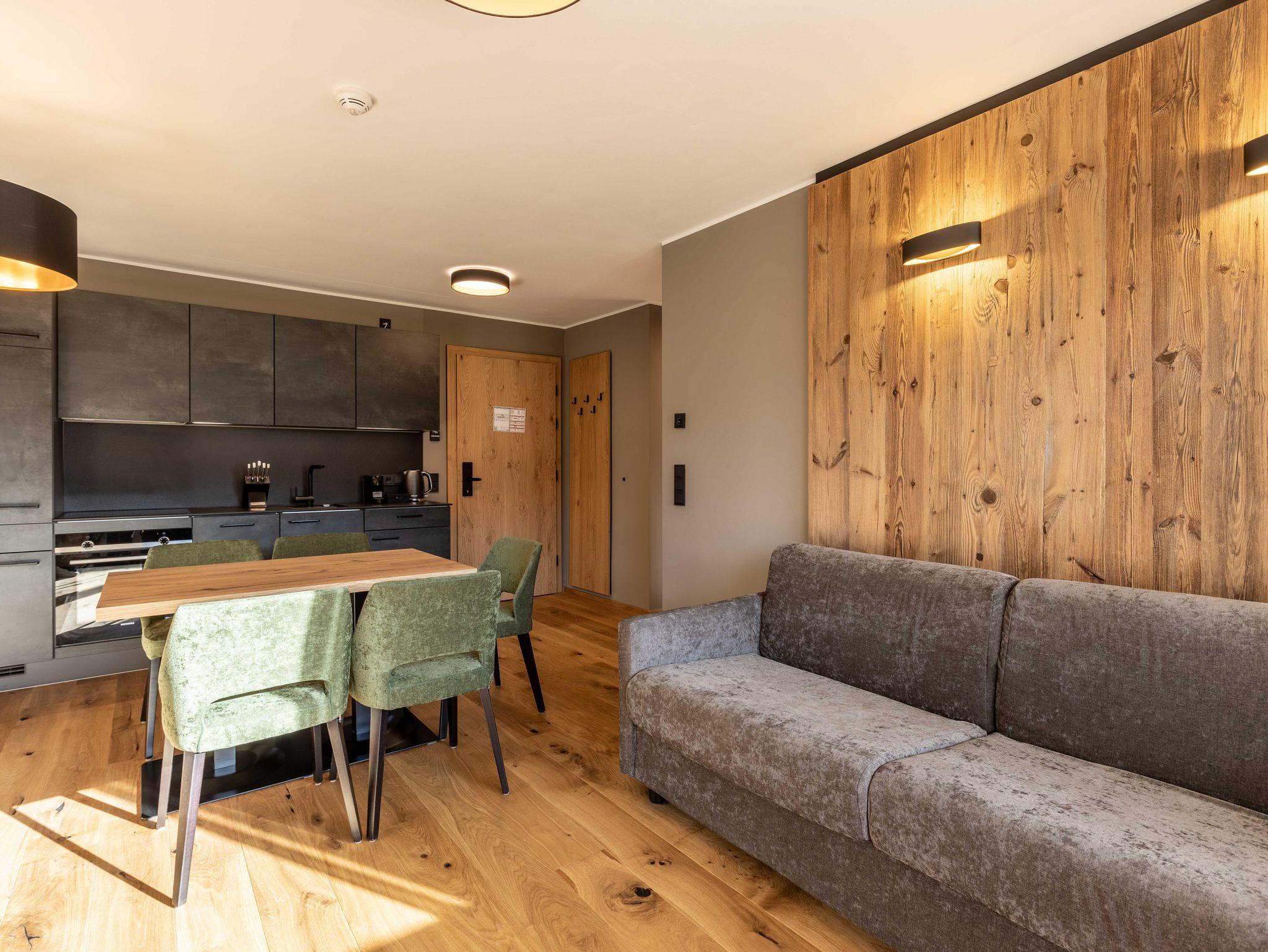 Das Apartment bietet Platz für 5 Personen und bietet Wohnküche, 2 Schlafzimmer (Master mit Balkonzugang + Boxspringbett), Bad, separates WC und Balkon. Der Eingangsbereich, mit Garderobe, führt direkt in den Wohn und Essbereich (Balkonzugang), welcher mit Esstisch, TV, Kleiderschrank und einem Ausziehsofa ausgestattet ist. Die Küche hat Küchengeräte, Kühl-Gefrierkombi sowie Nespresso Kaffeemaschine und verfügt außerdem über Küchengeschirr inklusive Töpfe und Pfannen.
