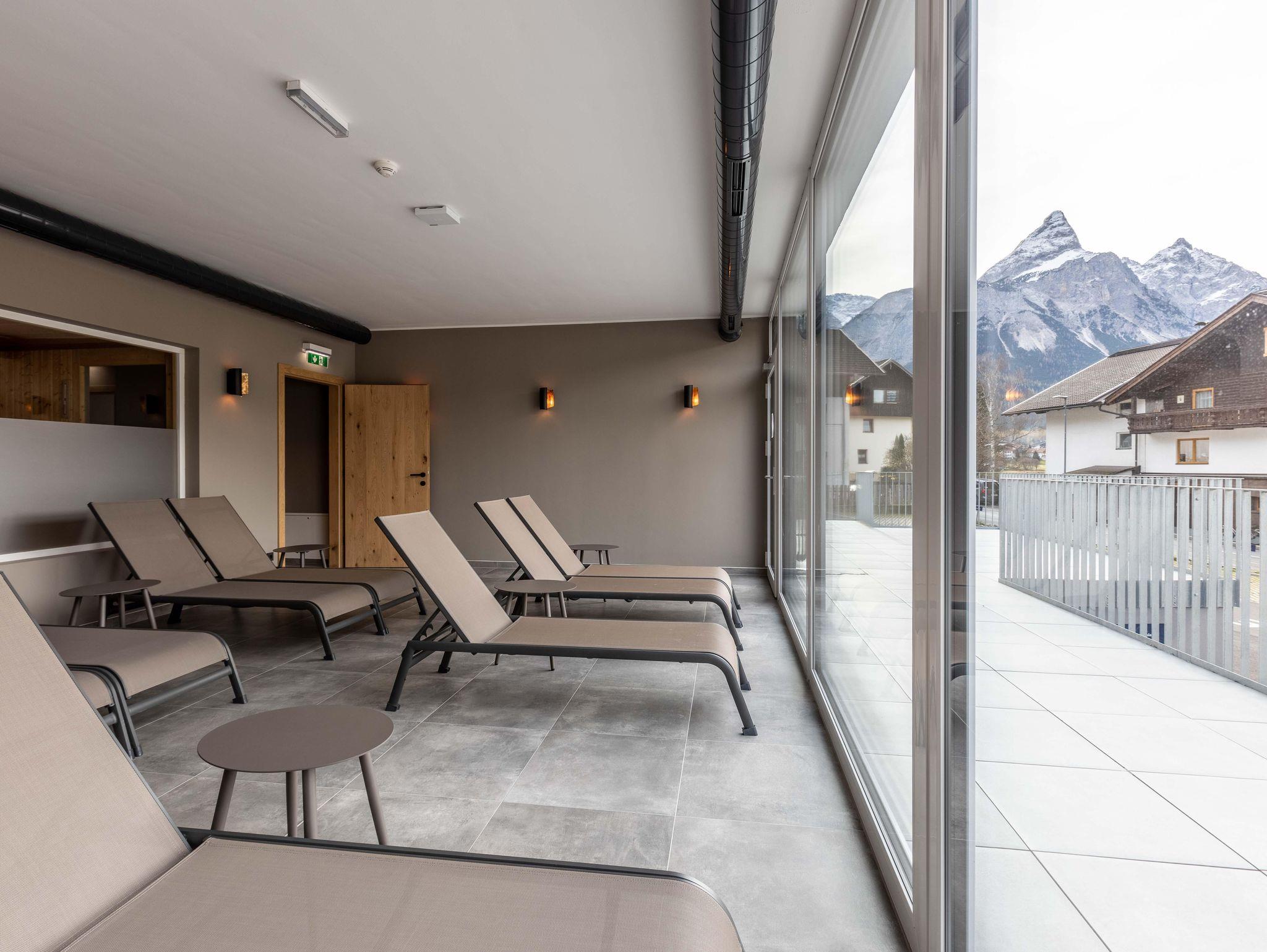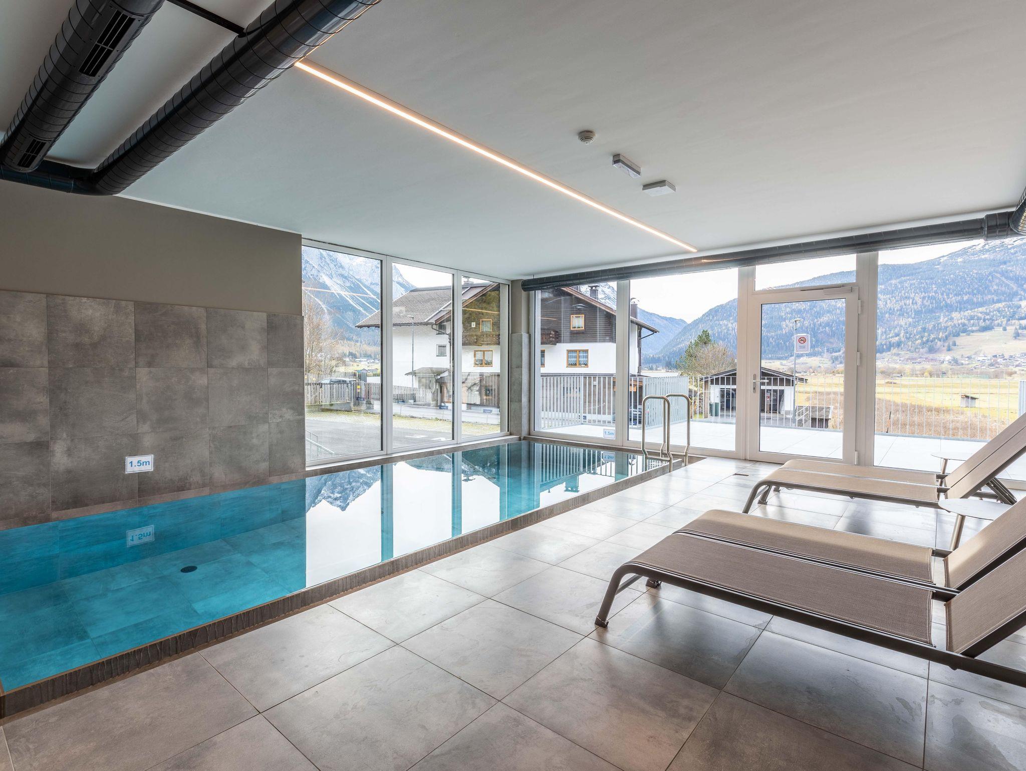 Zugspitz Residences liegt im Herzen von Ehrwald, direkt neben dem Golfplatz und in unmittelbarer Nähe des weit bekannten Ehrwalder Schigebiets. Dieser einzigartige, familienfreundliche Topspot garantiert ganzjährig Sport- und Freizeiterlebnisse der besonderen Art. Die bequem vom Haus aus zu erreichende Zugspitz Arena mit 56 Bergbahnen bietet auf 142 Pistenkilometern abwechslungsreiches Skivergnügen in allen Schwierigkeitsgraden! Des Weiteren sind eine problemlose Anbindung (Flughafen Innsbruck, 75 km - Flughafen München (DE), 147 km - Flughafen Salzburg, 196 km - Flughafen Zürich (CH), 200 km) und diverse Ausflugsziele (Bayrische Königsschlösser, Seefeld, Ötzi Dorf, Swarovski Kristallwelten, Innsbruck uvm.) gegeben. Parkmöglichkeiten sind rund um die Residenz vorhanden. Für Körper und Seele besteht im Erdgeschoß ein exklusiver Wellnessbereich mit Indoor-Infinity-Pool, finnischer Sauna, Bio-Sauna sowie Infrarotkabine, Regenerationsdusche und einem Ruheraum für totale Entspannung. Der Außenbereich animiert im Sommer zum Relaxen in der Sonne und im Winter ist dort Erfrischung nach einem ausgiebigen Saunagang möglich.