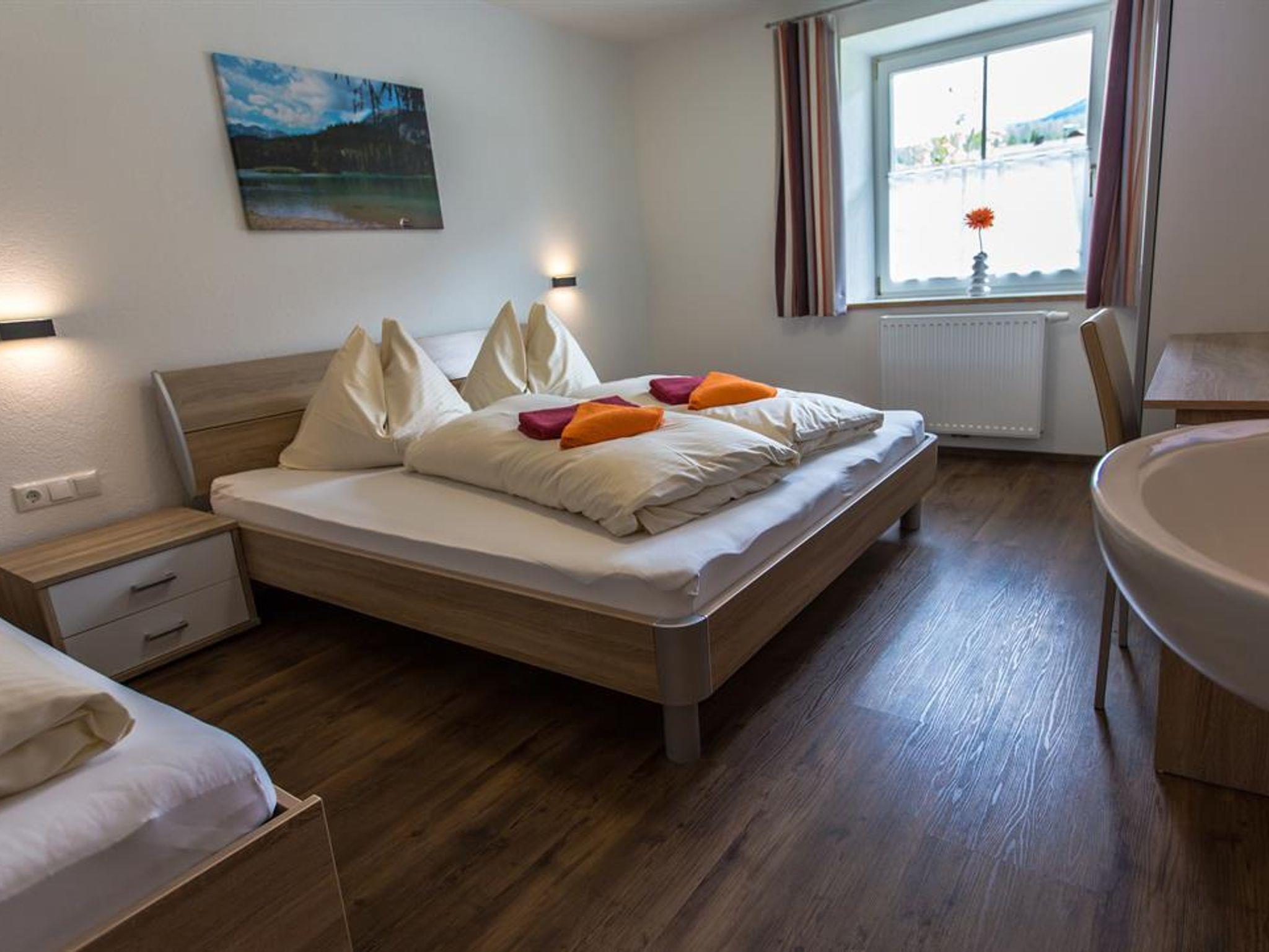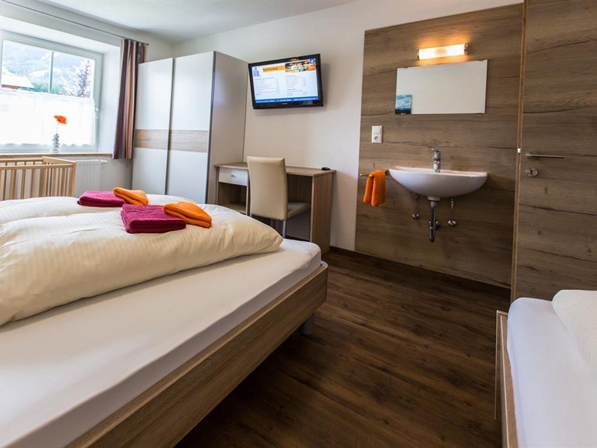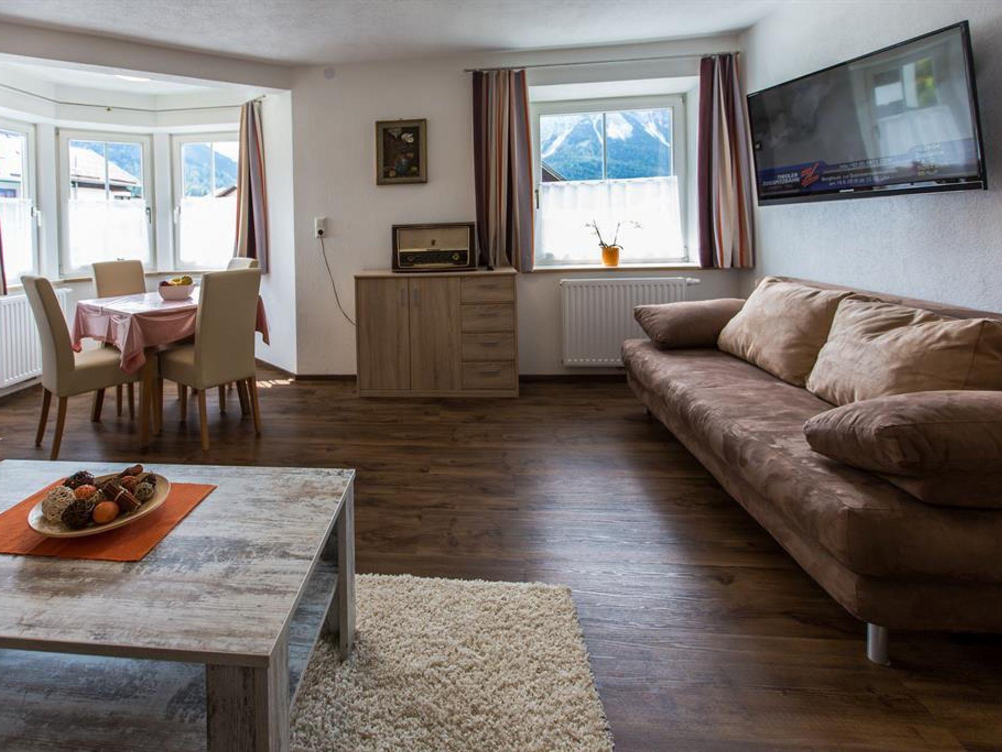Neu eingerichtete Ferienwohnung Zugspitze mit 70m2 im 1. Sock Schlafzimmer mit Doppelbett und Einzelbett (Bettwäsche vorhanden), Waschbecken und Flat-TV Weiteres Schlafzimmer mit Doppelbett (Bettwäsche vorhanden), Waschbecken und Flat-TV Wohn- Schlafraum mit ausziehbarer Schlafcouch, Erker, Esstischgruppe, Flat-TV. Komplett eingerichtete Küche - Elektroherd mit Backrohr , Kaffeemaschine(Tassimo), Geschirrspüler, Mikrowelle, Toaster, Tisch- und Kochgeschirr) mit gemütlicher Sitzecke. DU/WC (Frotteewäsche vorhanden) Internet via W-LAN