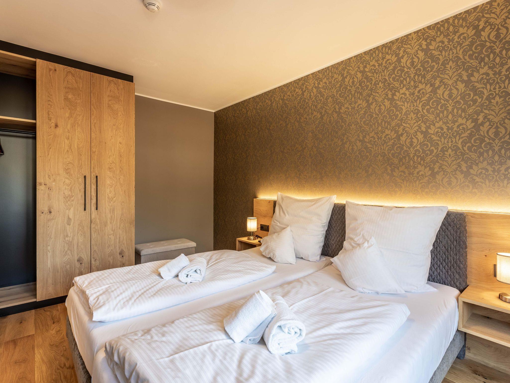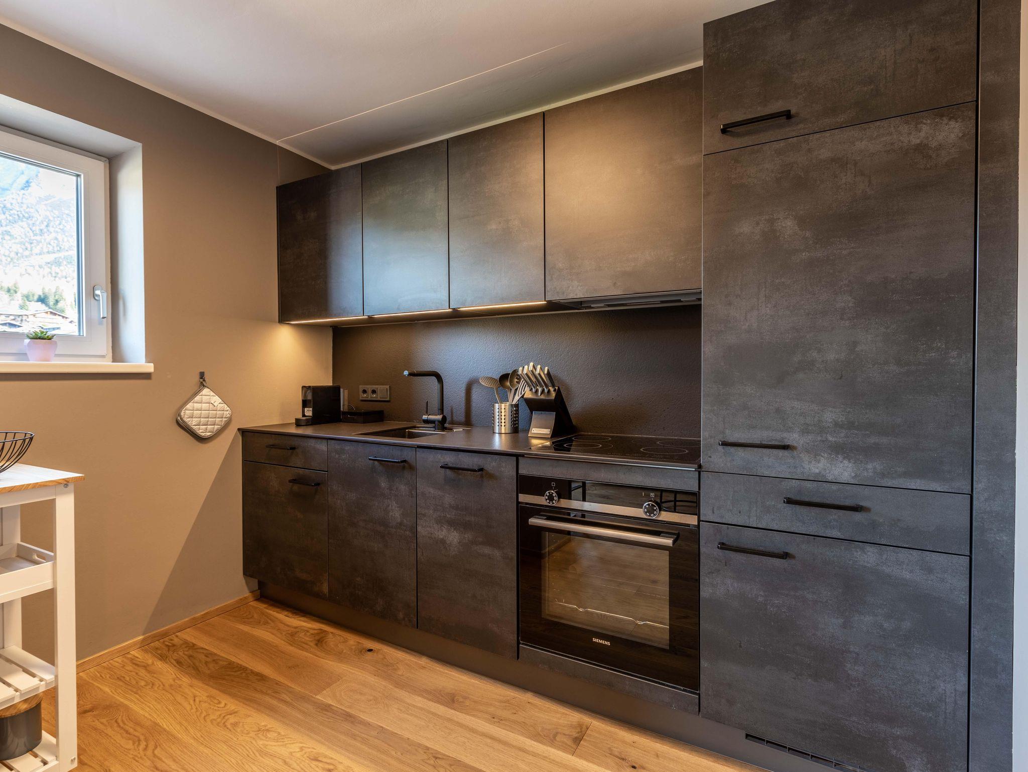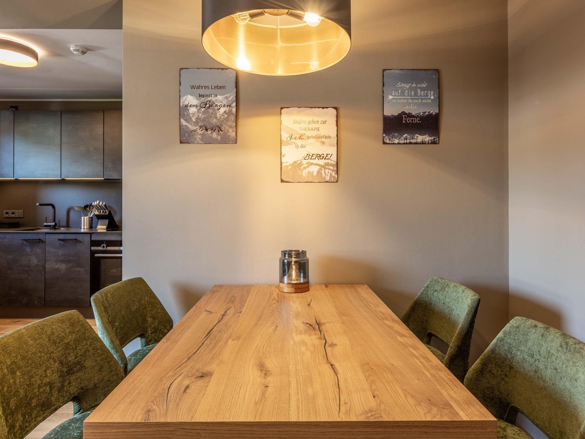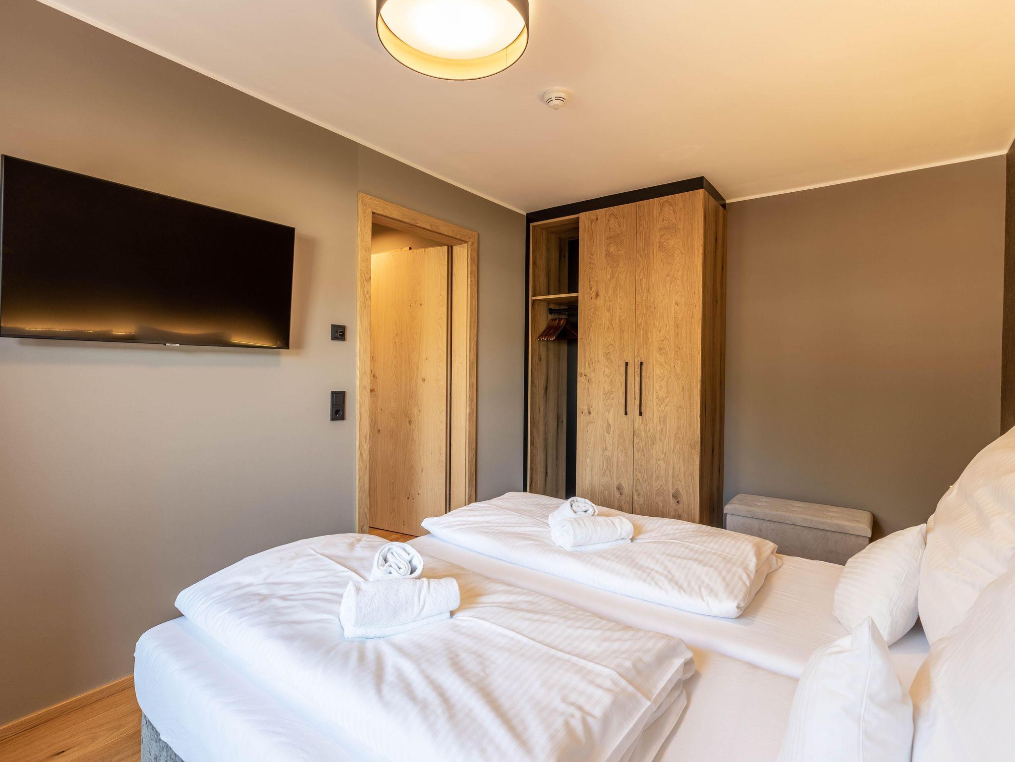 Das Apartment für 4 Personen bietet Wohnküche, Schlafzimmer (Boxspringbett Balkonzugang), Badezimmer und ein separates WC. Der Eingangsbereich, mit Garderobe, führt direkt in den Wohn und Essbereich (Balkonzugang), welcher mit Esstisch, TV, Kleiderschrank und einem Ausziehsofa aufwartet. Die angrenzende Küche ist mit Küchengeräten, Kühl-Gefrierkombi sowie Nespresso Kaffeemaschine ausgestattet und verfügt außerdem über Küchengeschirr inklusive Töpfe und Pfannen.