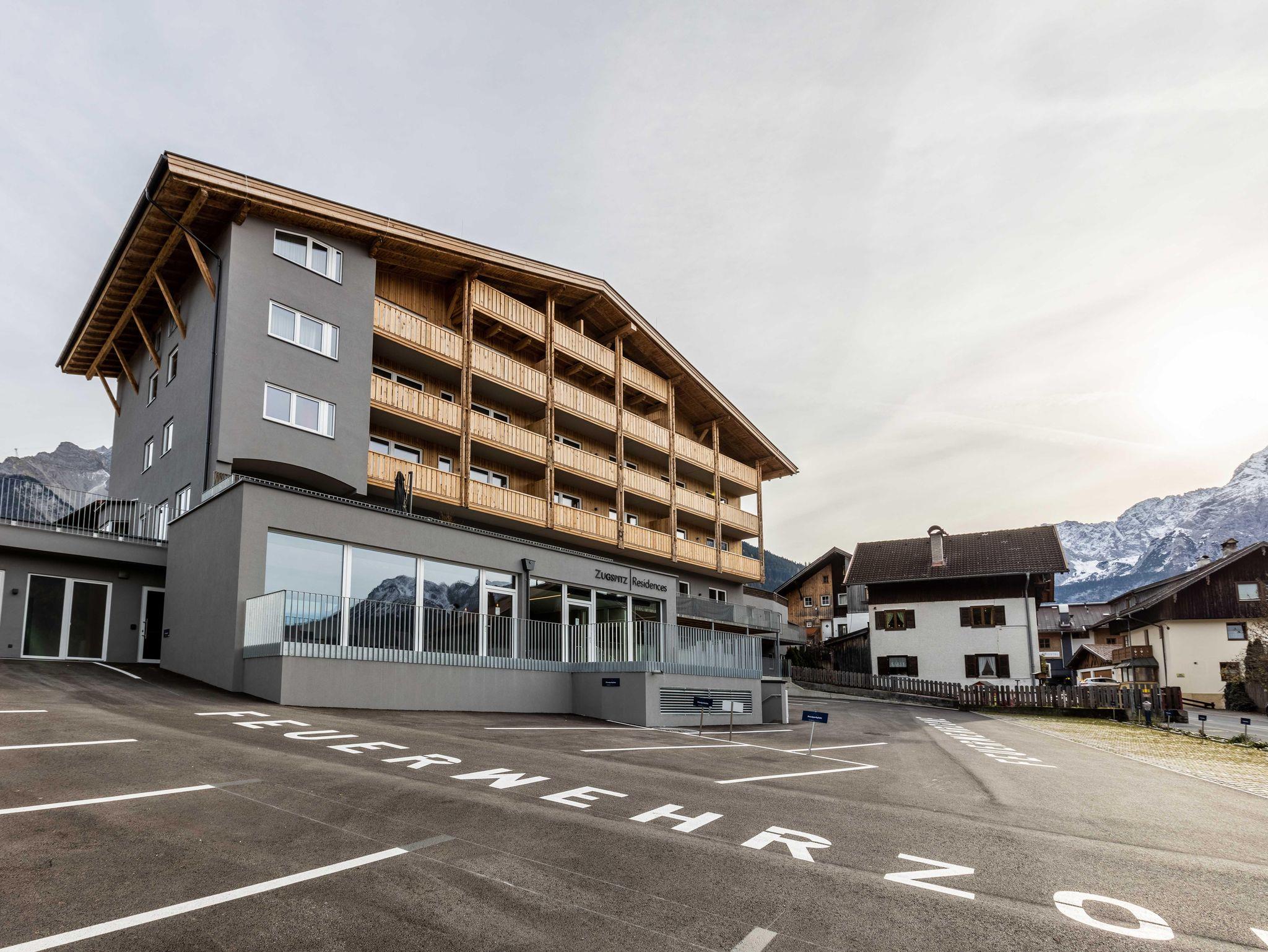 Zugspitz Residences liegt im Herzen von Ehrwald, direkt neben dem Golfplatz und in unmittelbarer Nähe des weit bekannten Ehrwalder Schigebiets. Dieser einzigartige, familienfreundliche Topspot garantiert ganzjährig Sport- und Freizeiterlebnisse der besonderen Art. Die bequem vom Haus aus zu erreichende Zugspitz Arena mit 56 Bergbahnen bietet auf 142 Pistenkilometern abwechslungsreiches Skivergnügen in allen Schwierigkeitsgraden! Des Weiteren sind eine problemlose Anbindung (Flughafen Innsbruck, 75 km - Flughafen München (DE), 147 km - Flughafen Salzburg, 196 km - Flughafen Zürich (CH), 200 km) und diverse Ausflugsziele (Bayrische Königsschlösser, Seefeld, Ötzi Dorf, Swarovski Kristallwelten, Innsbruck uvm.) gegeben. Parkmöglichkeiten sind rund um die Residenz vorhanden. Für Körper und Seele besteht im Erdgeschoß ein exklusiver Wellnessbereich mit Indoor-Infinity-Pool, finnischer Sauna, Bio-Sauna sowie Infrarotkabine, Regenerationsdusche und einem Ruheraum für totale Entspannung. Der Außenbereich animiert im Sommer zum Relaxen in der Sonne und im Winter ist dort Erfrischung nach einem ausgiebigen Saunagang möglich.