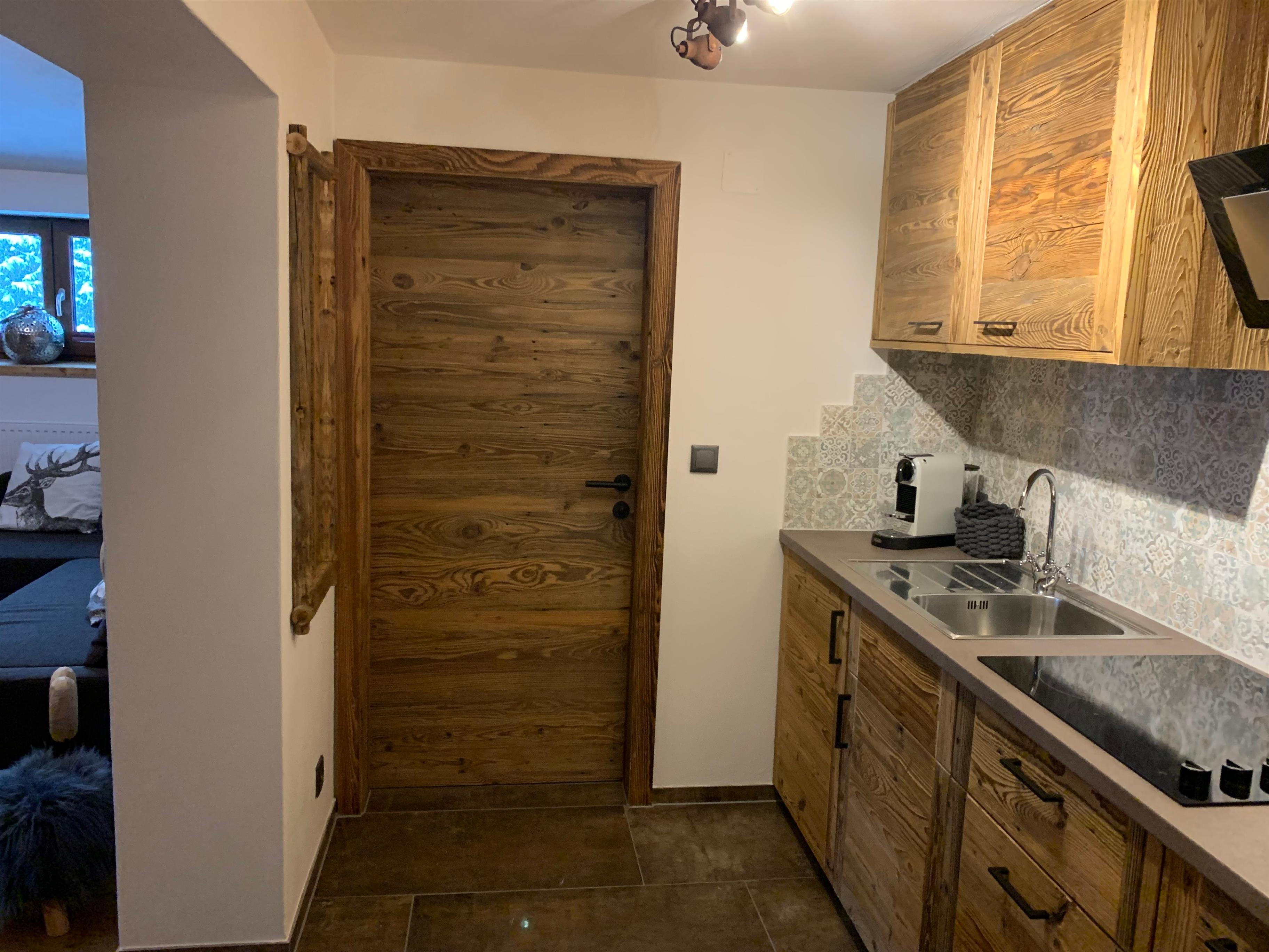 Die offene Wohn-Küche ist ausgestattet mit Ceran-Kochfeld, Geschirrspüler, Mikrowelle, Nespresso Kapsel Maschine, Wasserkocher, Toaster, Filterkaffee Maschine auf Nachfrage.