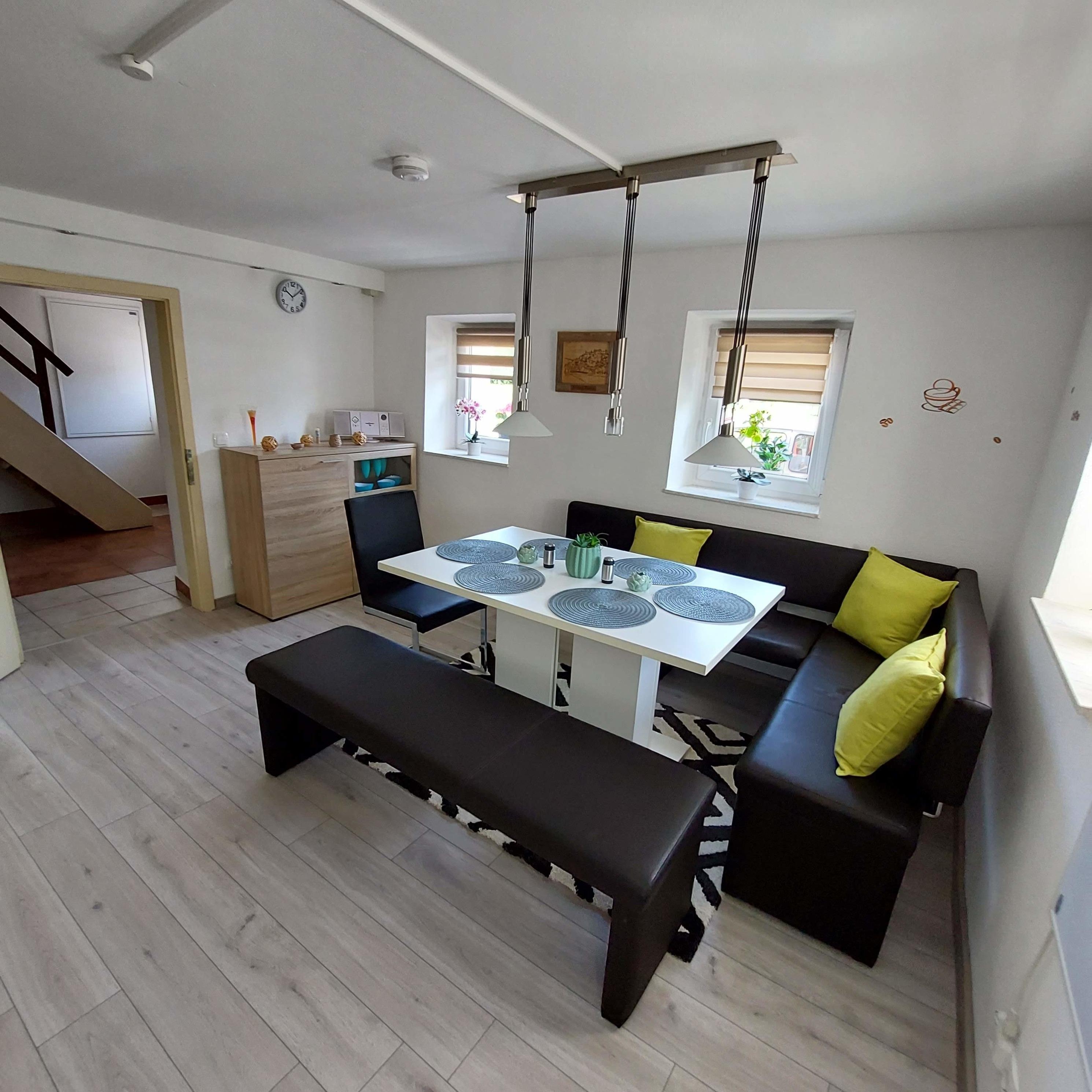 Weiters vorhanden im Wohnessbereich ein großer LCD TV mit Sat, freies W-Lan 5G im ganzen Haus, eine kleine Stereoanlage. In den Schlafräumen sind Bettdecken und Polster vorhanden (Bezüge selber mitzubringen), im Garten gibt es eine Sitzgruppe, auch ein toller Gasgrill ist zur freien Benützung vorhanden.