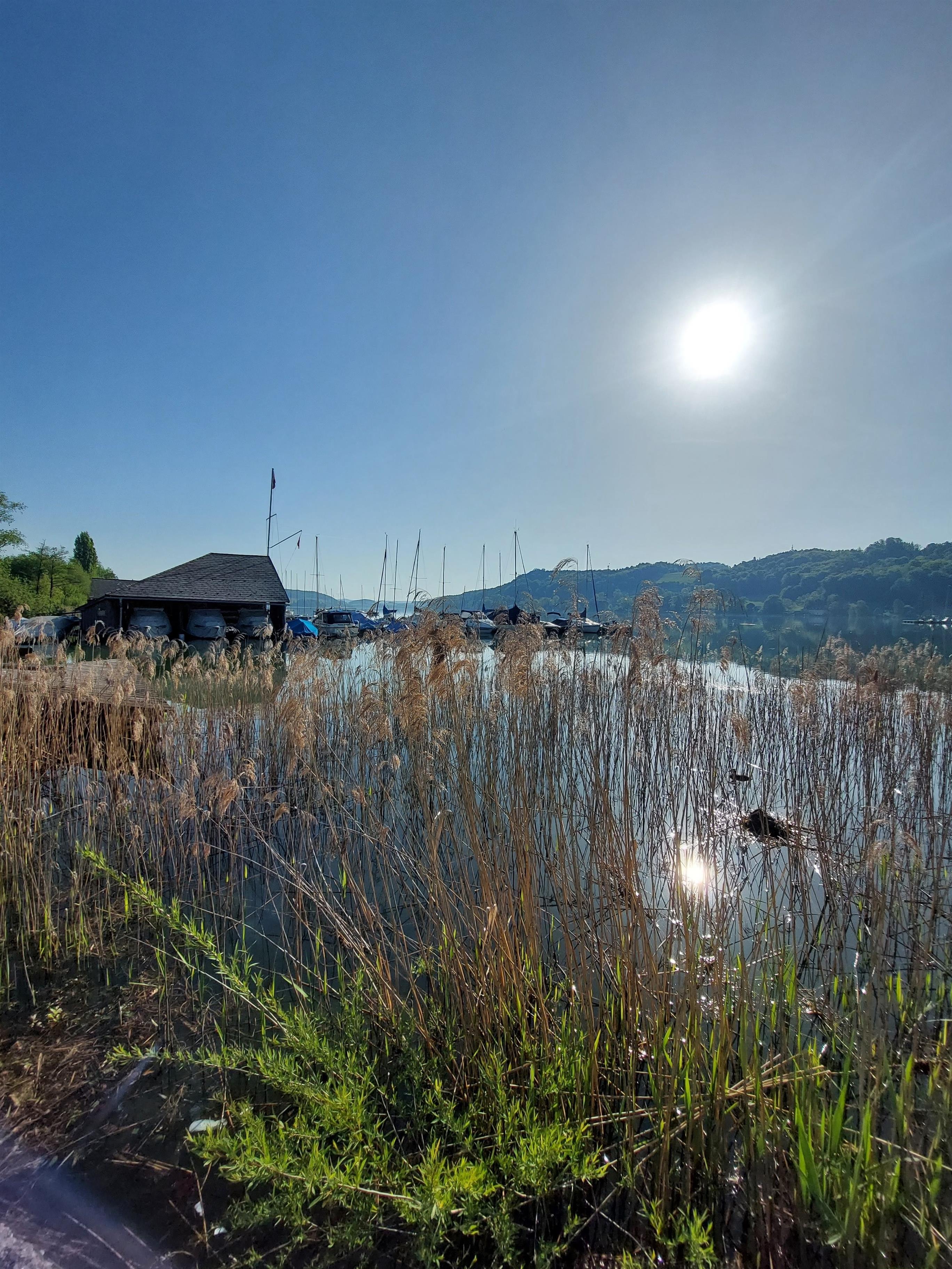 nur 5 Gehminuten entfernt gibt es einen kleinen gratis Badeplatz (an der Mattig) mit Umkleiden und WC´s.